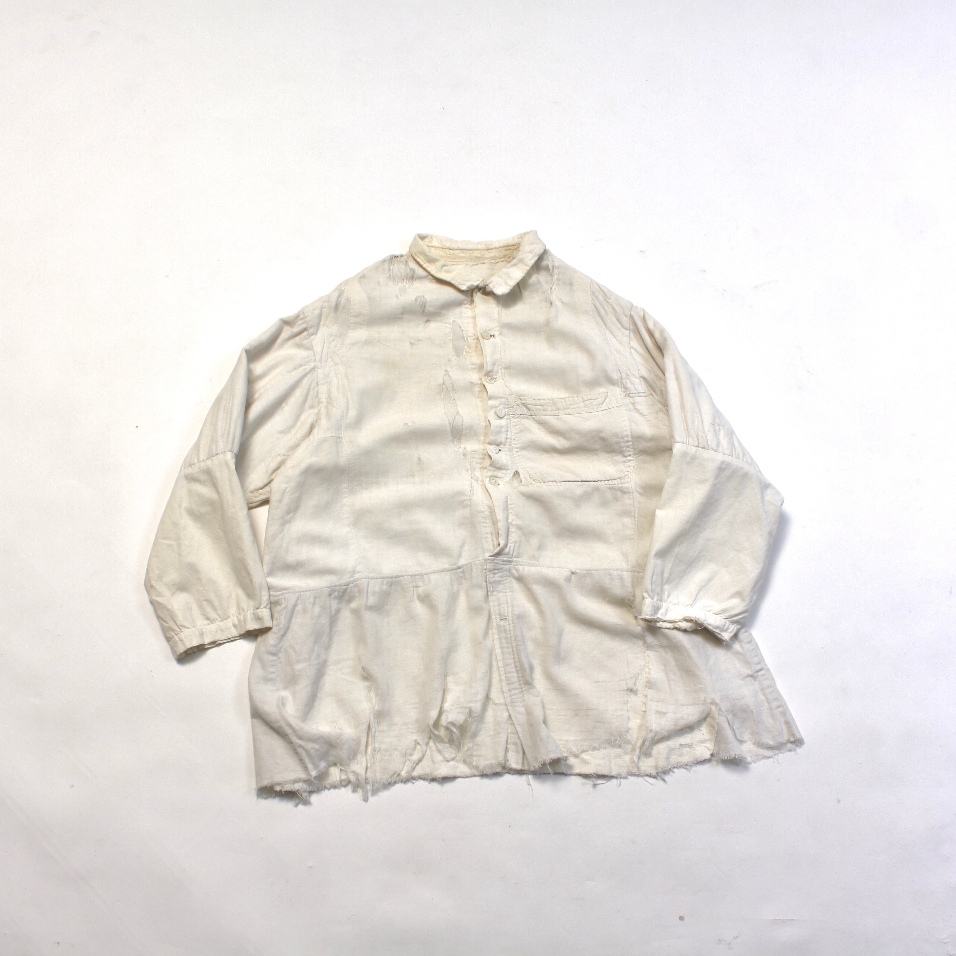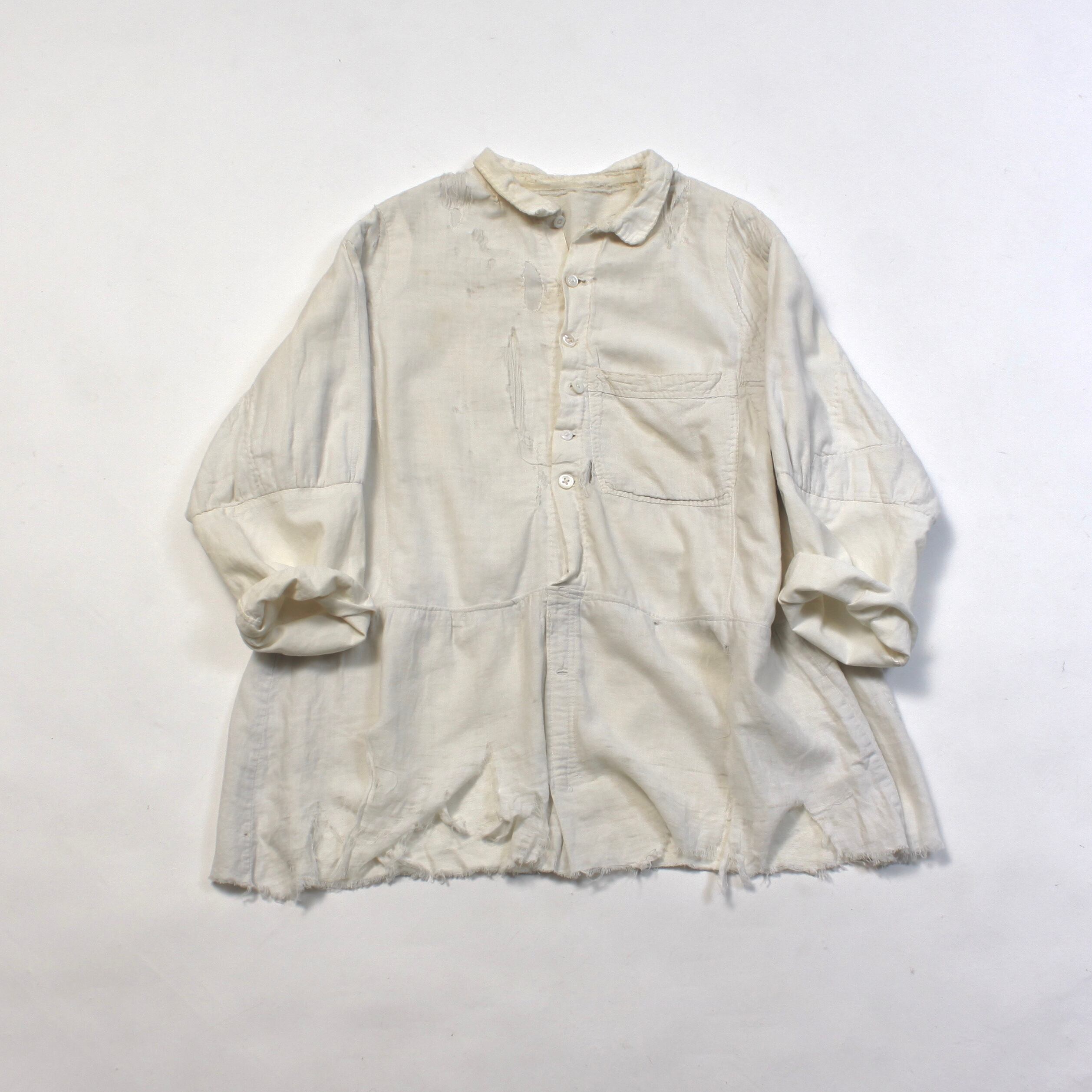 0361. vintage patchwork gaze shirt ホワイト パッチワーク コットンガーゼ プルオーバーシャツ 襤褸 BORO 古着