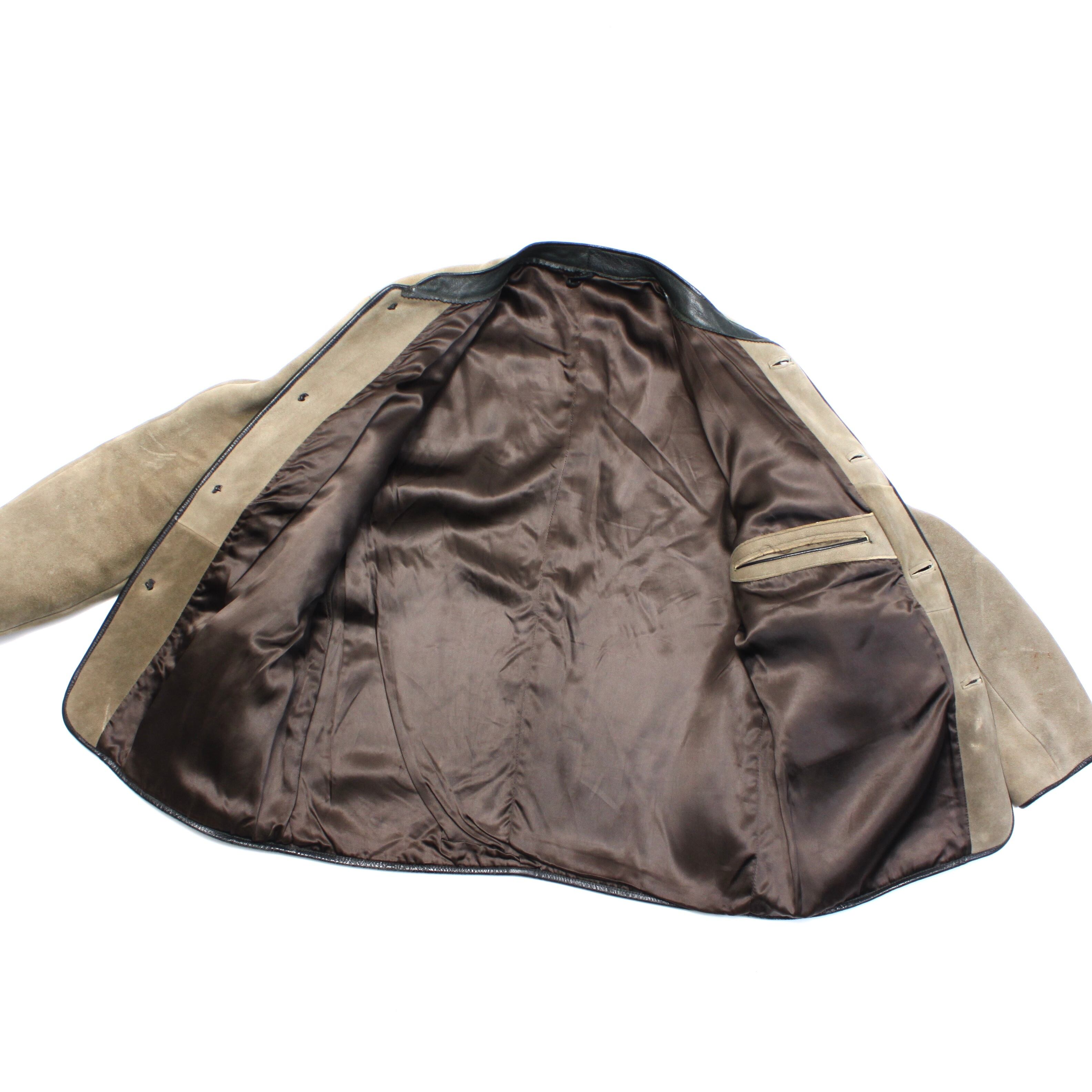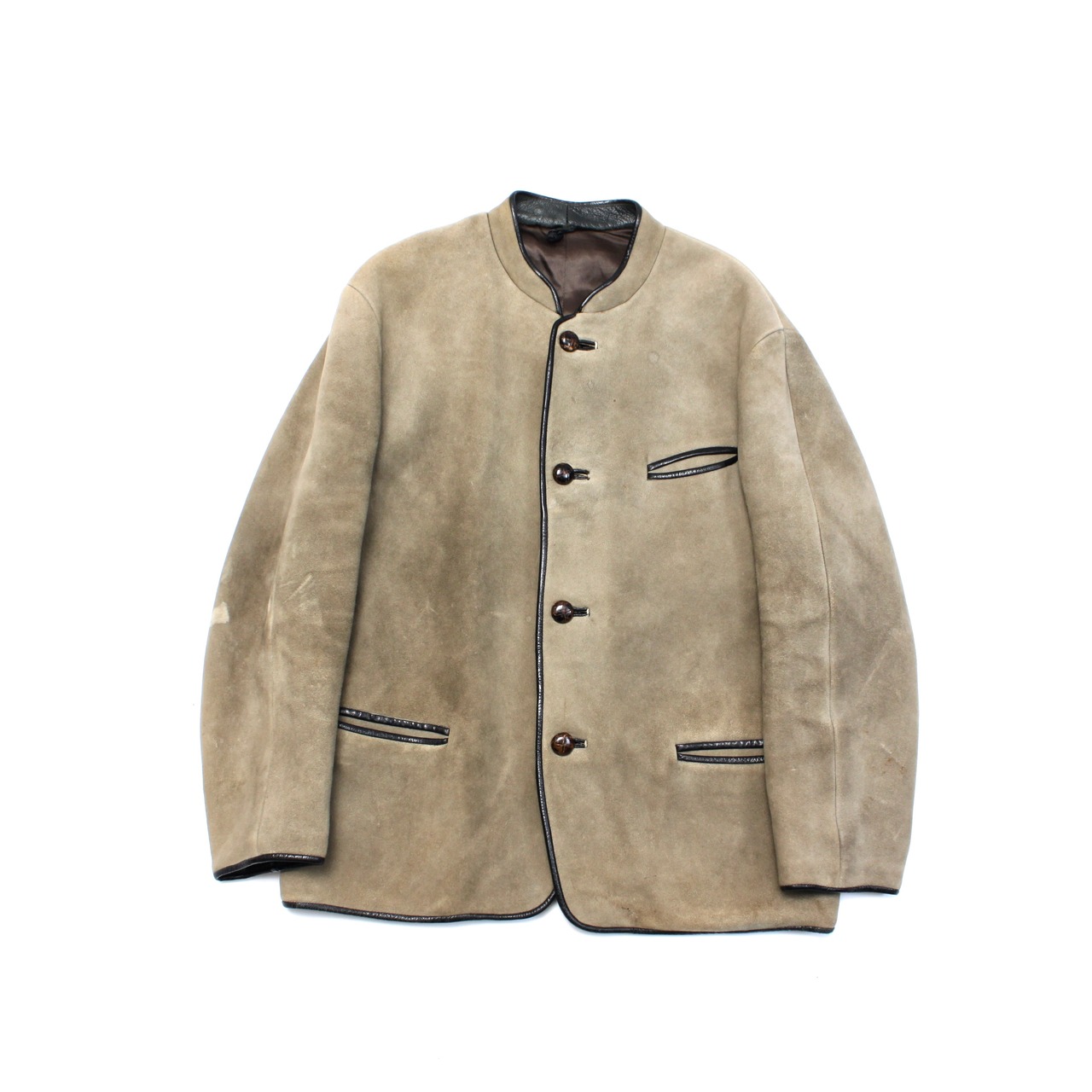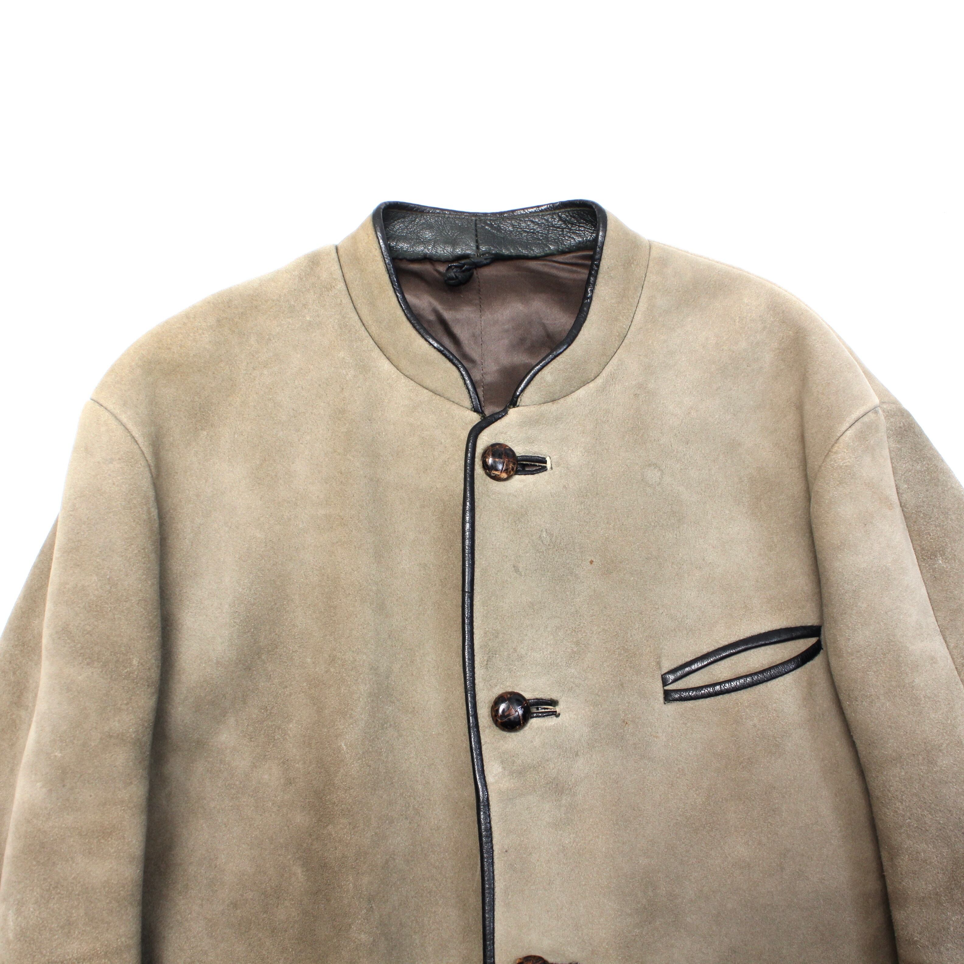 0367. vintage suede tyrolean jacket カーキ スエードレザー チロリアンジャケット マオカラー 本革 古着