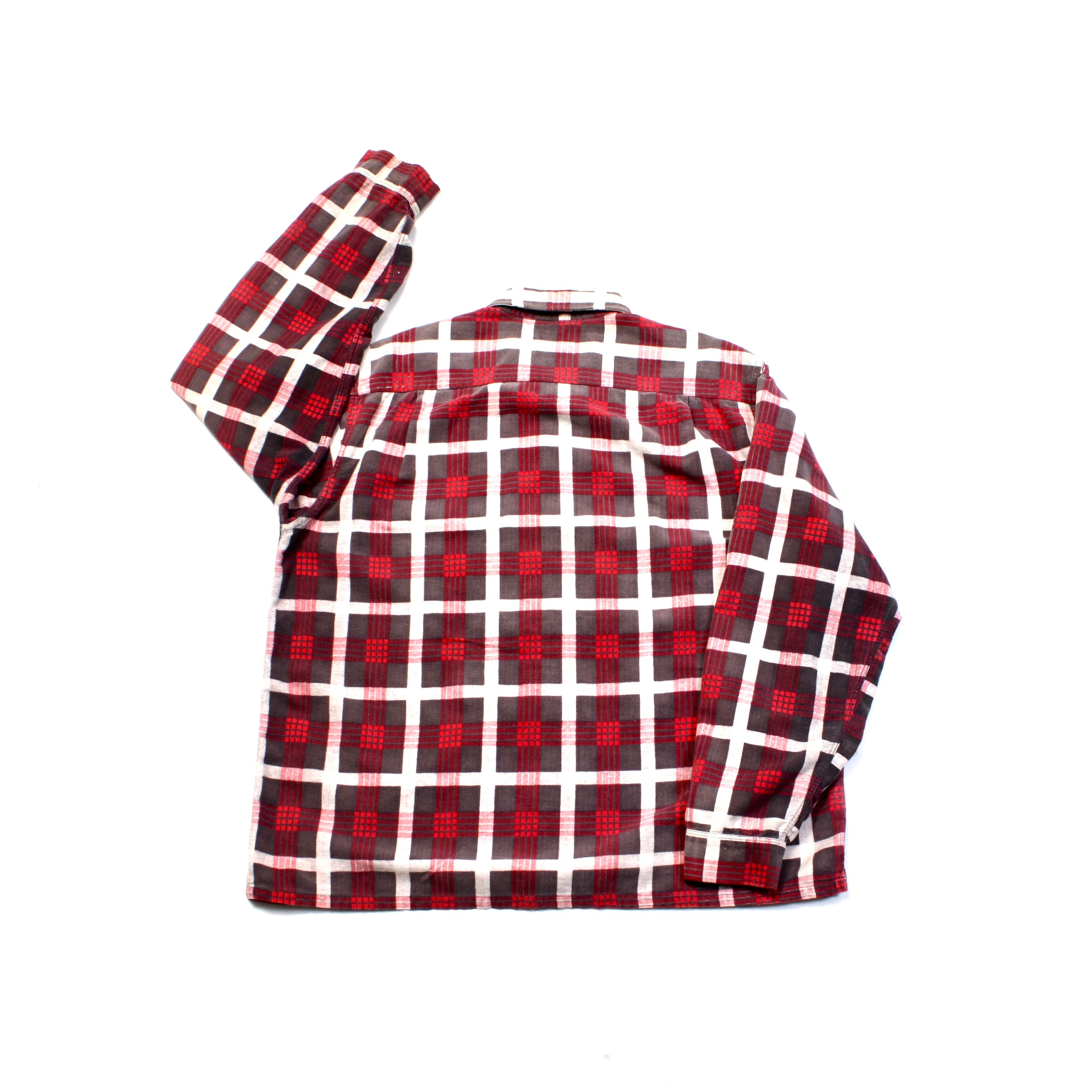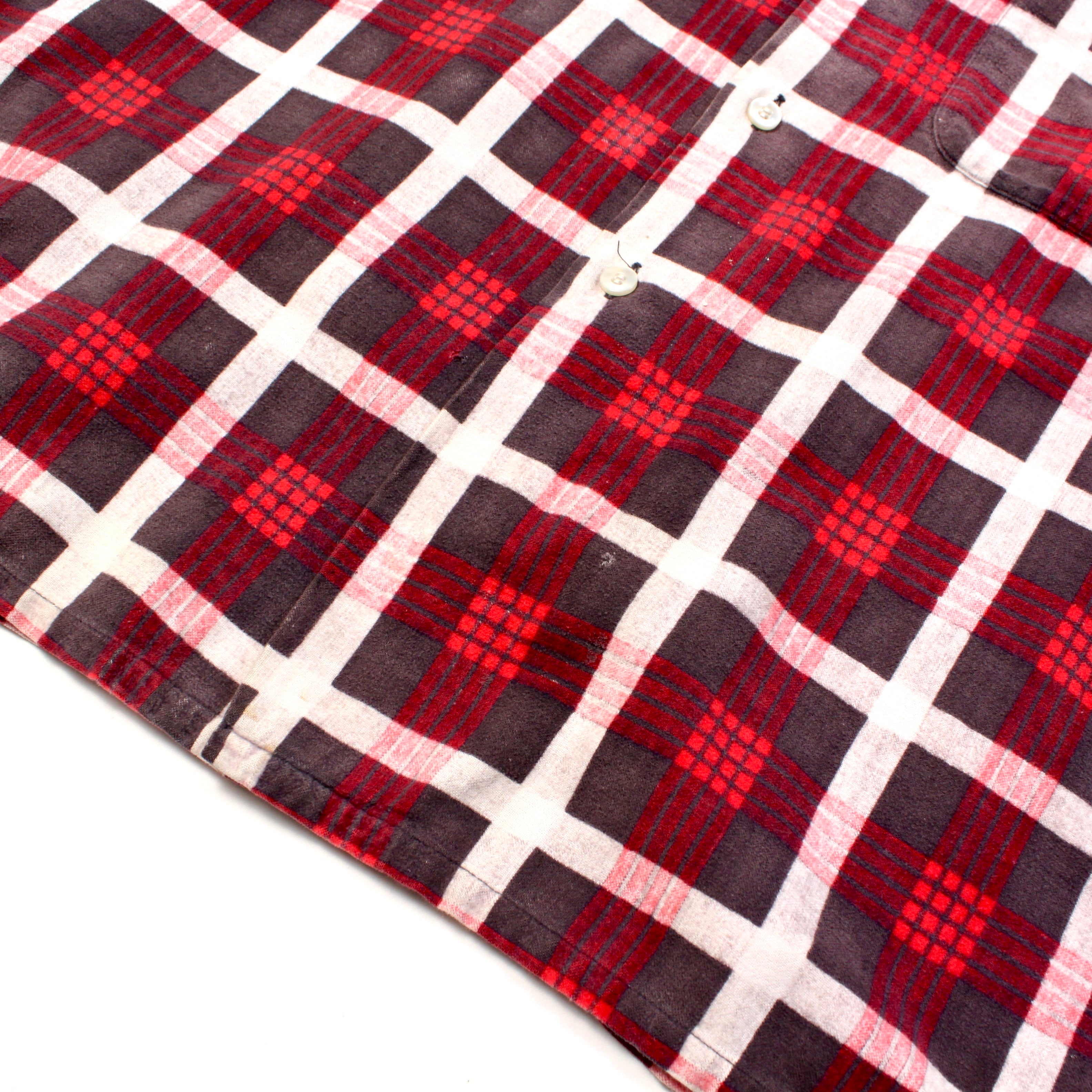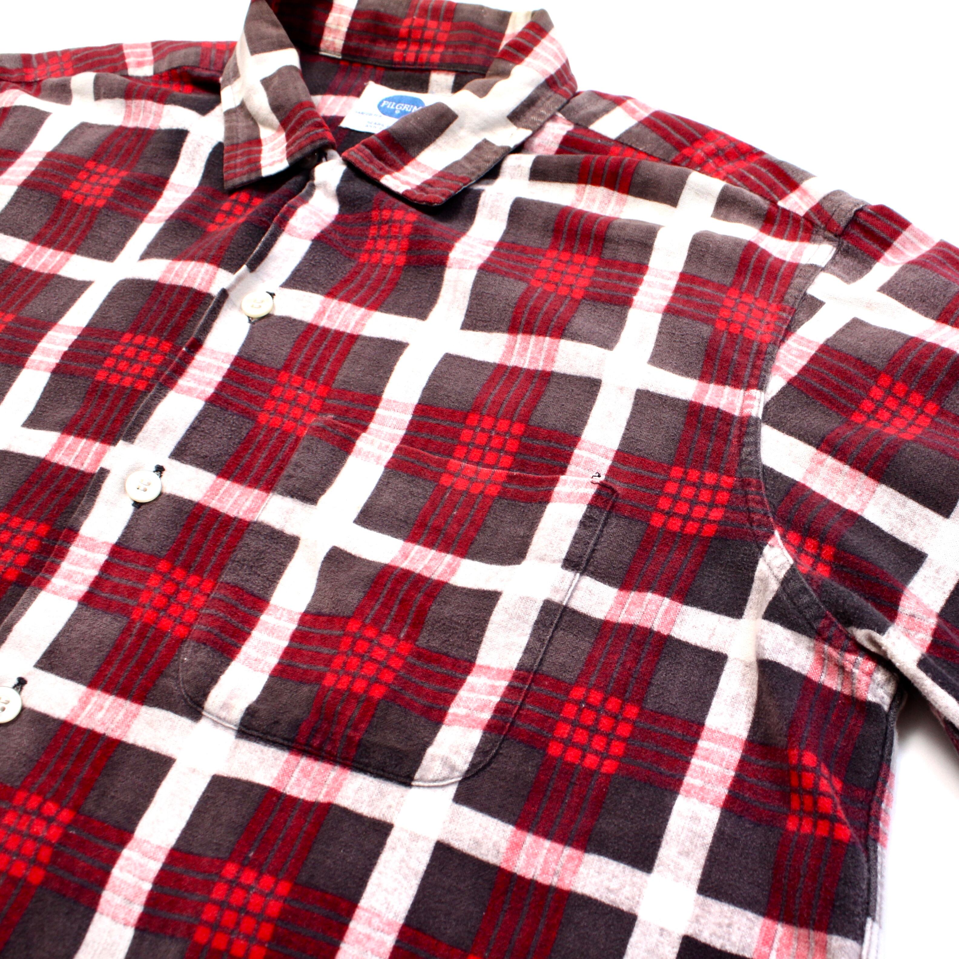 0353. ~1960's pilgrim printed flannel shirt レッド ブラック チェック プリントネル コットンフランネル ボックスシャツ 開襟 シアーズ ピルグリム 60s 60年代 vintage sears 古着