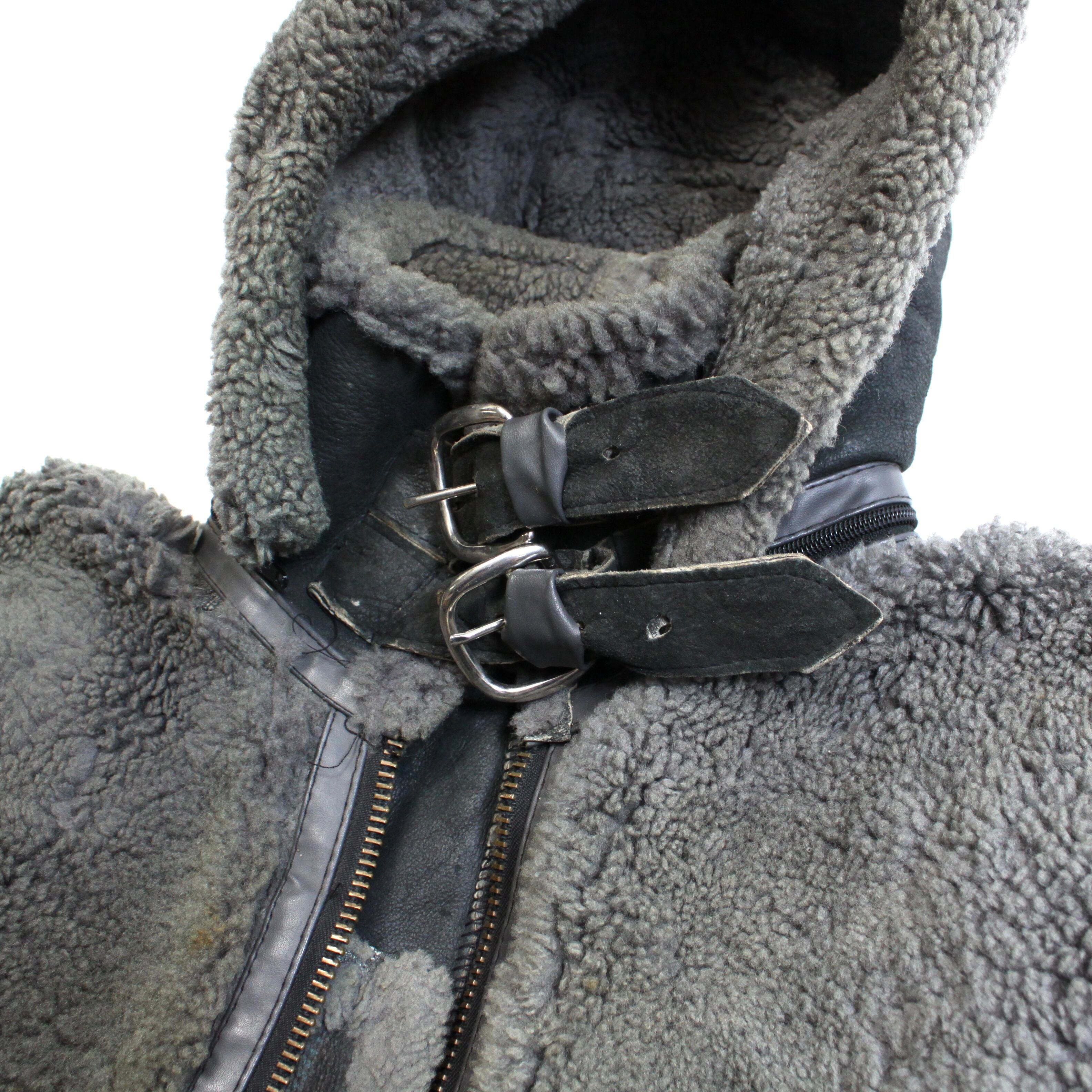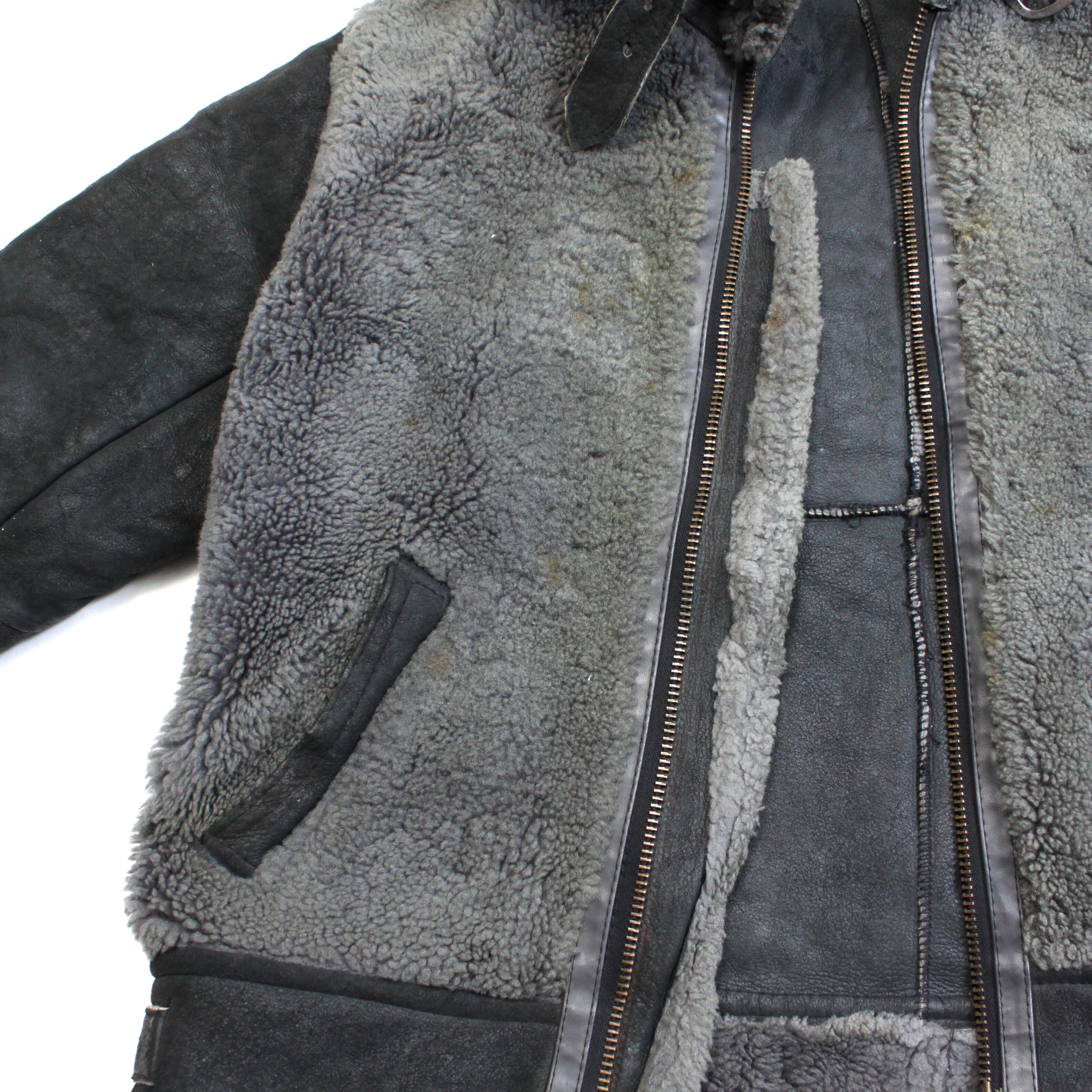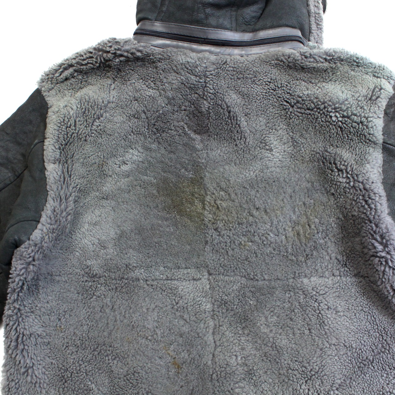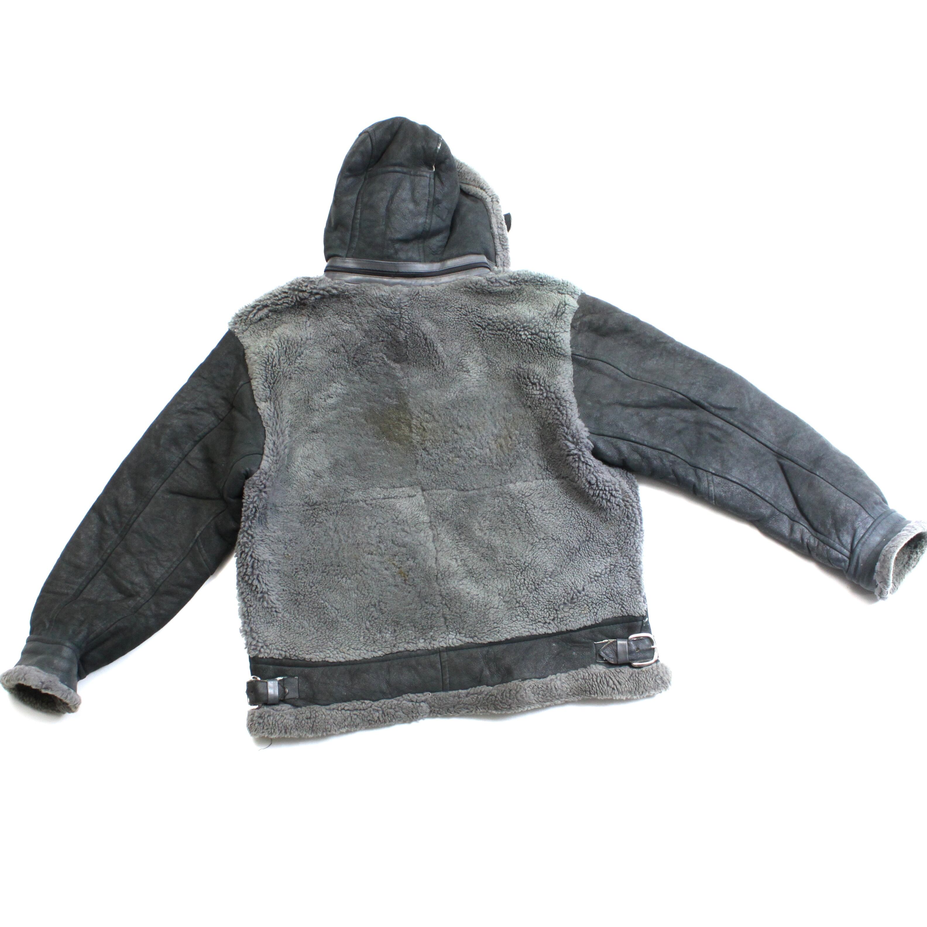 0381. black mouton bomber jacket with hoodie ブラック シープスキン ムートンジャケット B-3 古着