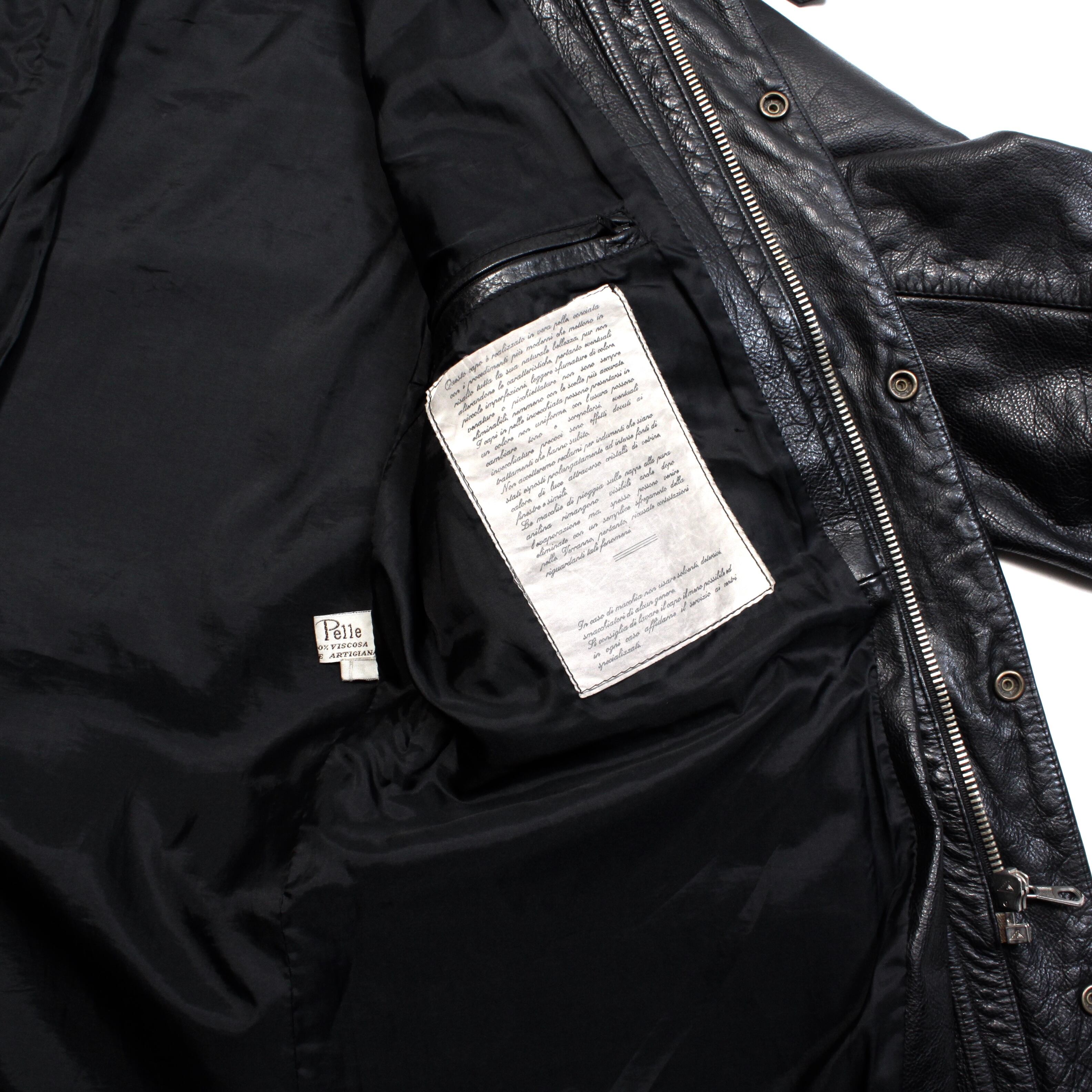 0393. leather motorcycle jacket from Italy ブラック レザー モーターサイクルジャケット トライアルマスター型 ユーロ古着