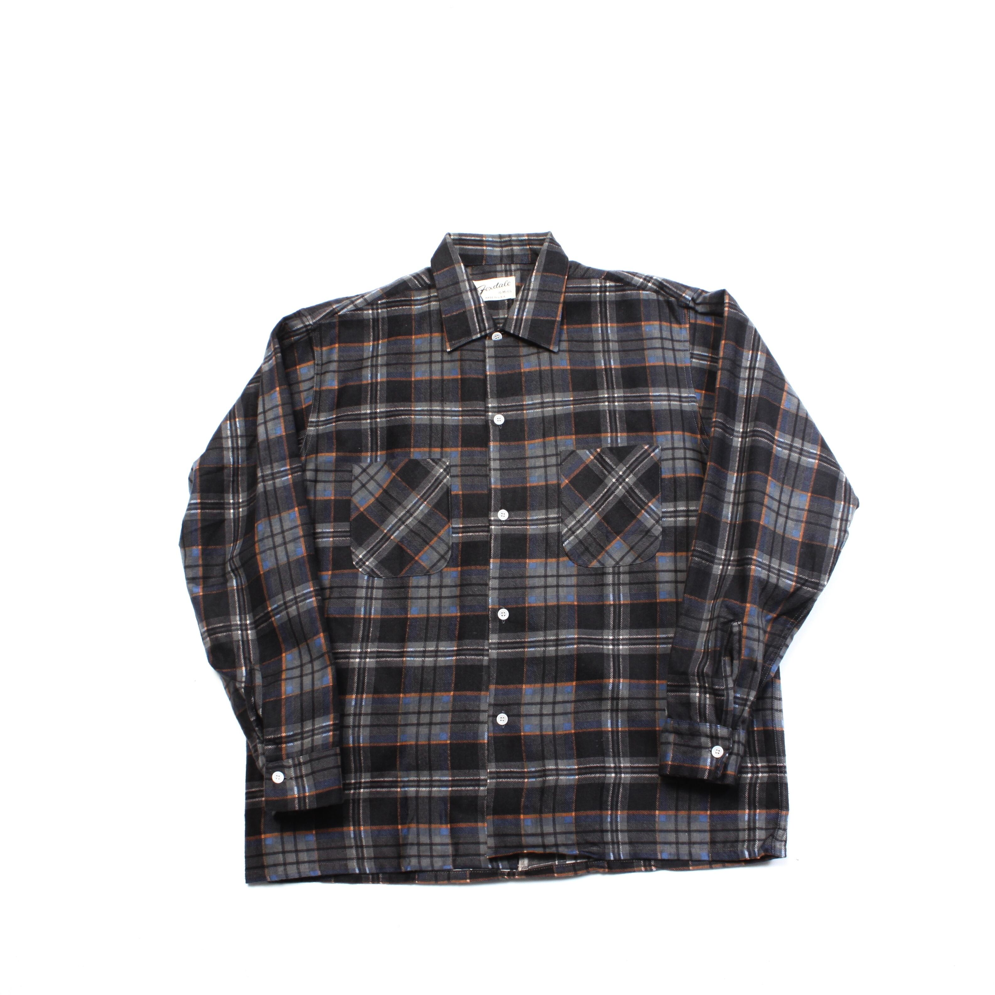 0395. dead stock 1960's printed flannel shirt グレーベース チェック プリネル シャツ 60s 60年代 vintage 古着