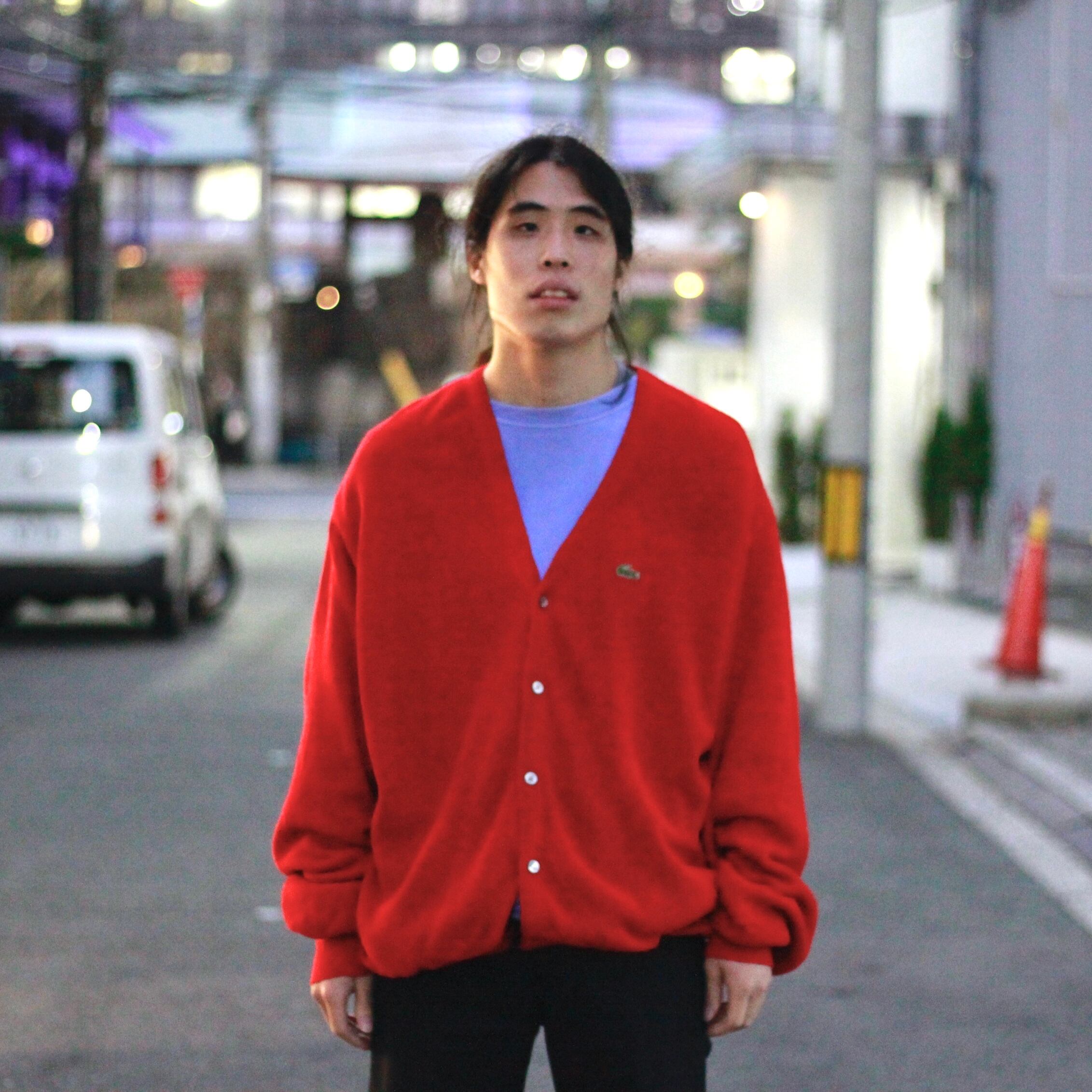 0398. 1990's izod lacoste acrylic cardigan レッド アクリルニット カーディガン アイゾッド ラコステ USA製 90s 90年代 vintage 古着