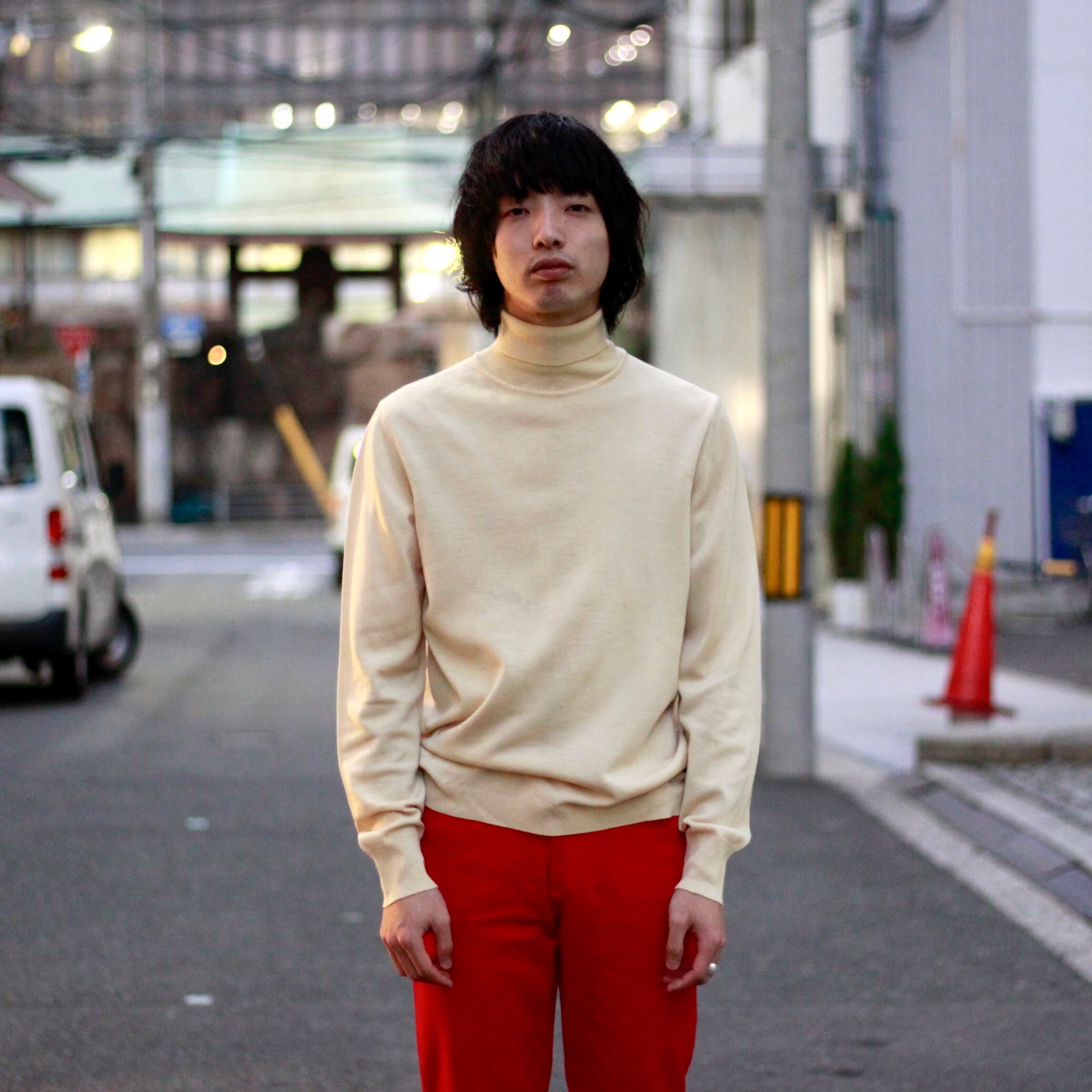 0399. 1960's Italy made turtleneck knit クリーム タートルネックニット Italy製 60s 60年代 euro vintage ユーロ古着