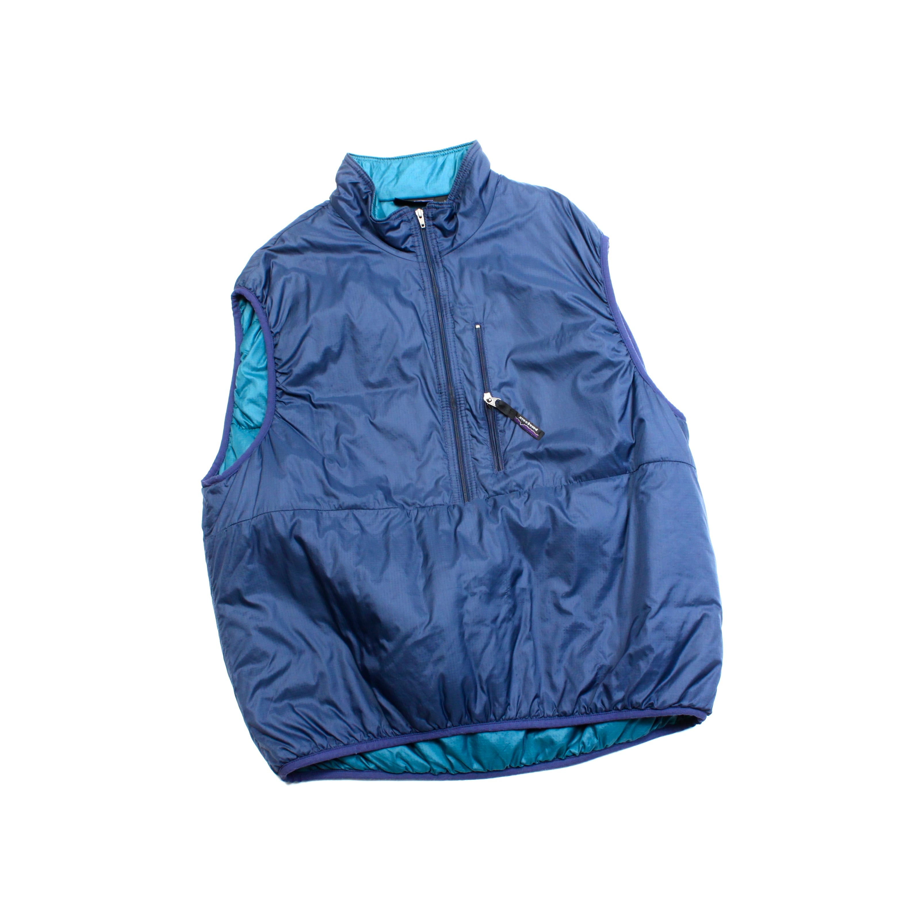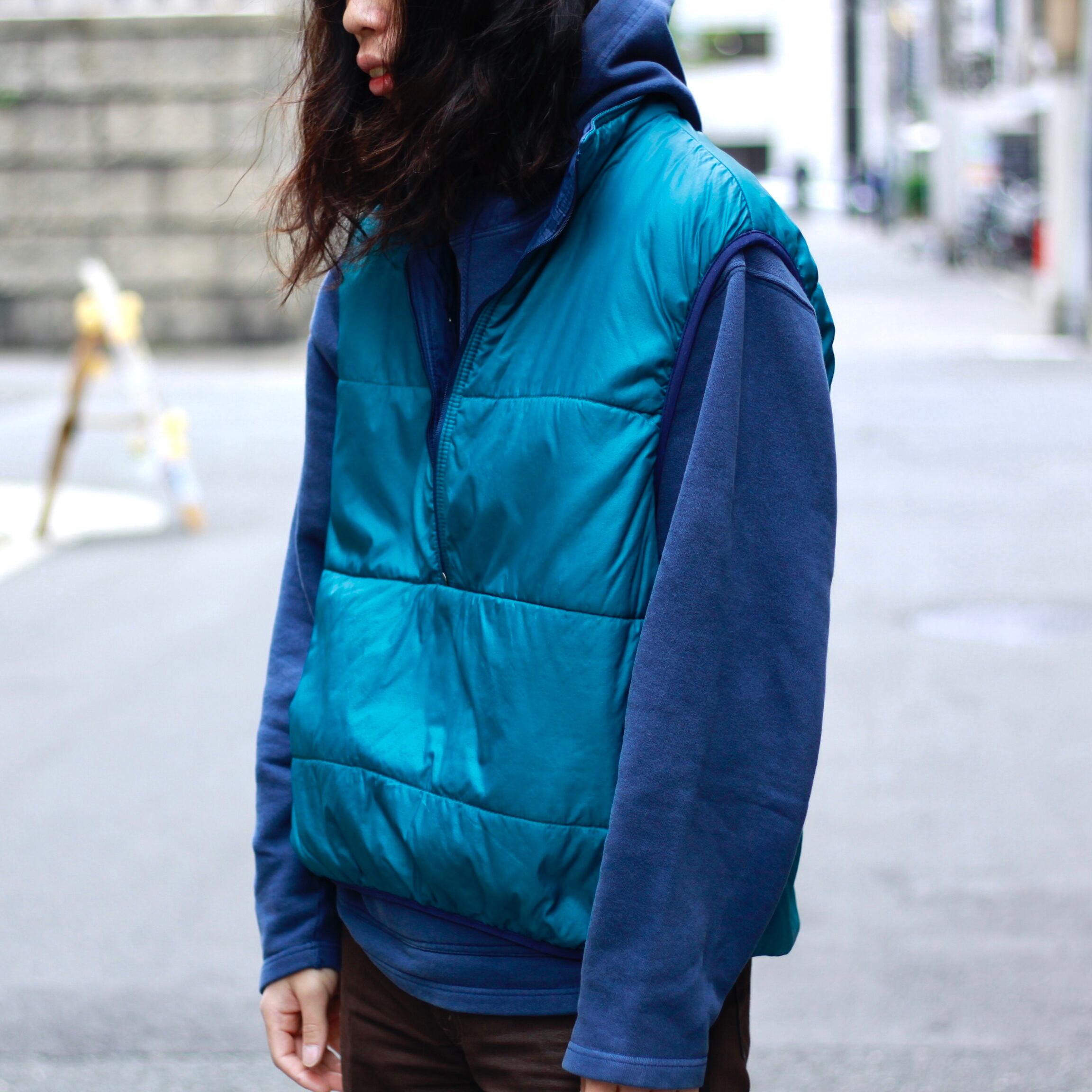 0402. 1990's patagonia puffball vest ネイビー グリーン 中綿ベスト プルオーバー パッカブル パタゴニア 90s 90年代 USA製 vintage 古着
