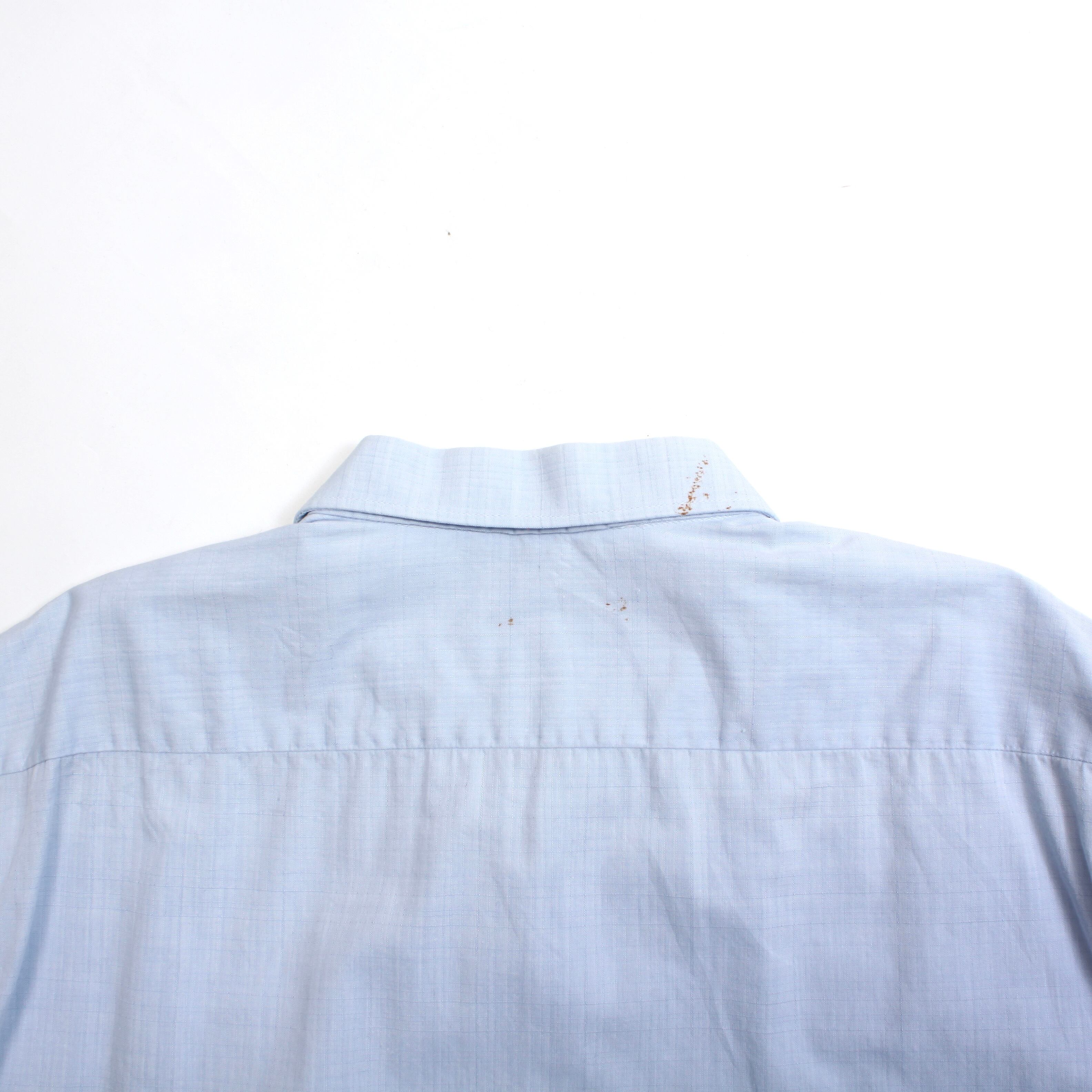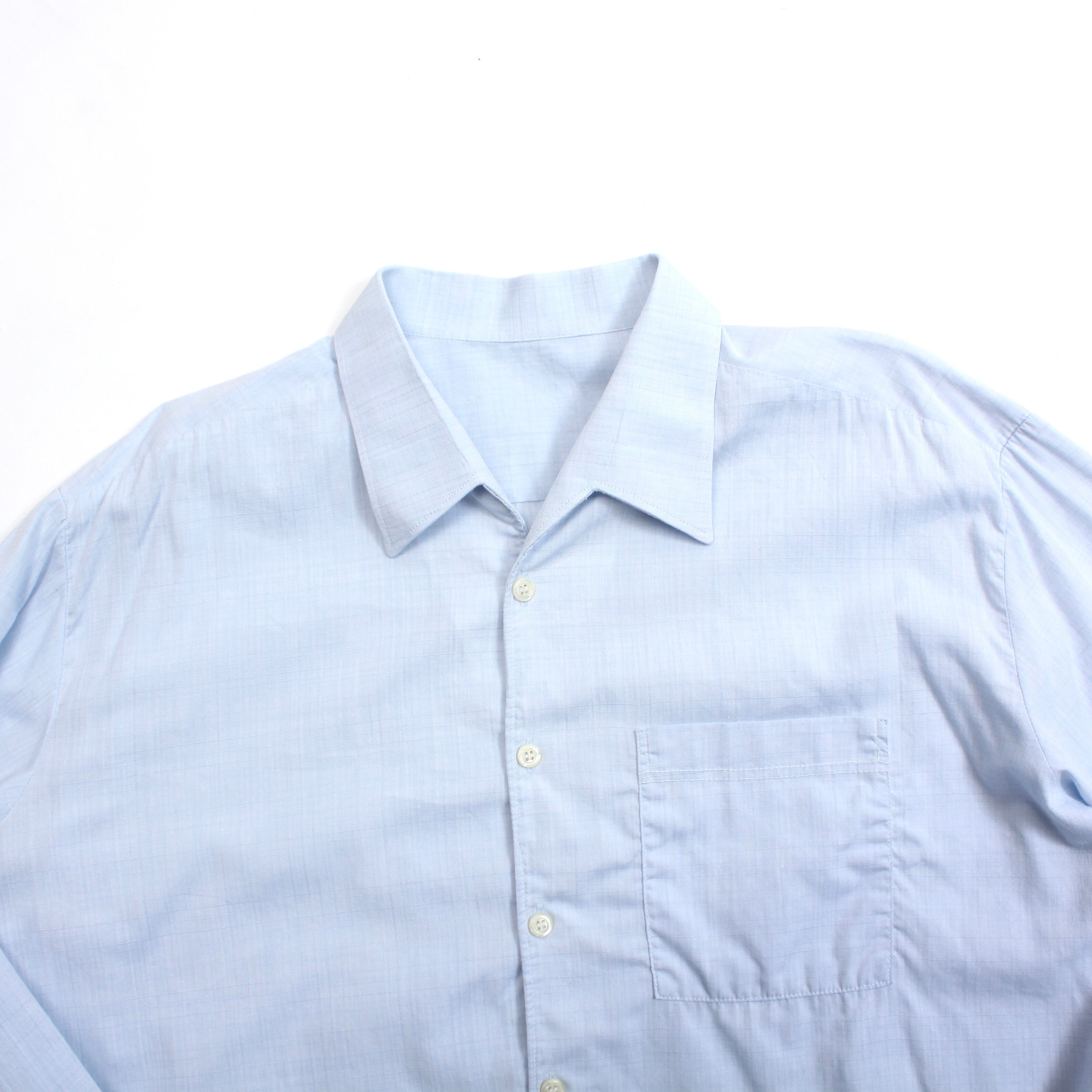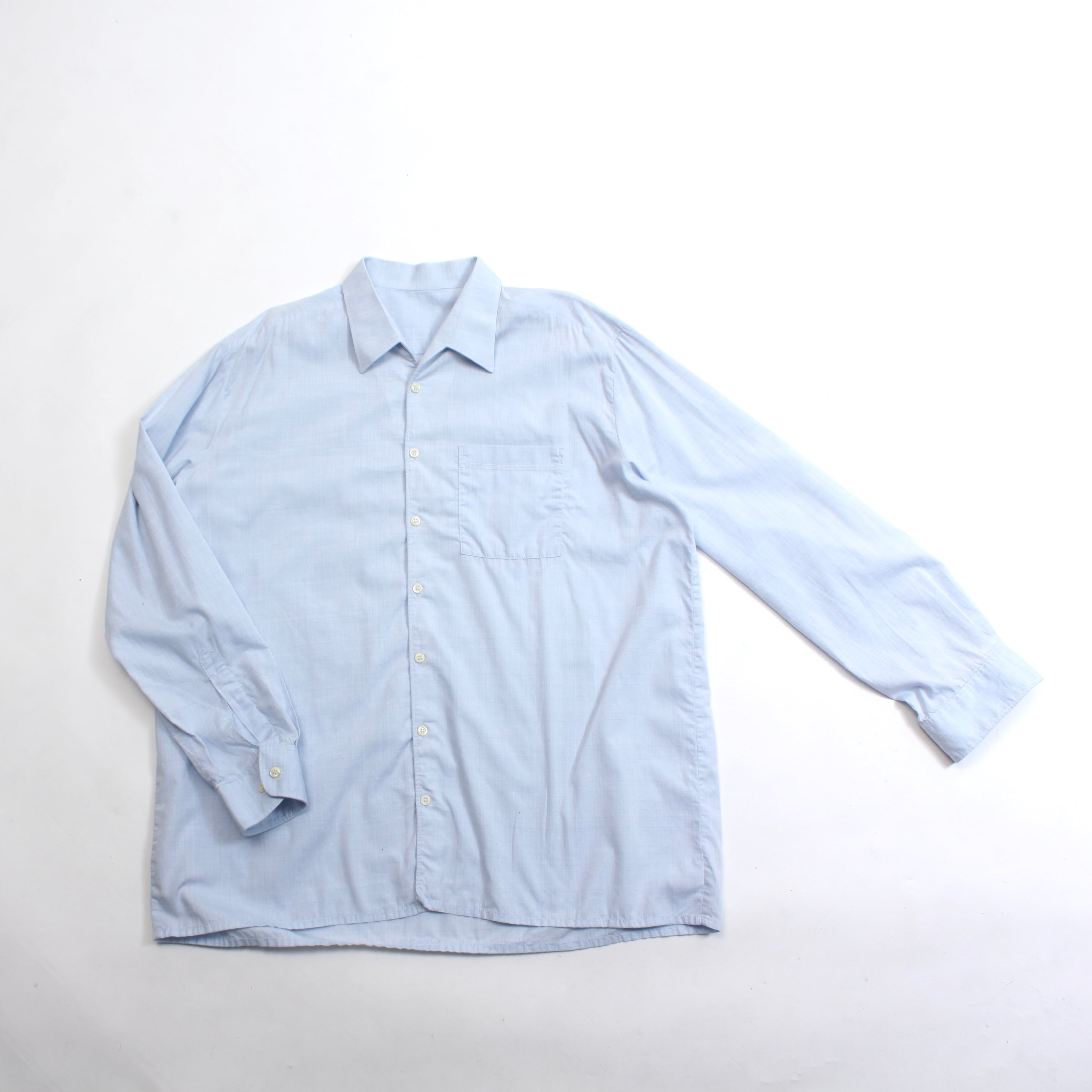 0416. 1970's euro shark collar box shirt sax 70s 70年代 ヴィンテージシャツ シャークカラー 織柄 vintage ヴィンテージ ユーロ古着 古着