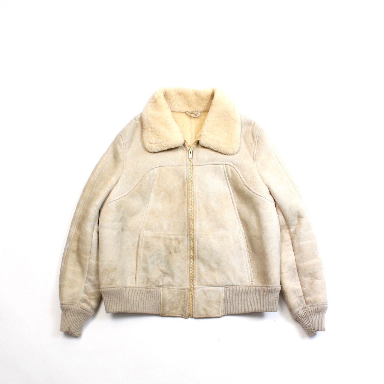 0422. 1970's euro white mouton jacket 70s 70年代 ムートンジャケット レザージャケット 短丈 vintage ヴィンテージ ユーロ古着 古着