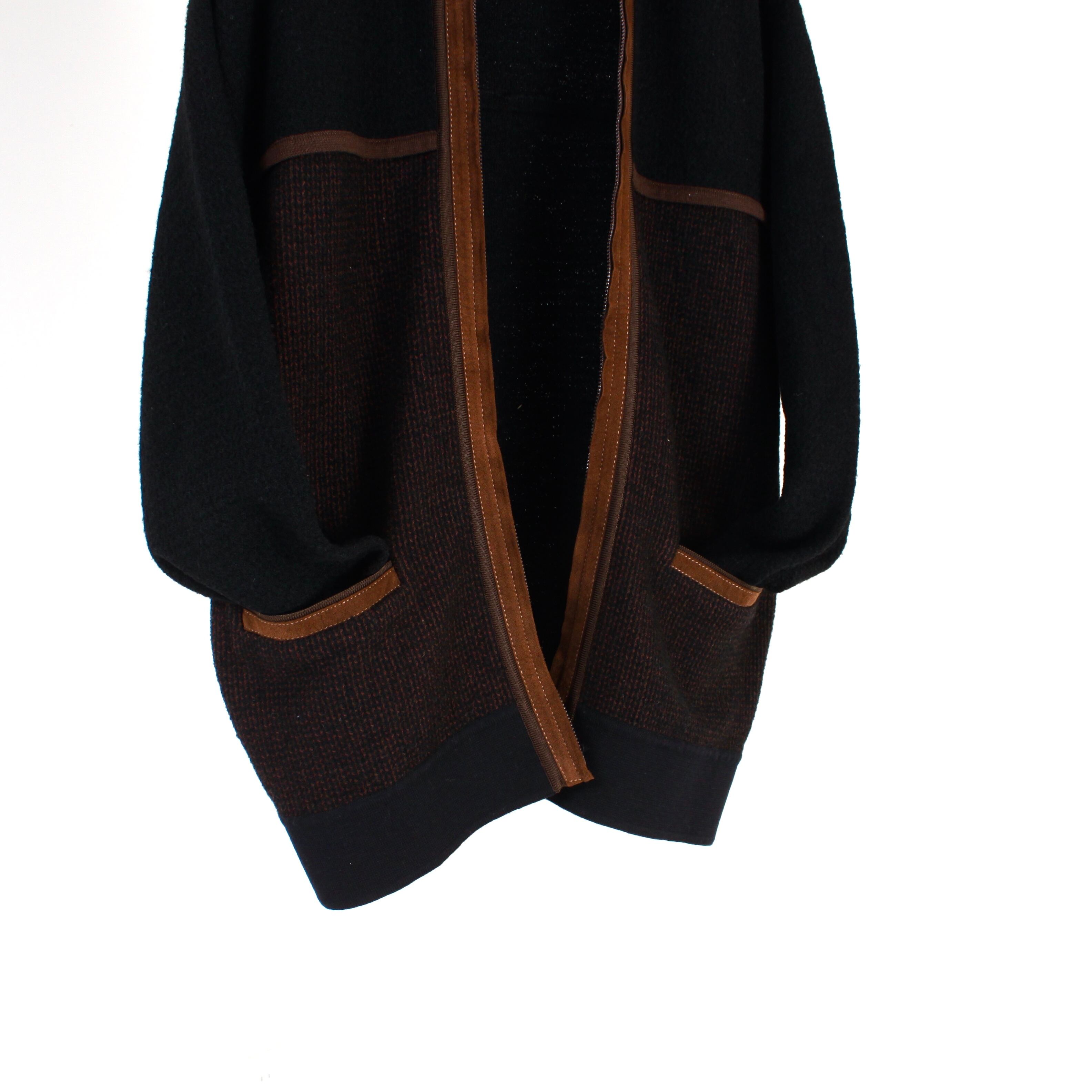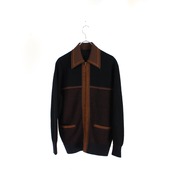 0453. 1970's switching knit cardigan ブラックベース ニットカーディガン ウルトラスエード 70s 70年代 vintage 古着