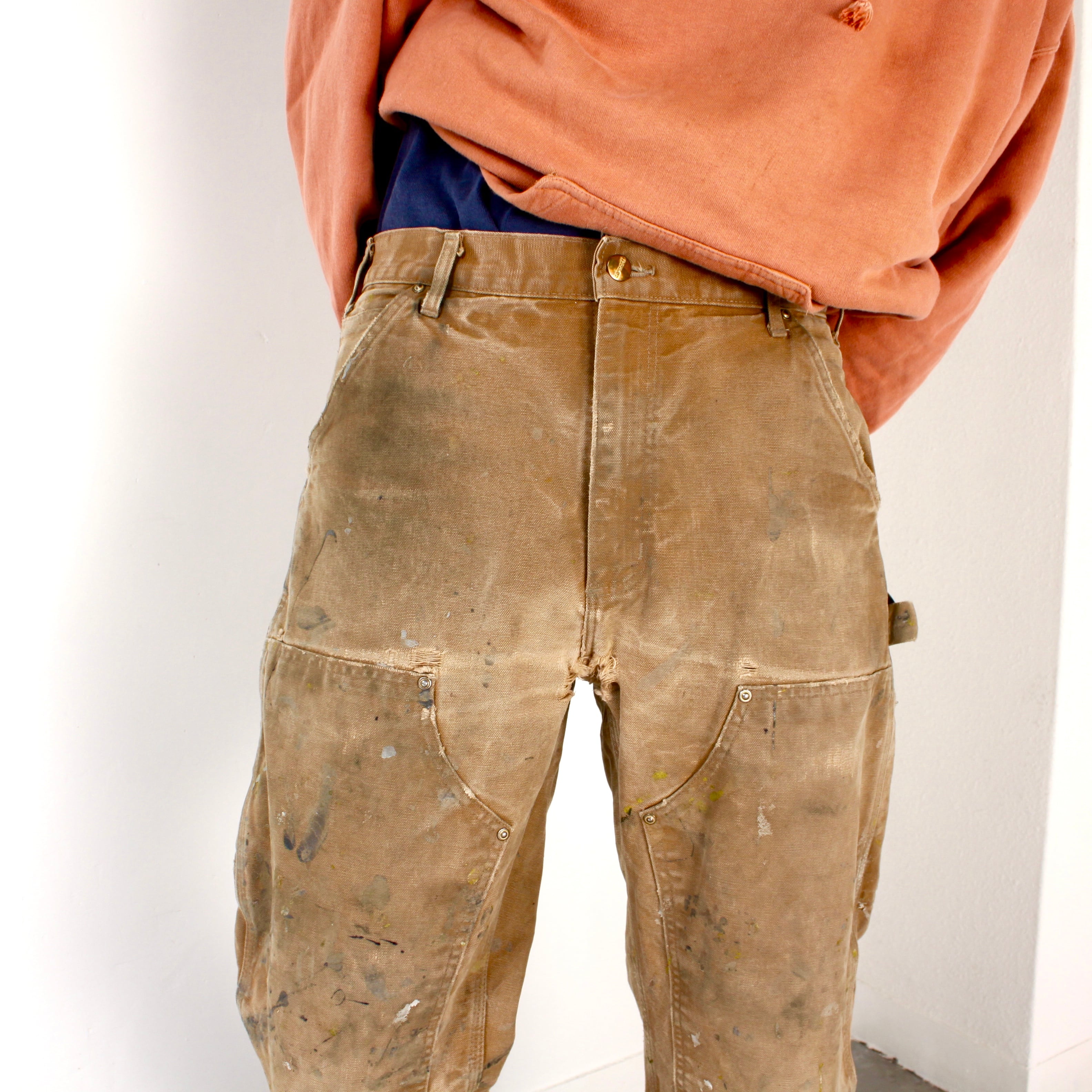 0454. carhartt faded and stains painter pants made in USA ブラウンダック ペインター ワークパンツ カーハート USA製 古着