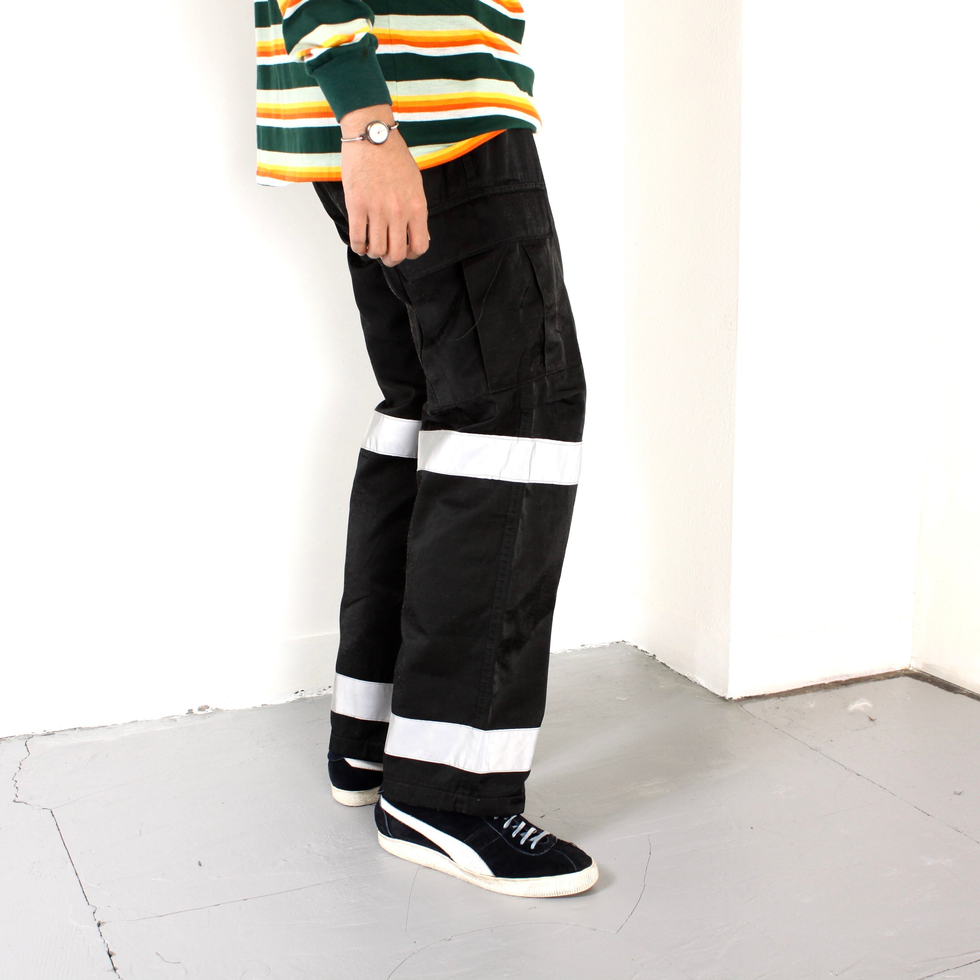 0455. shiny black cargo with reflector ブラックサテン カーゴパンツ リフレクター ミリタリー 古着