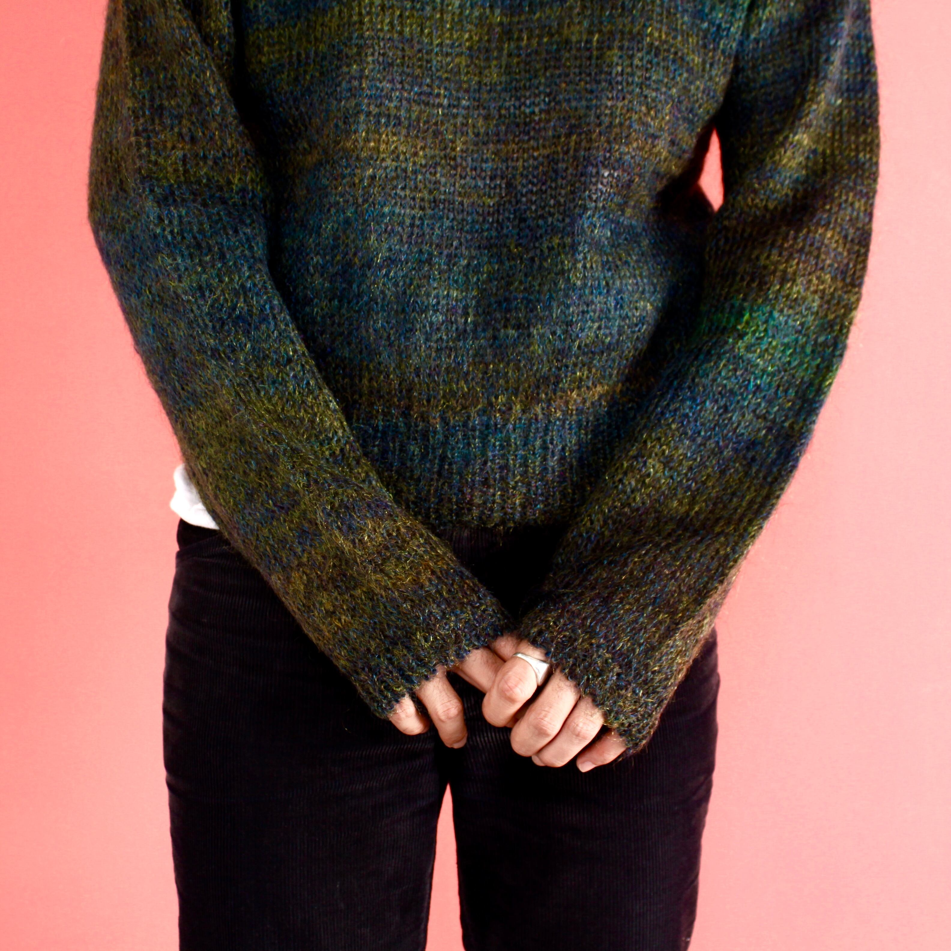 0474. 1990's mohair mix knit グリーン×イエロー モヘアウール ニットセーター 90s 90年代 vintage 古着