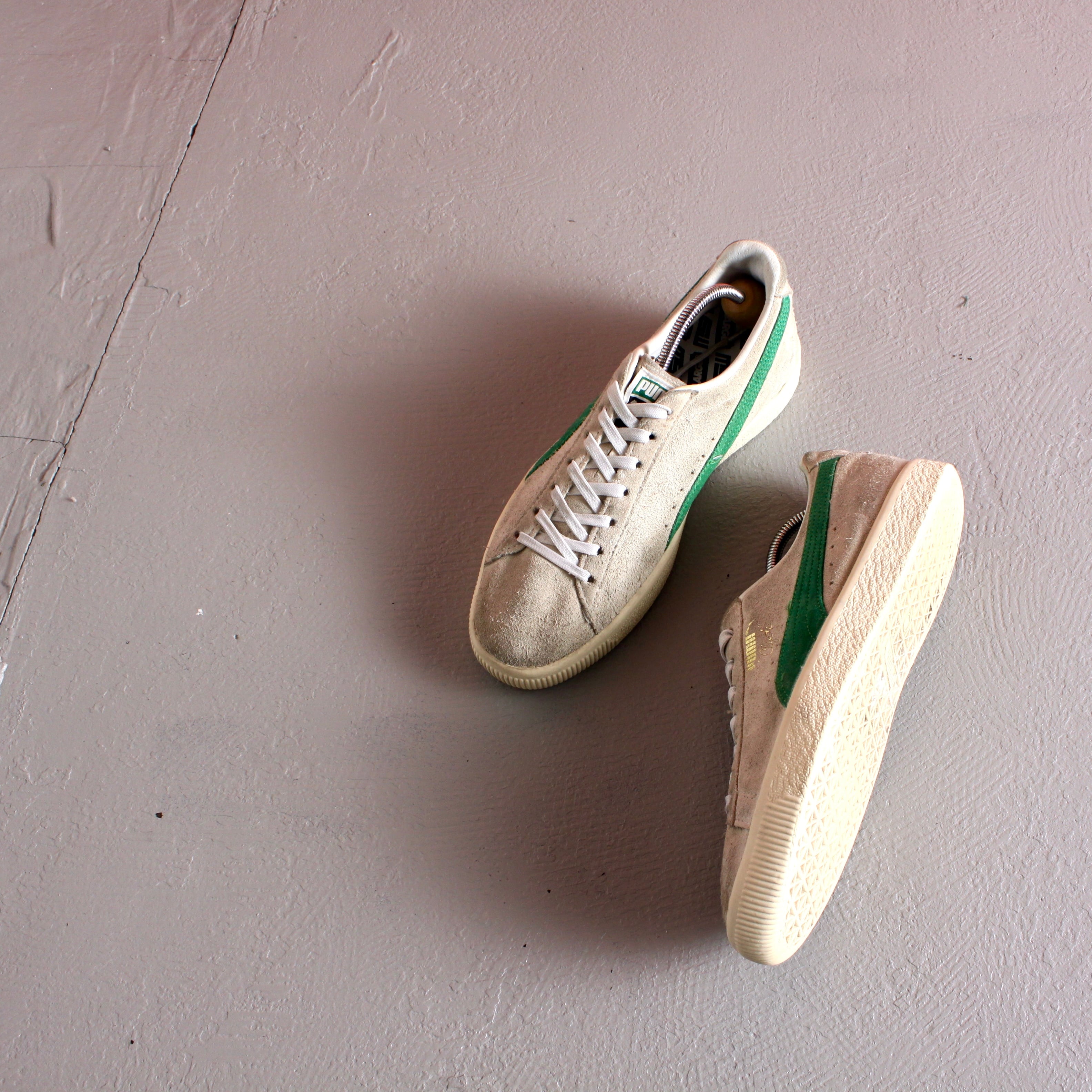 0484. puma clyde × xlarge × mita sneakers whisper white kelly green ホワイト グリーン クライド エクストララージ ミタスニーカーズ スニーカー 靴 プーマ スウェード 29cm 古着