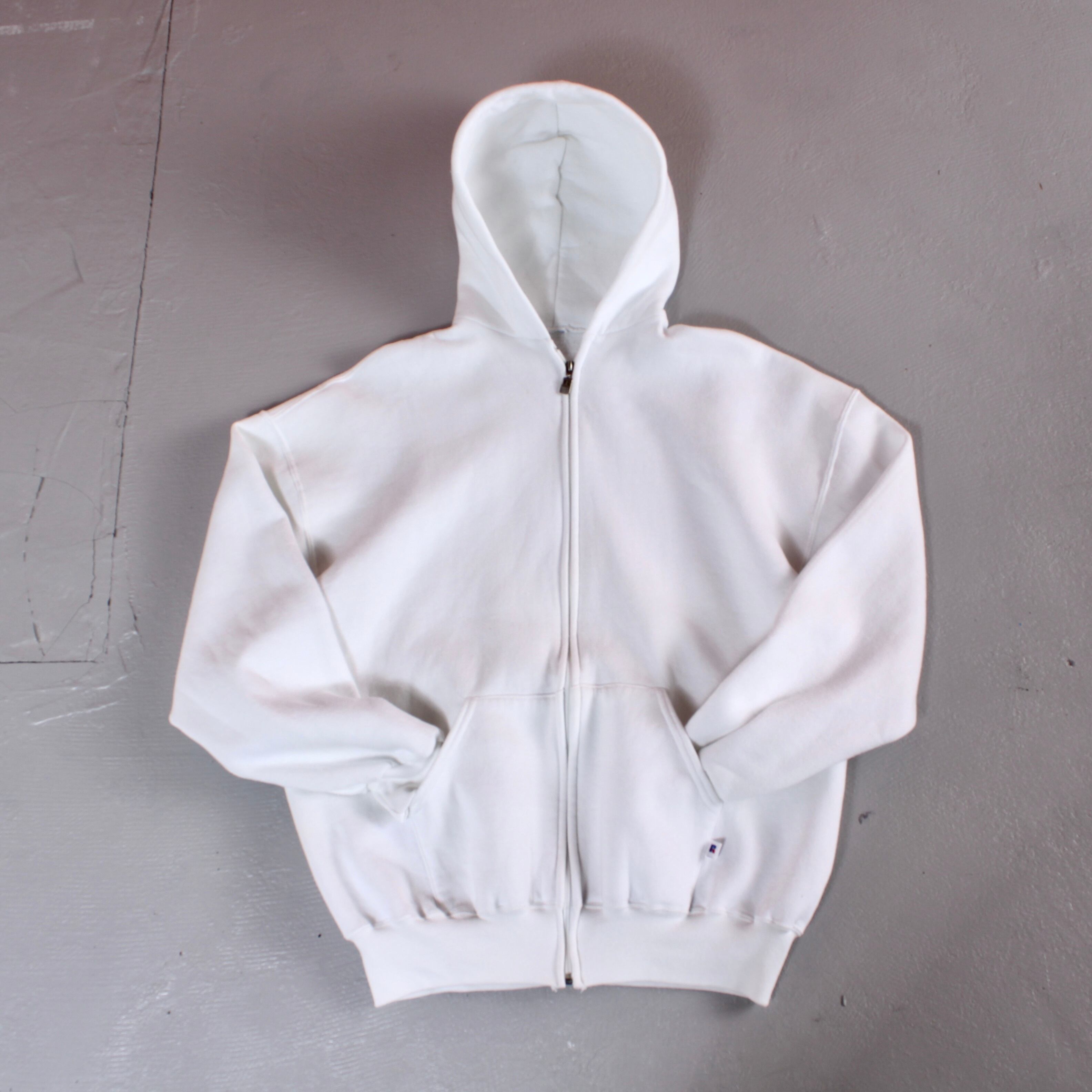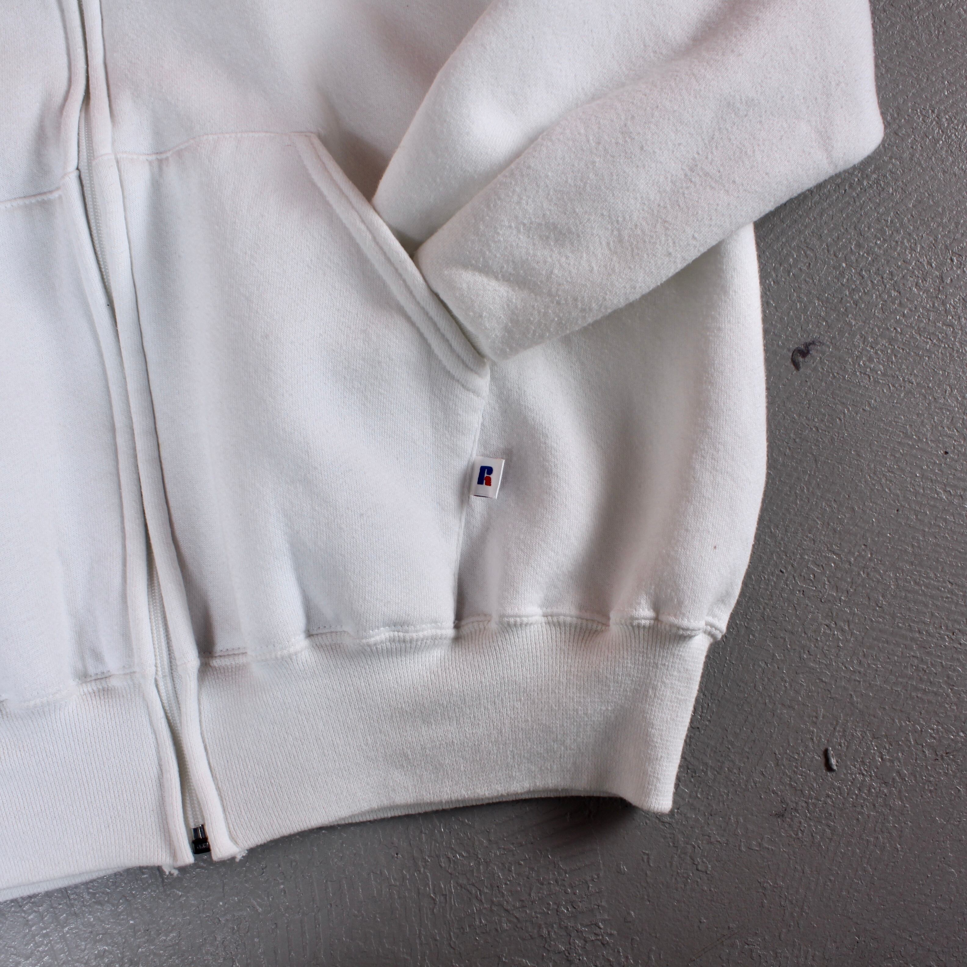 0480. 1990's russell solid zipup sweat hoodie white 90s 90年代 ラッセル スウェット パーカー 無地 白 vintage ヴィンテージ us古着 古着