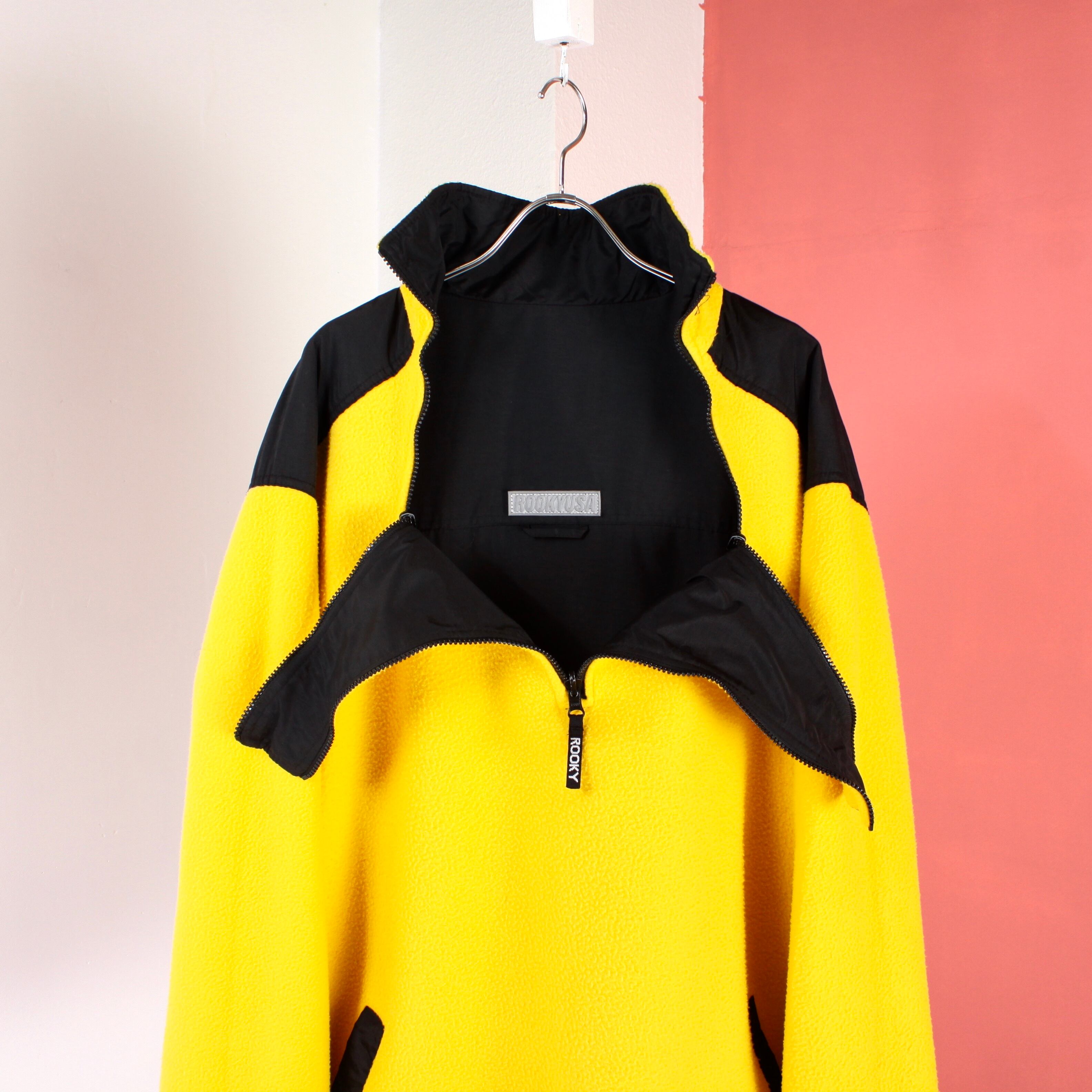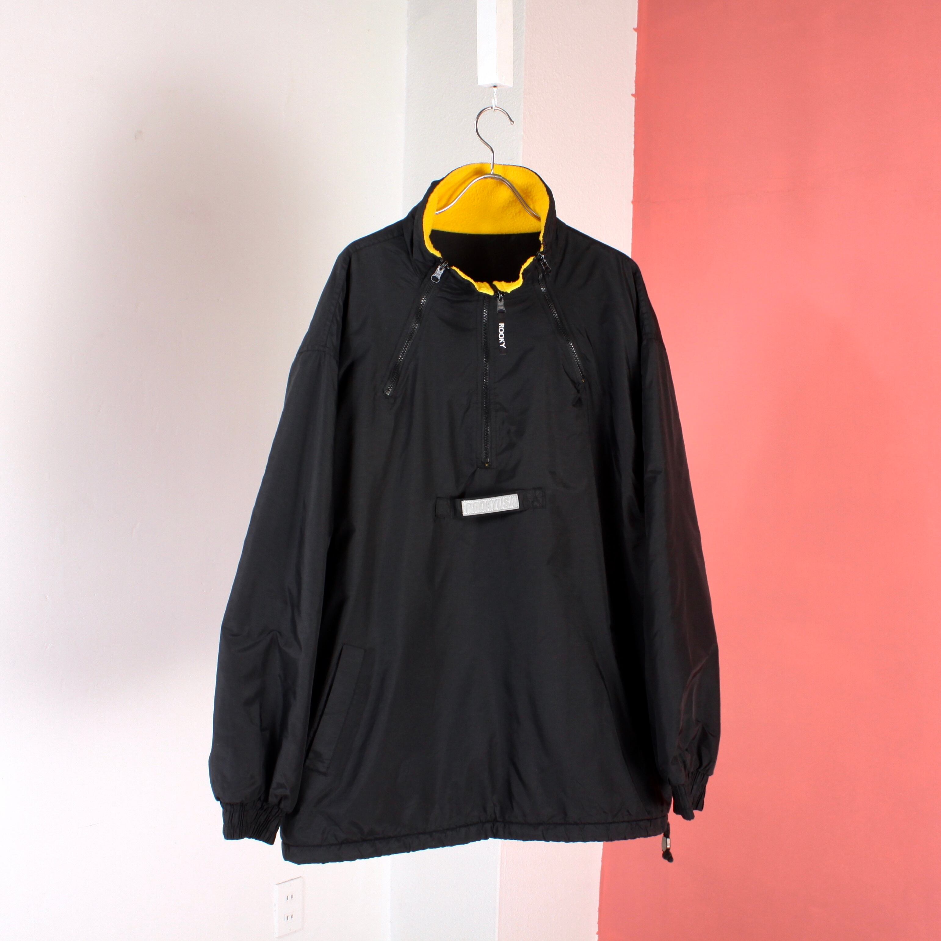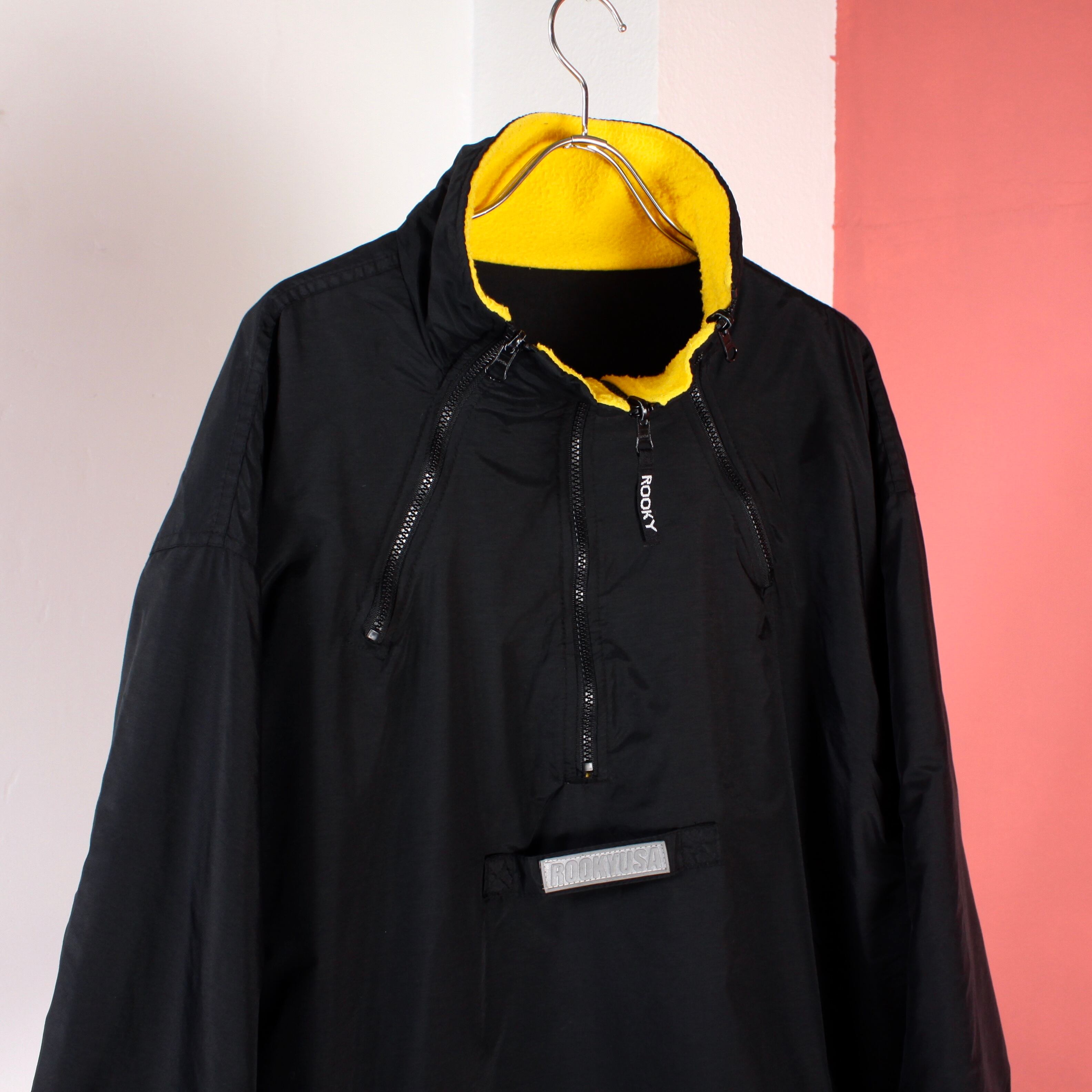 0509. 1990's reversible pullover ブラック×イエロー ナイロンプルオーバー アノラック フリース 90s 90年代 vintage 古着