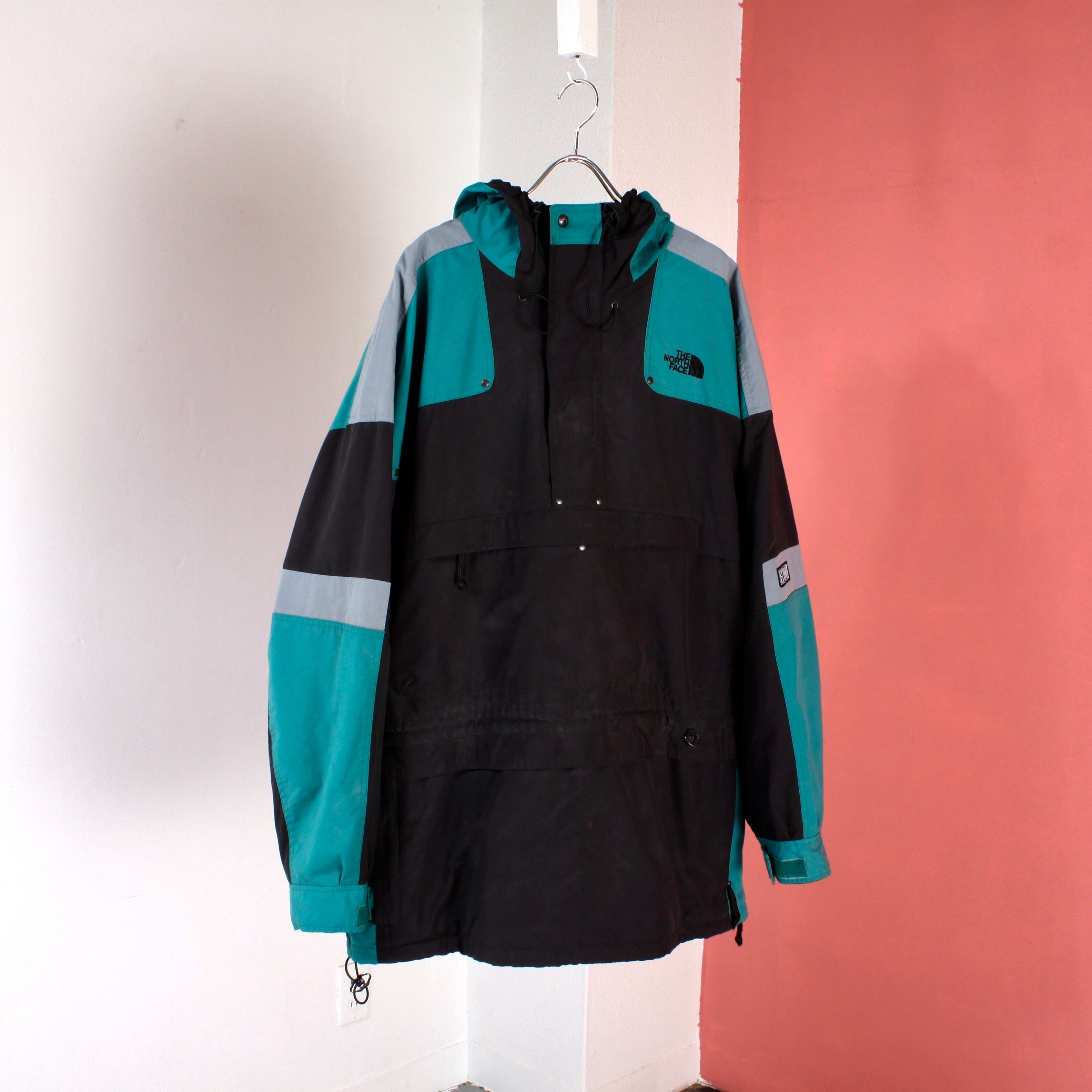 0508. 1990's TNF extreme gear anorak parka ブラック×グリーン ノースフェイス エクストリームギア プルオーバー アノラックパーカー 90s 90年代 vintage the north face 古着
