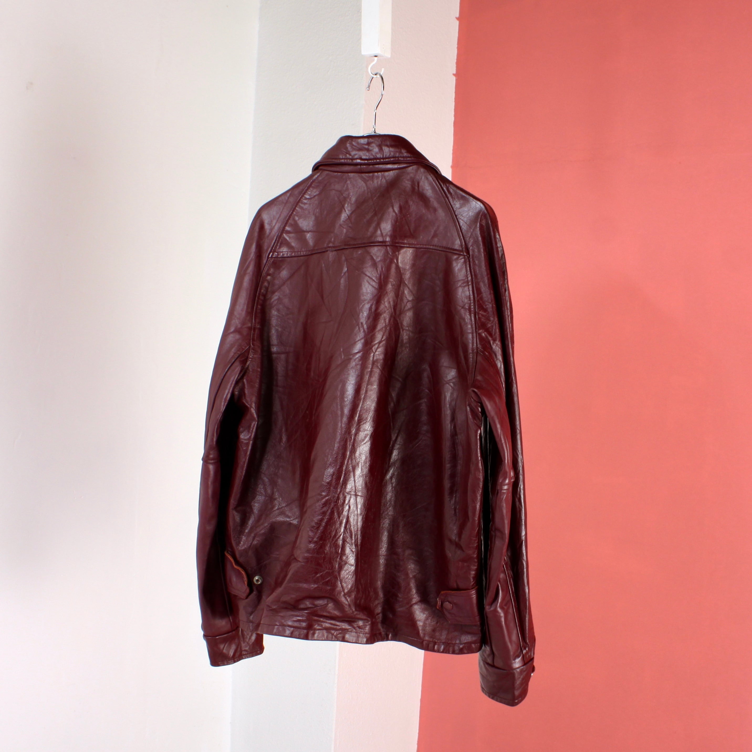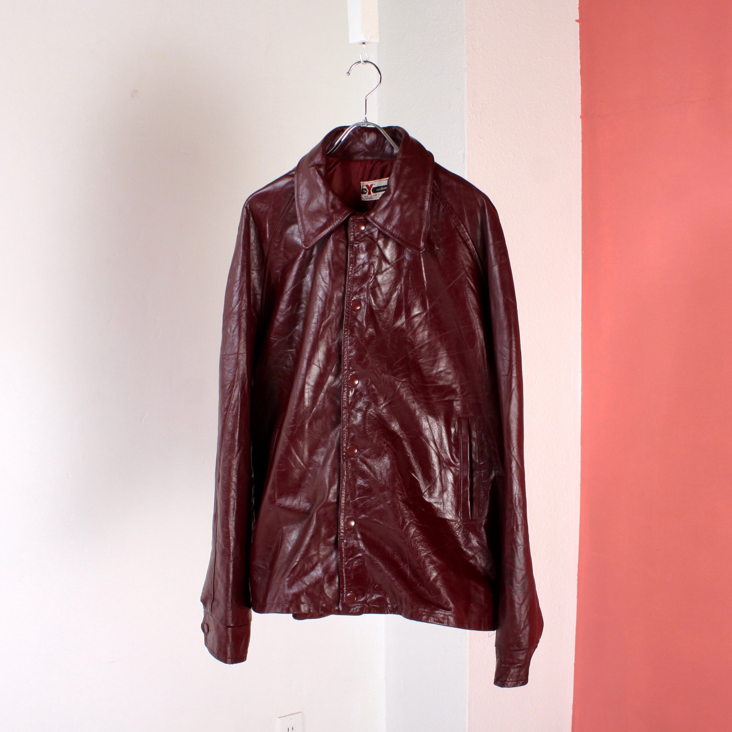 0513. 1970's leather coach jacket ボルドー ワイン レザー ロングスタジャン コーチジャケット 無地 70s 70年代 vintage 古着