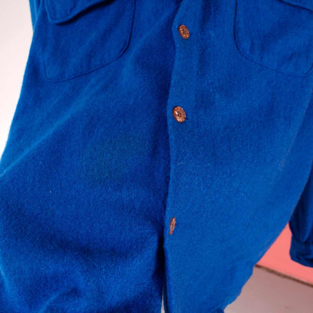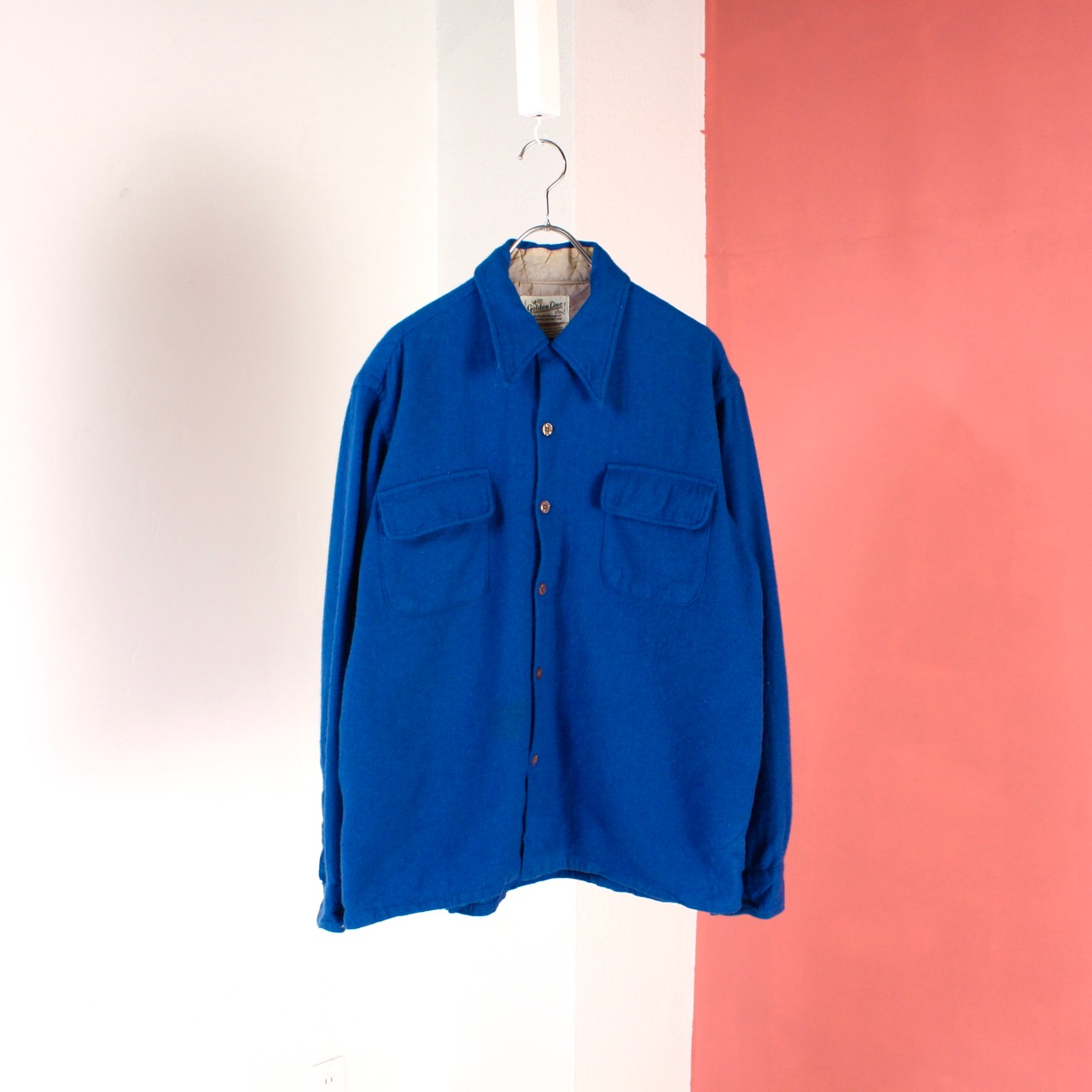 0523. 1970's golden line wool/nylon box shirt royal blue 70s 70年代 ヴィンテージシャツ 青 vintage ヴィンテージ us古着 古着