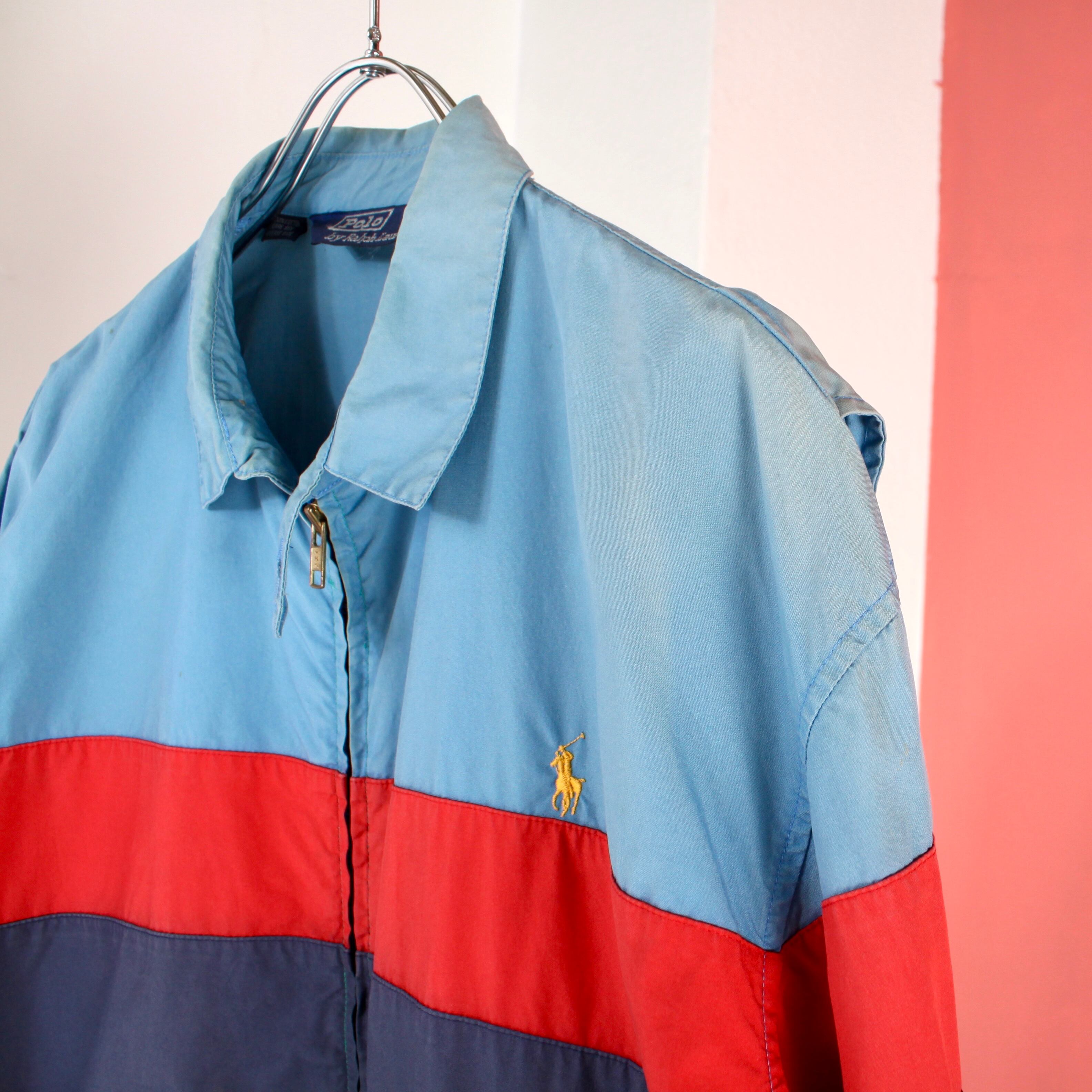 0548. 1990's ralph lauren mulch stripe swingtop マルチボーダー ブルー×レッド×グリーン コットン スイングトップ ブルゾン シンガポール製 ポロ ラルフローレン 90s 90年代 vintage polo 古着