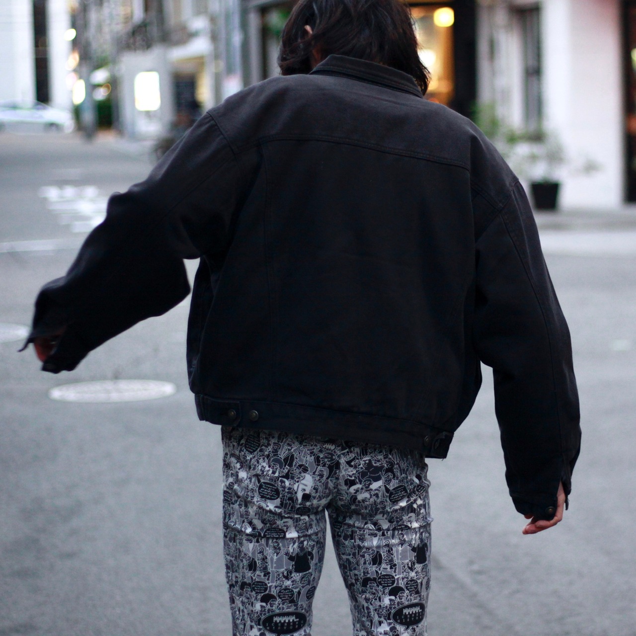 0563. 1990's ferugini boa jacket ブラック ボア トラッカージャケット 中綿キルティング 90s 90年代 vintage 古着