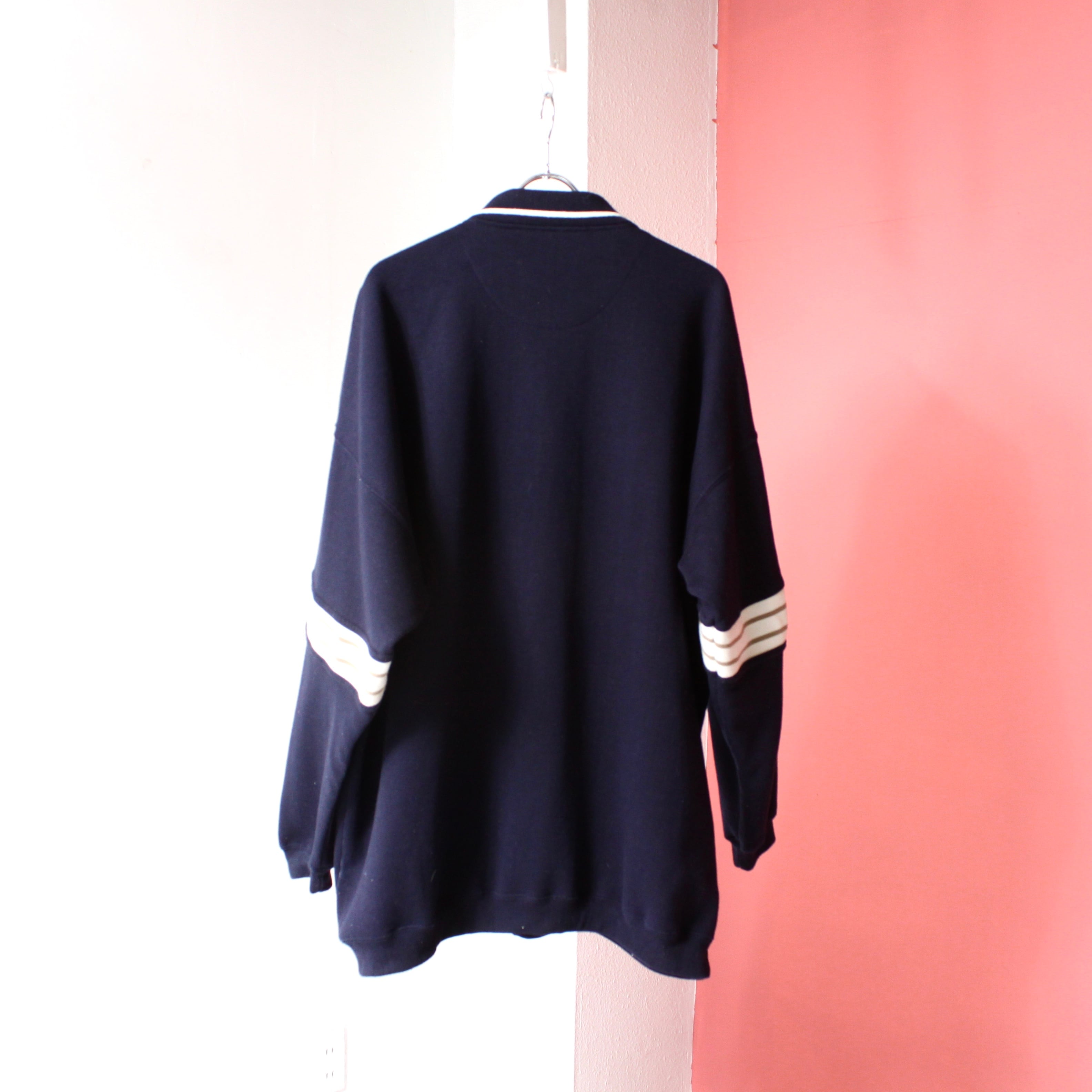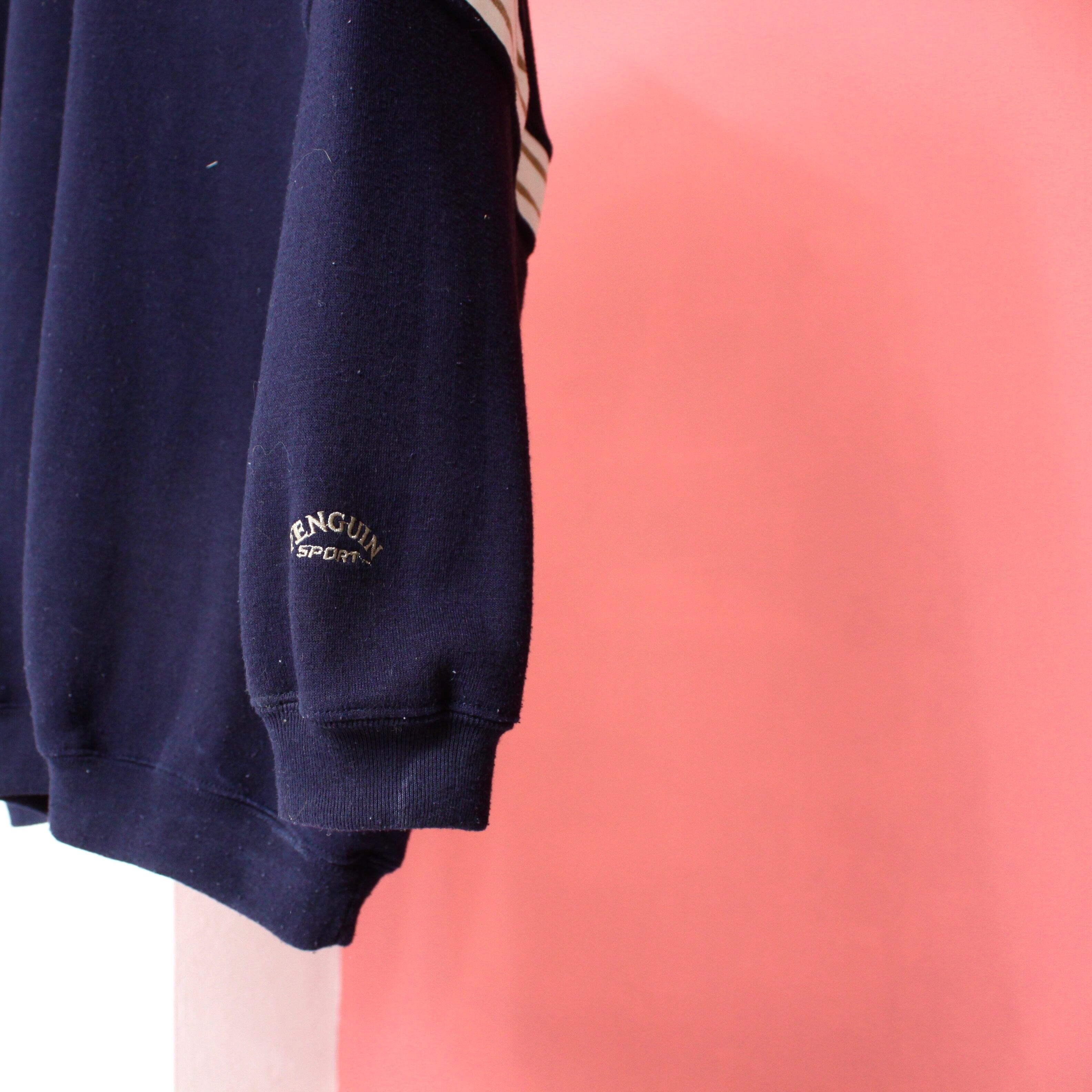 0568. 1990's penguin polo sweat shirt navy 90s 90年代 スウェット ポロシャツ ネイビー vintage ヴィンテージ us古着 古着