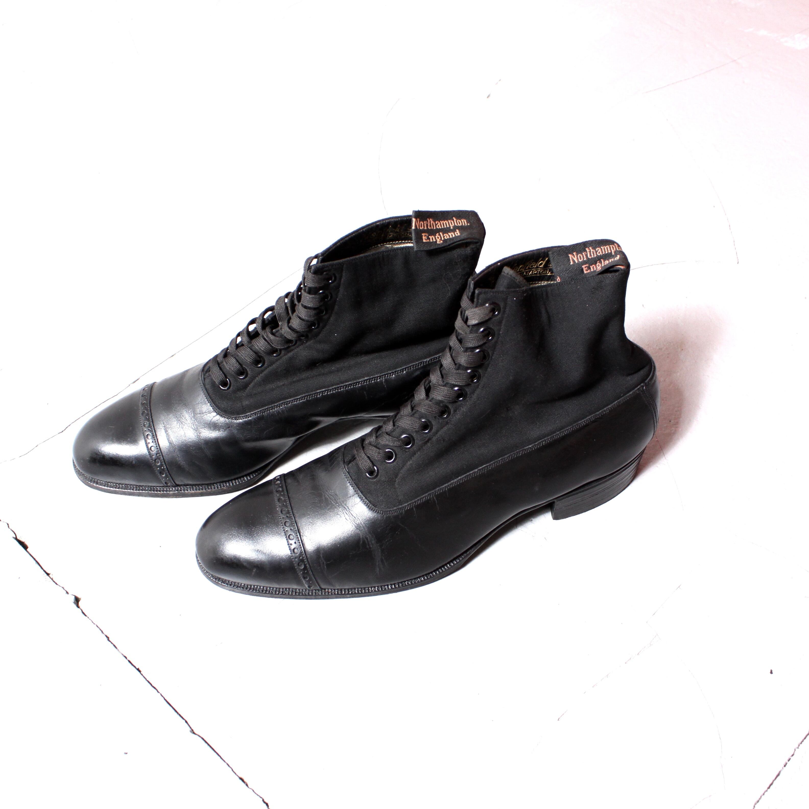 0576. 1900's Manfield & Sons Leather boots with melton spats antique 革靴 vintage ヴィンテージ アンティーク イギリス ユーロ古着 ヨーロッパ古着