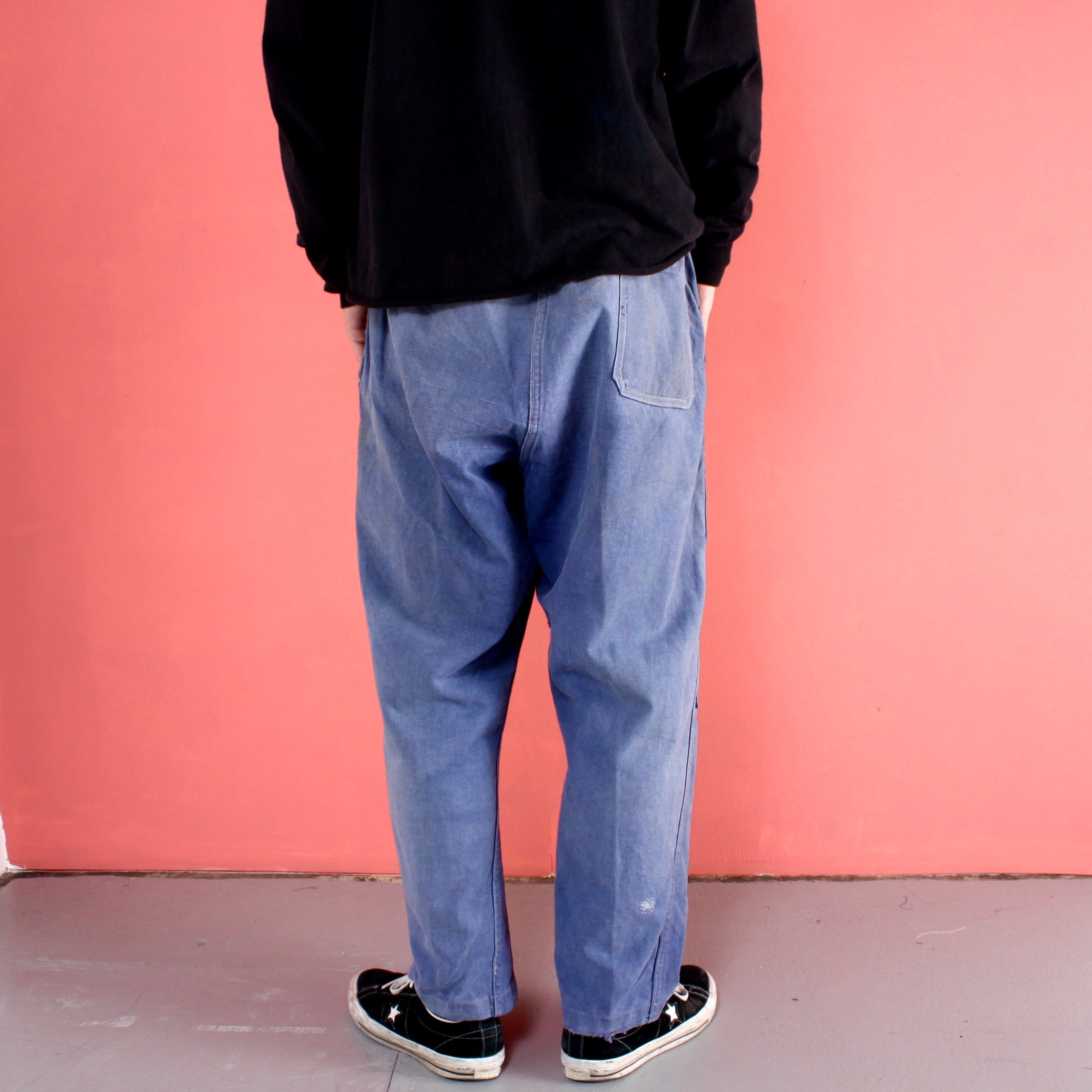 0589. 1950's L'ours Bleu French work double knee pants ink blue 50s 50年代 フレンチワーク ワーク パッチワーク インクブルー vintage ヴィンテージ フレンチヴィンテージ ユーロ古着 ヨーロッパ古着 古着