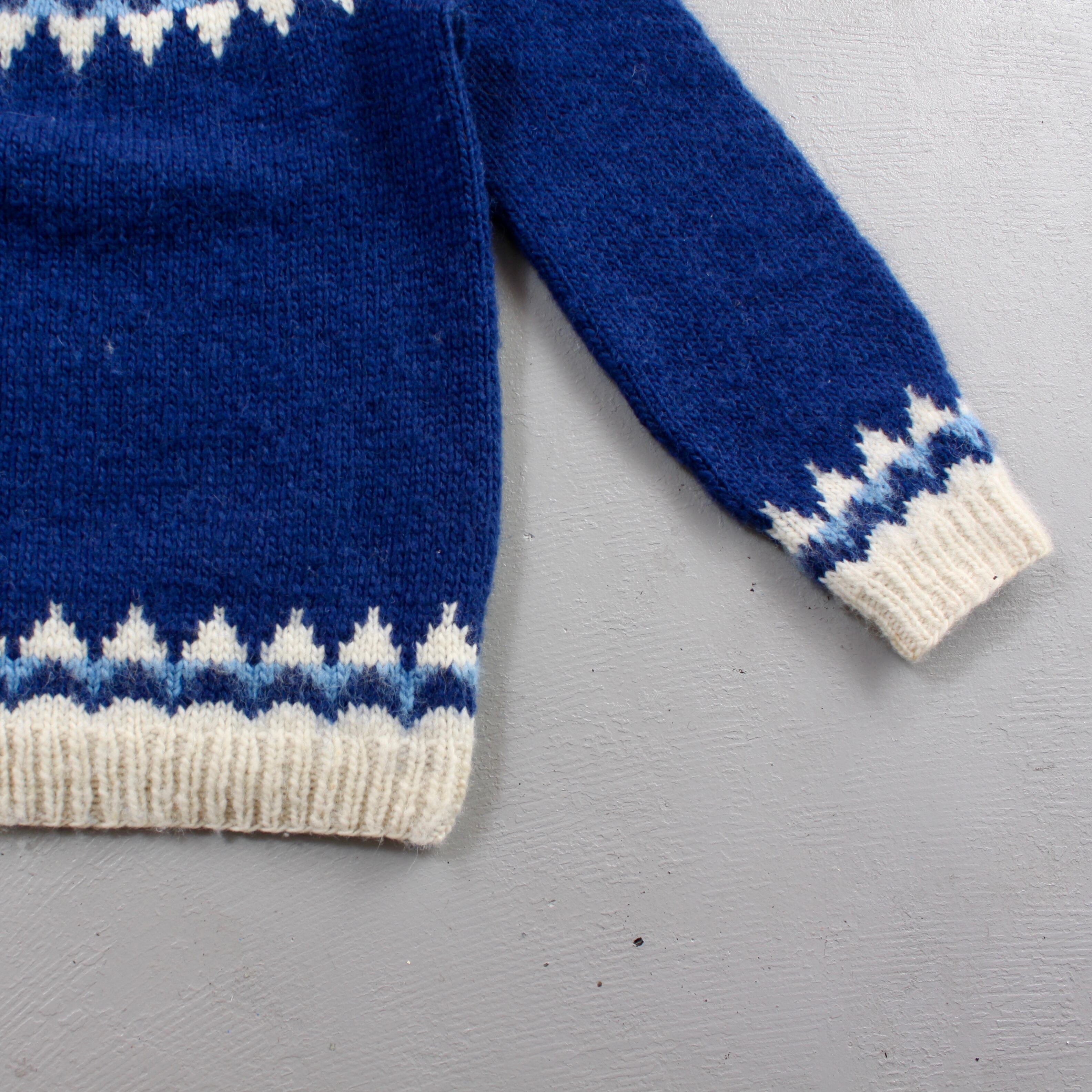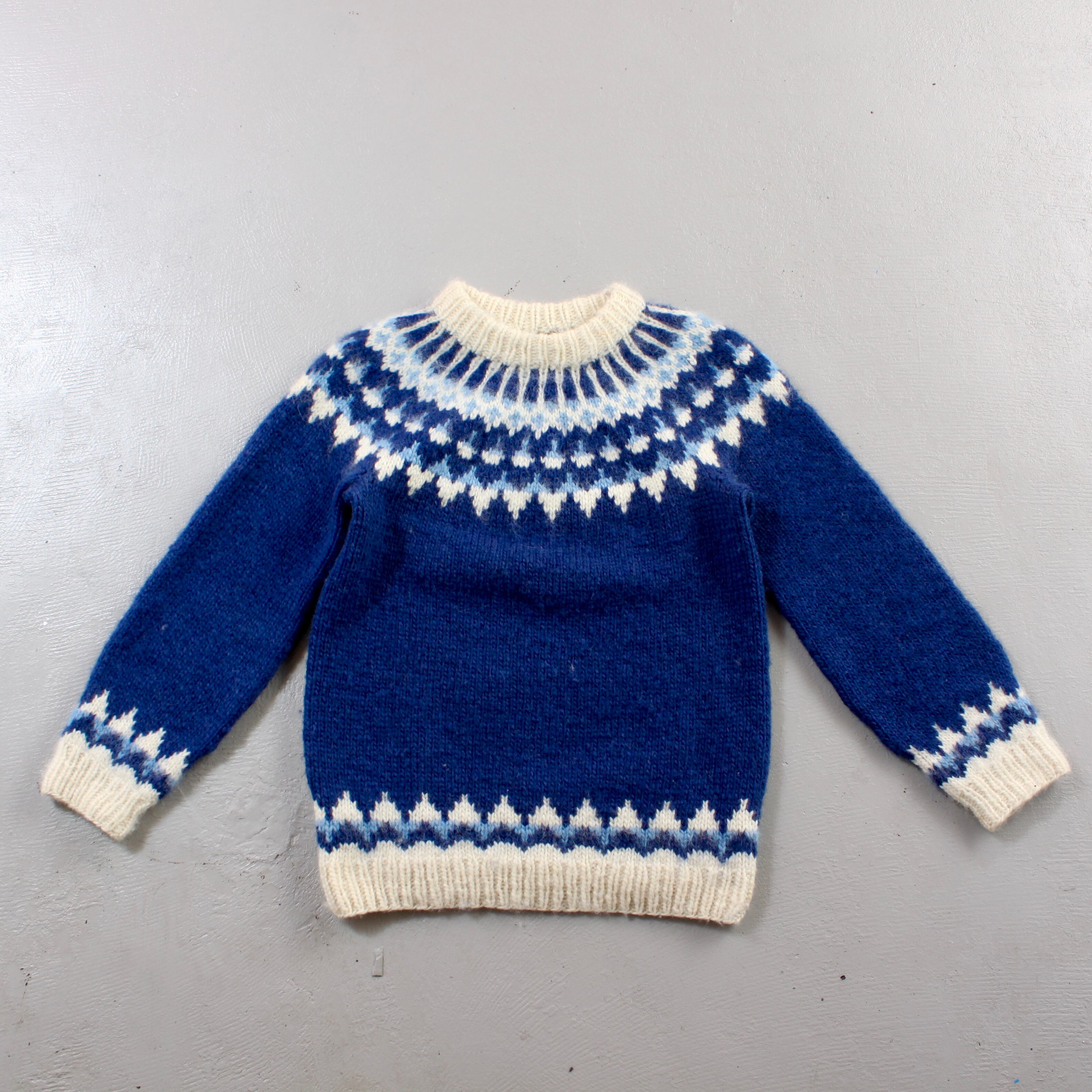 0592. Nordic hand knit sweater made in Denmark ブルー ハンドニット ノルディックセーター デンマーク製 求心柄 euro vintage ユーロ古着