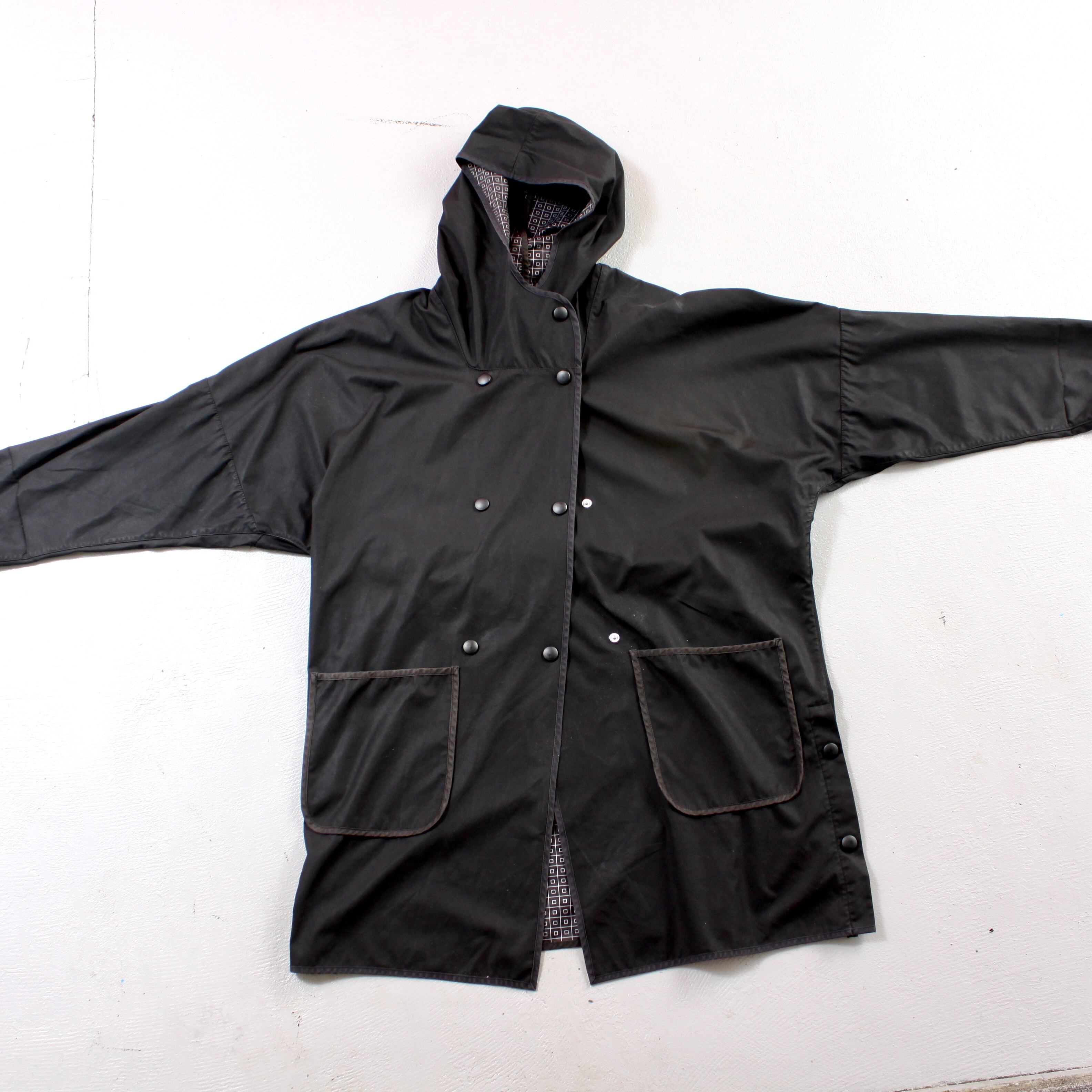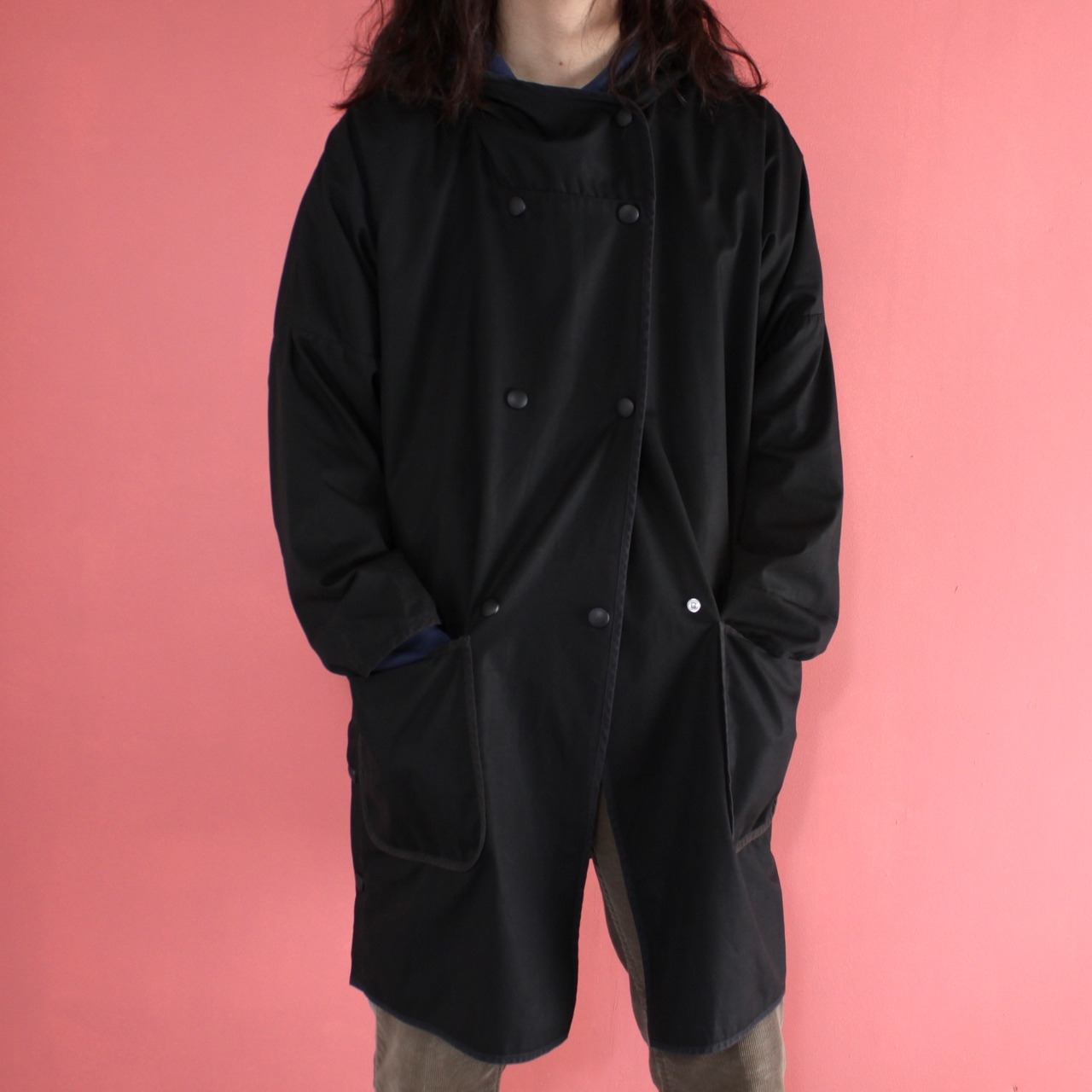 0596. euro design cotton/poly hooded coat ブラック ダブルブレスト レインコート パーカー ポンチョ ケープ ユーロ古着