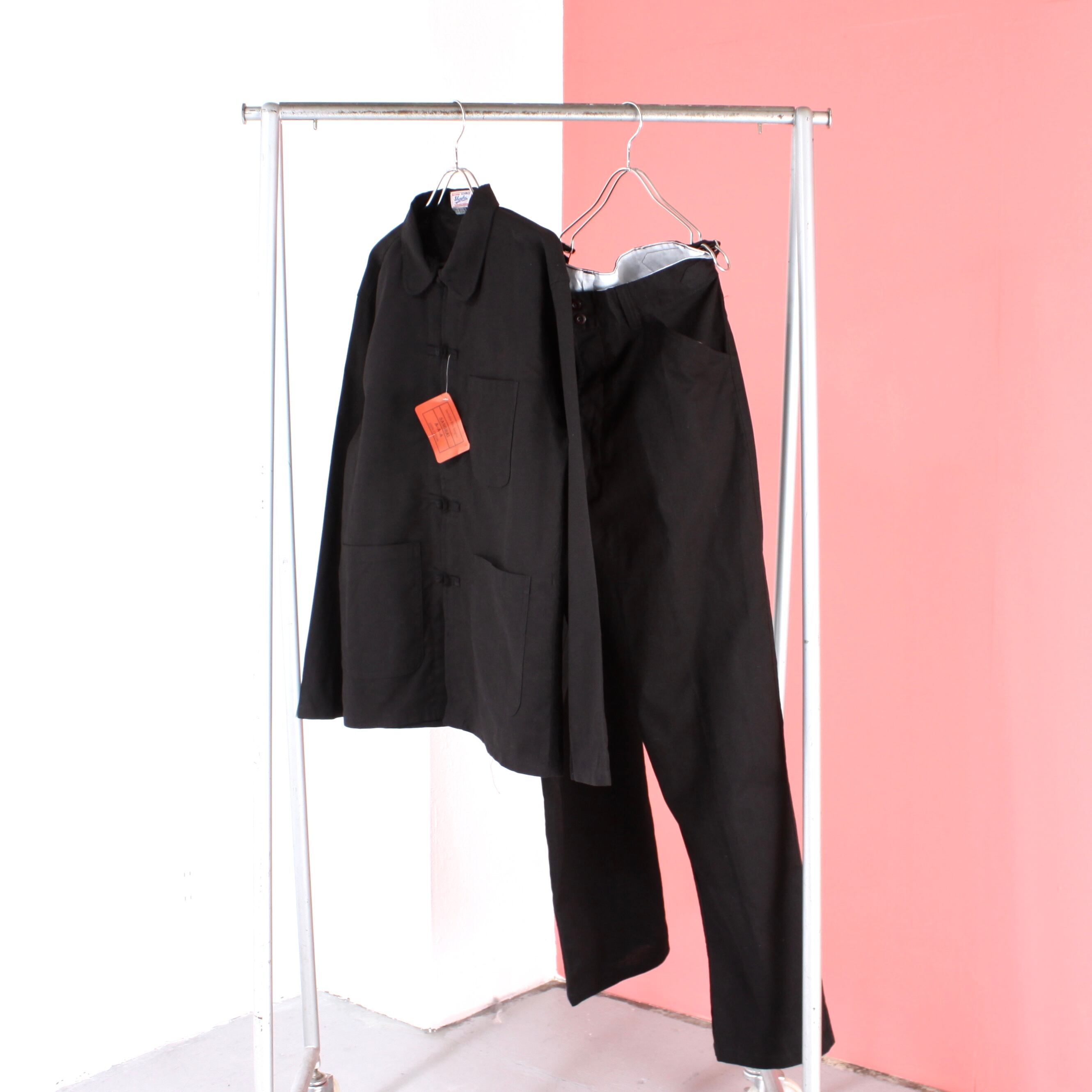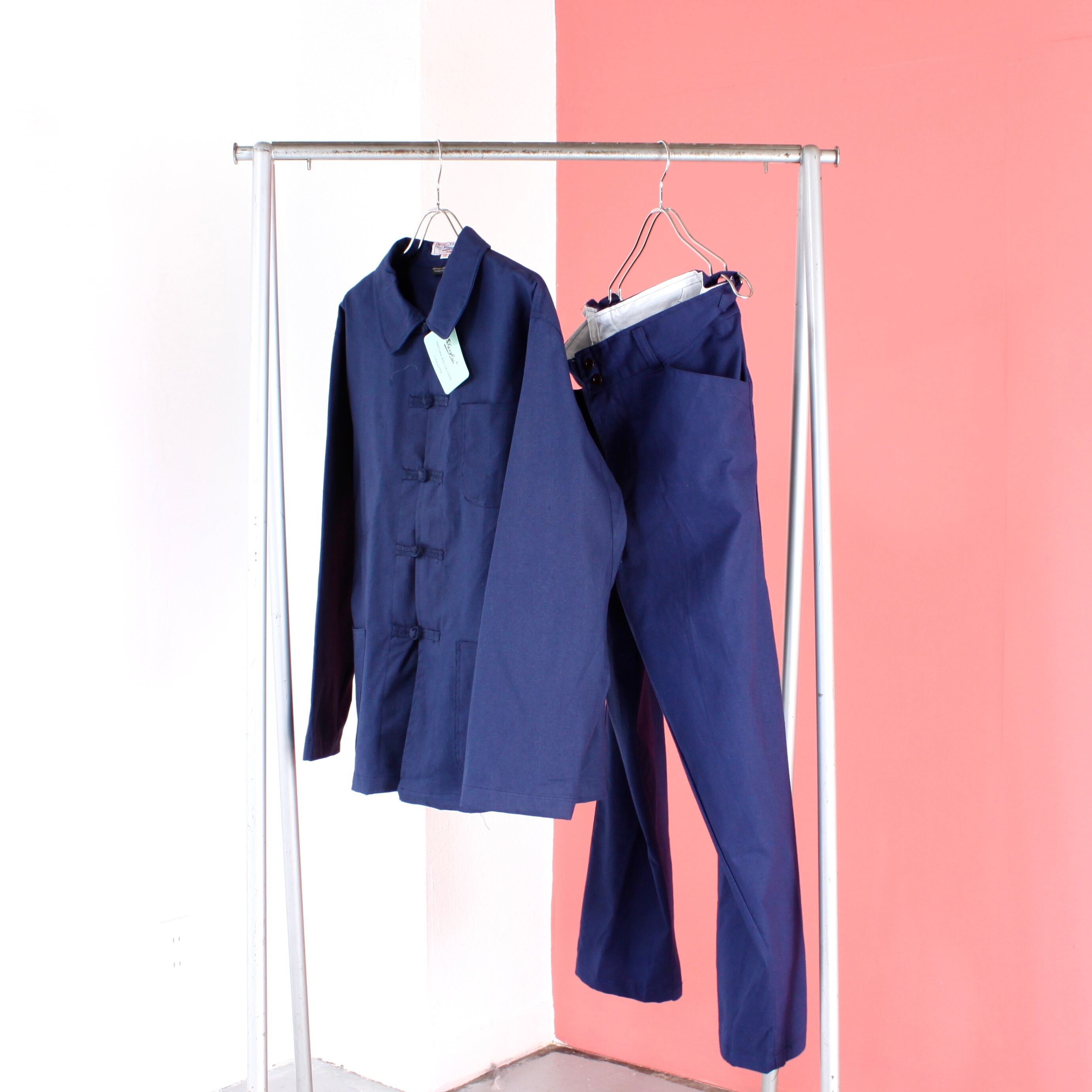 0600. NOS euro work set up ブラック インクブルー チャイナジャケット ワークパンツ セットアップ デッドストック euro vintage ユーロ古着