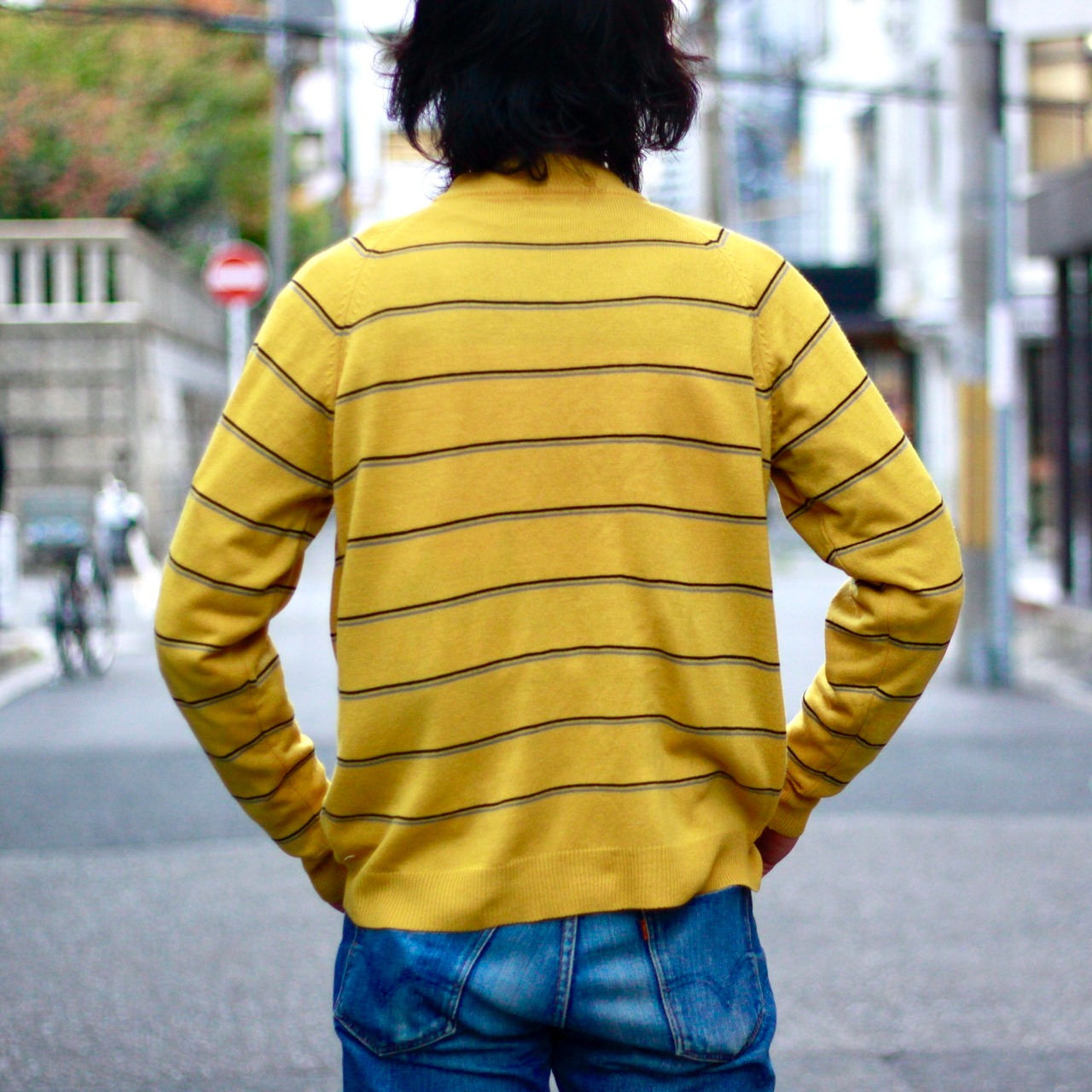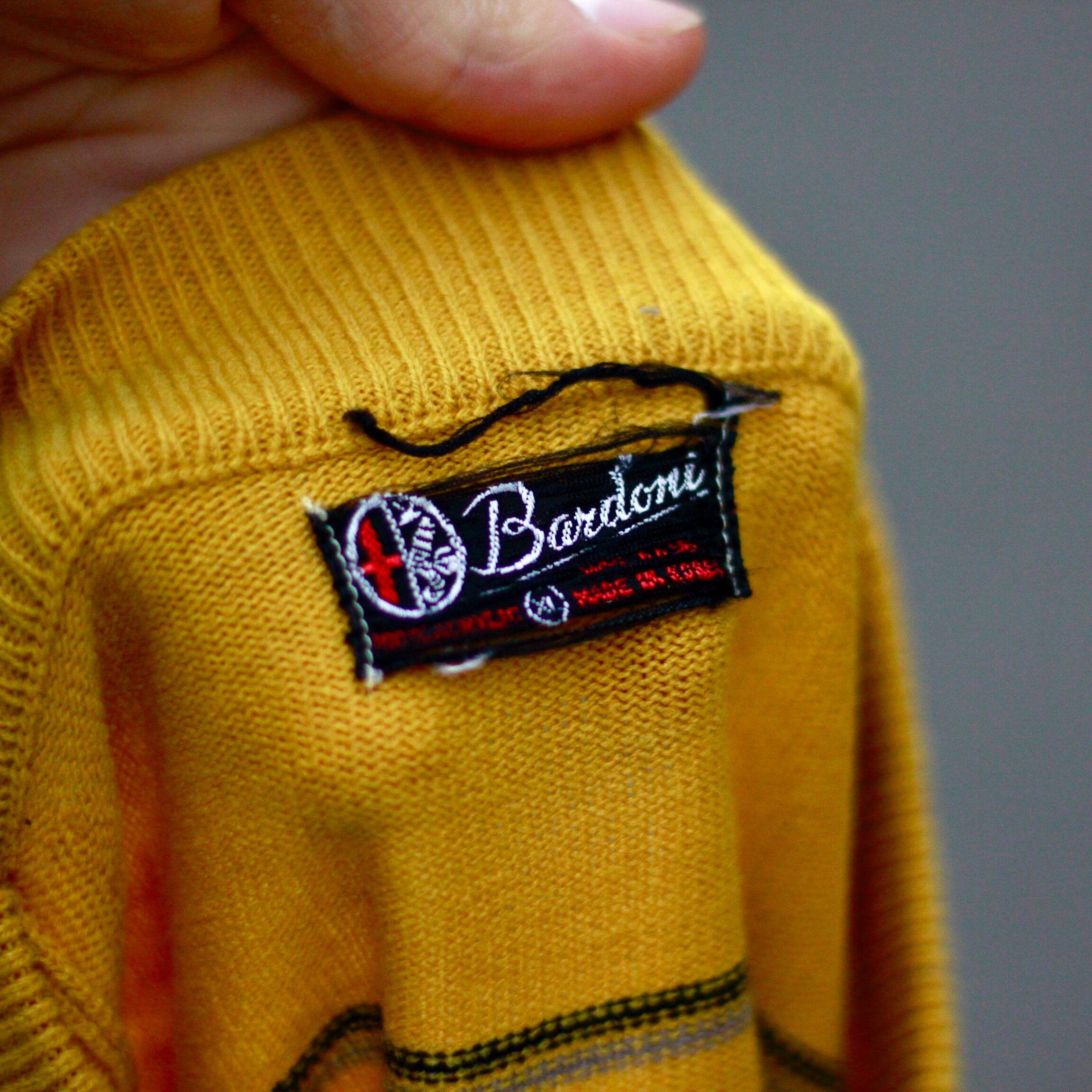 0612. 1960's Bardoni Acrylic striped knit sweater mustard 60s 60年代 マスタード モッズ ヴィンテージニット vintage ヴィンテージ us古着 古着