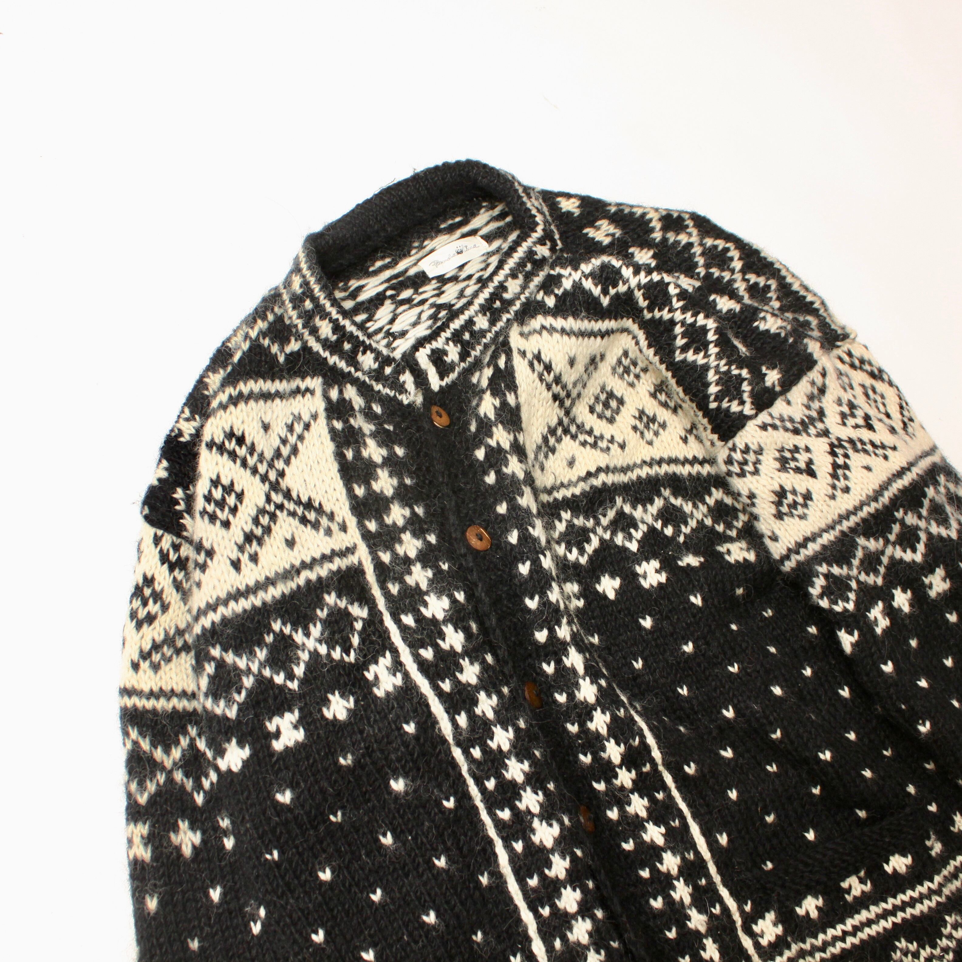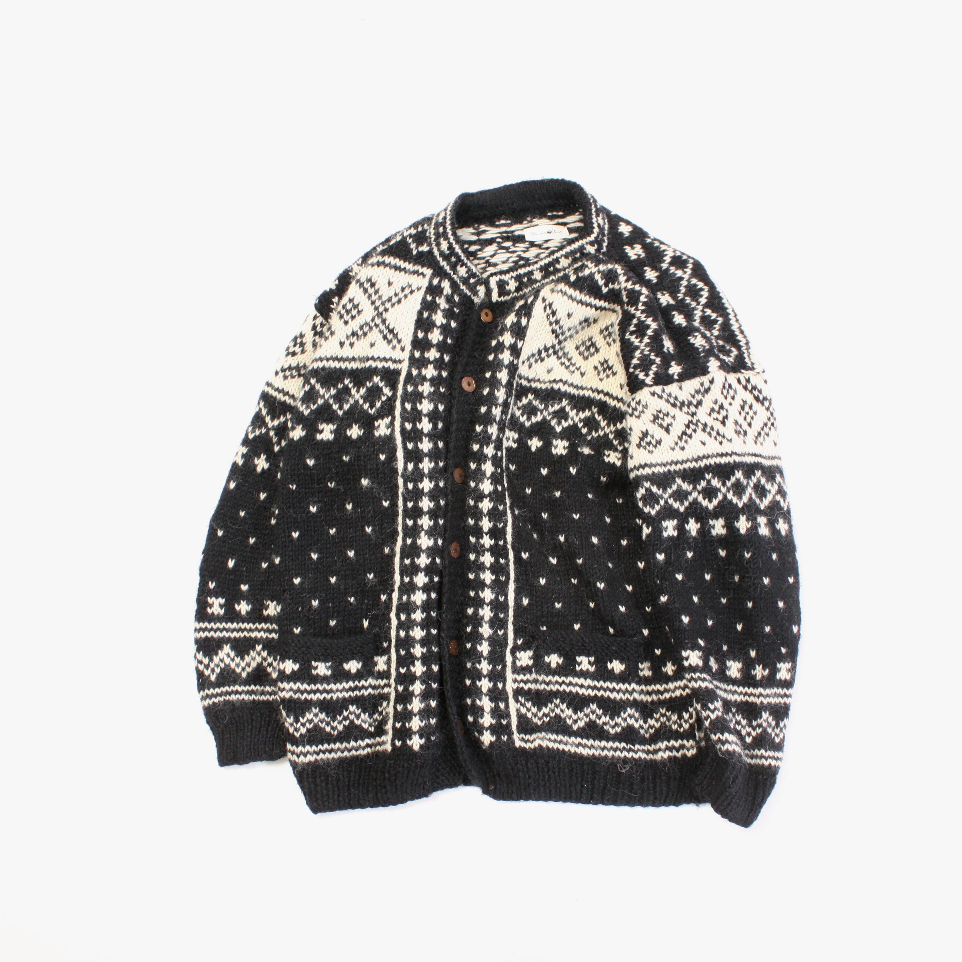 0658. Vintage nordic knit jacket black × white ノルディック フェアアイル フォークロア ニット 黒 白 ヴィンテージ ユーロ古着 ヨーロッパ古着 古着