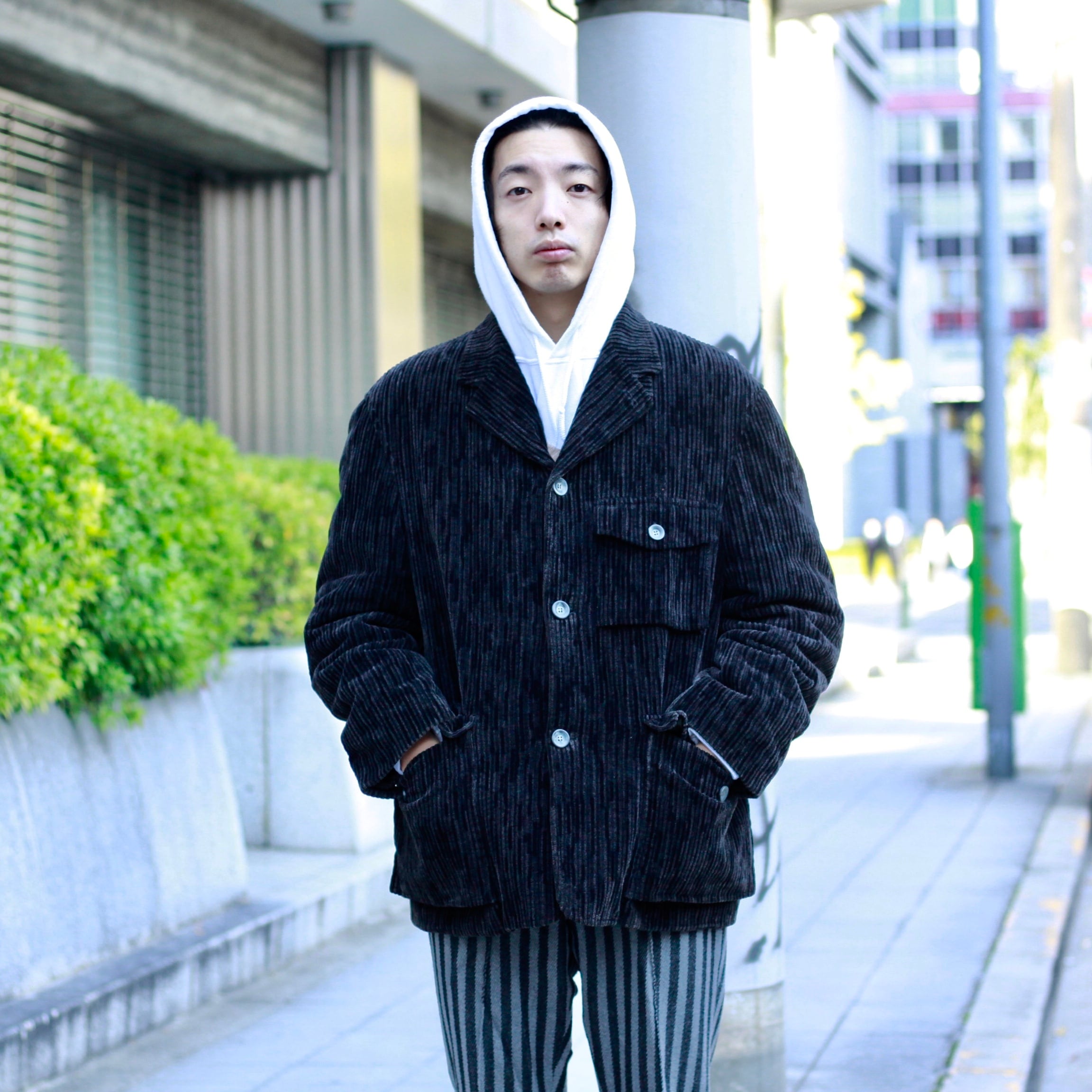 0659. 1990's Black corduroy hunting jacket Made in Italy 90s 90年代 ハンティング キルティング コーデュロイ 太畝 黒 イタリア製 vintage ヴィンテージ ユーロ古着 ヨーロッパ古着