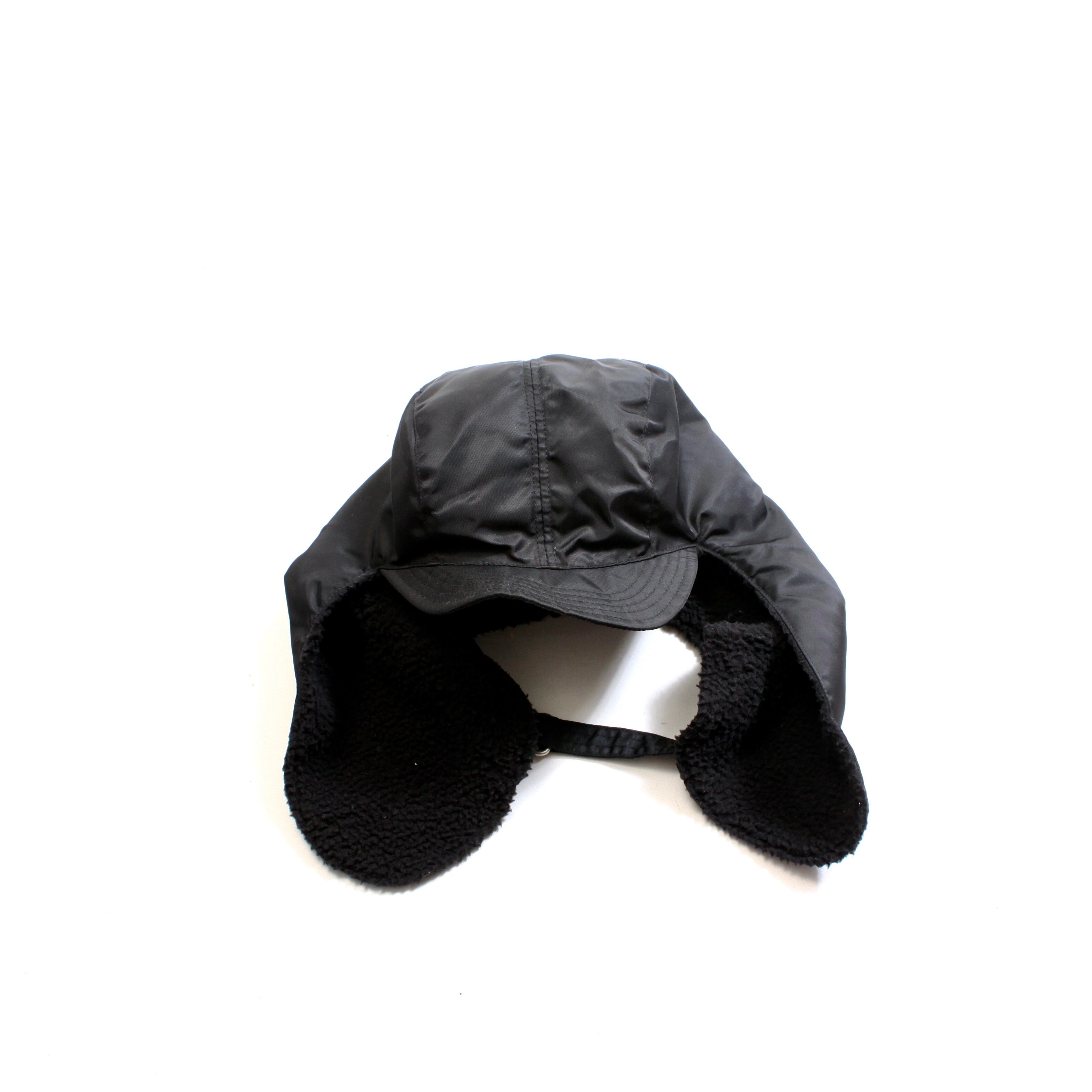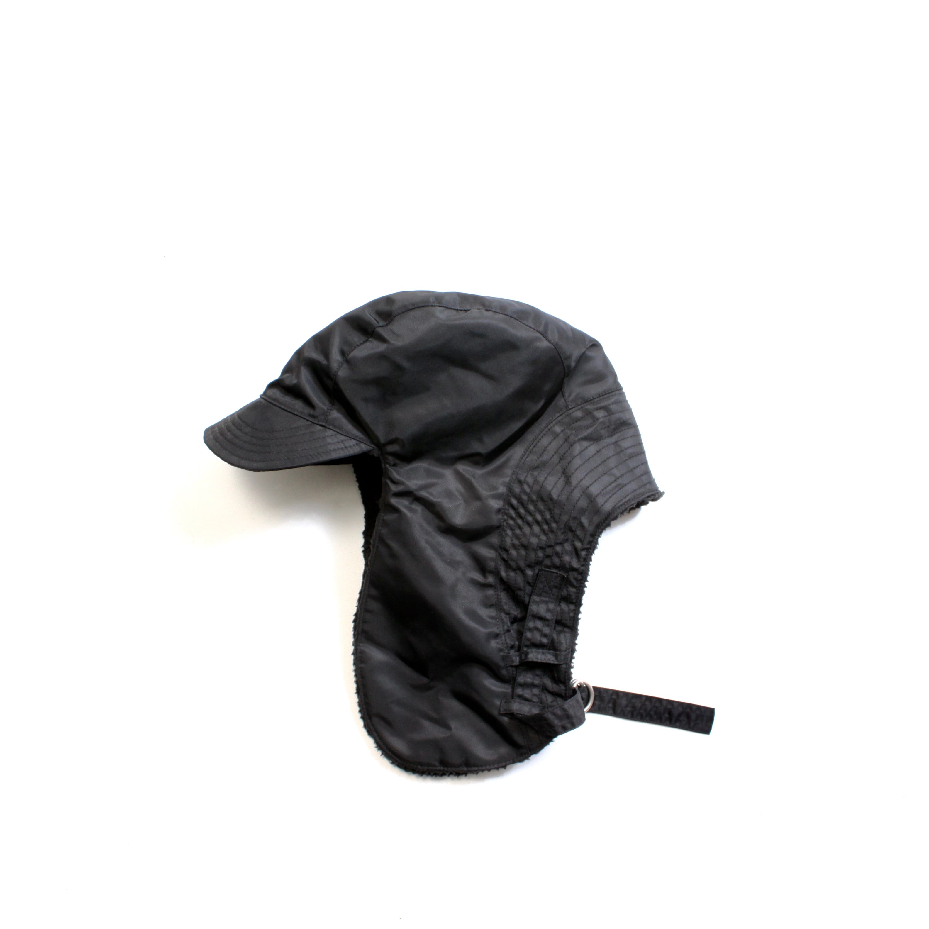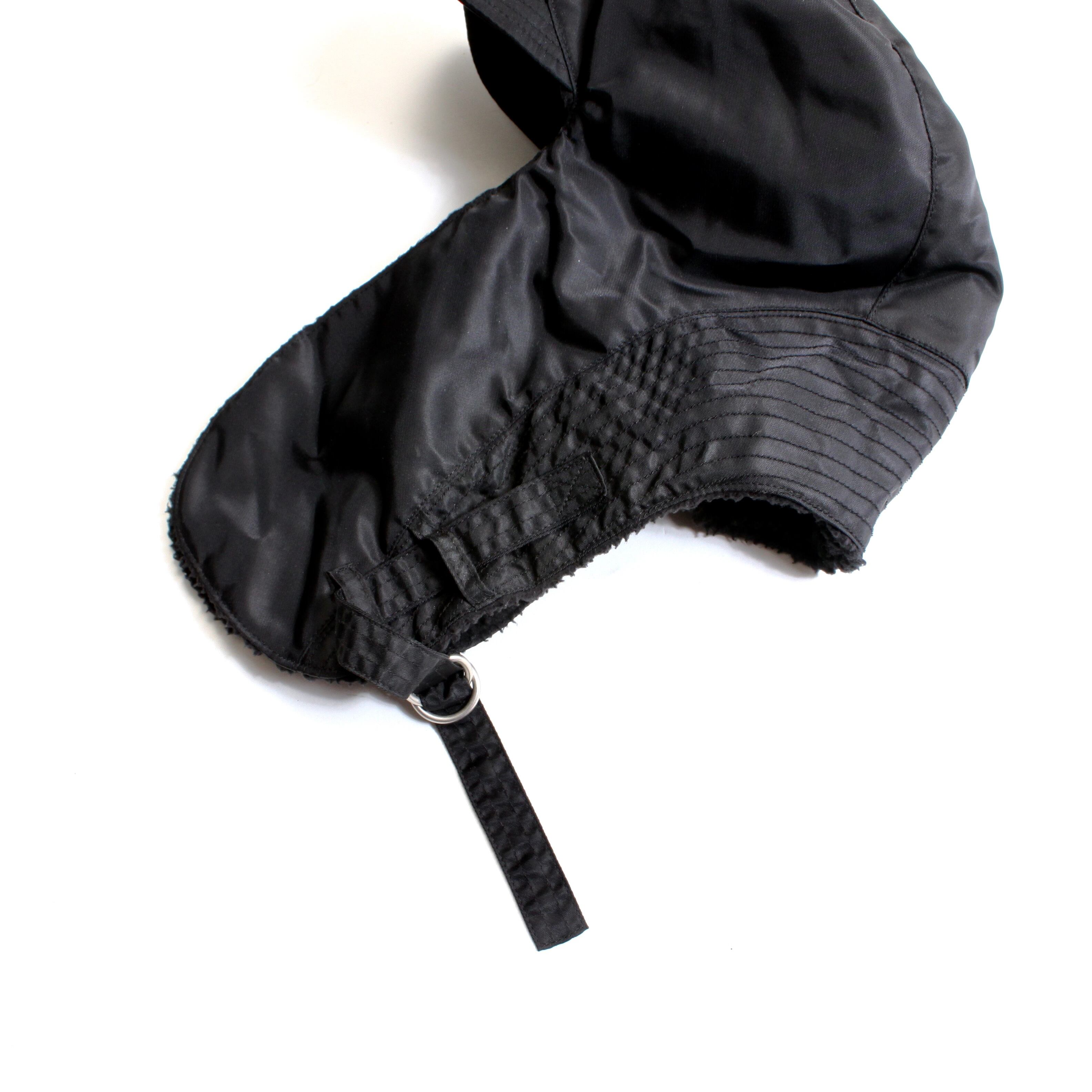 0670. Black nylon flight cap with boa fleece lining フライトキャップ ボンバーキャップ ドッグイヤー 黒 vintage ヴィンテージ ユーロ古着 ヨーロッパ古着 古着
