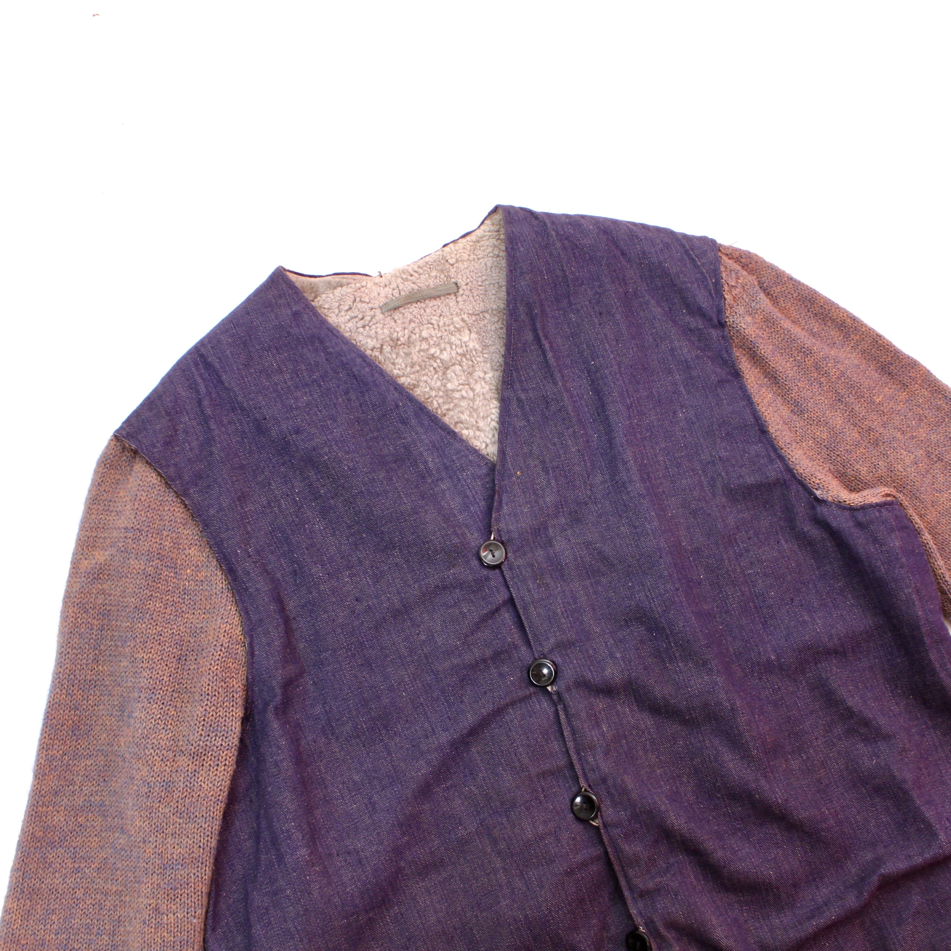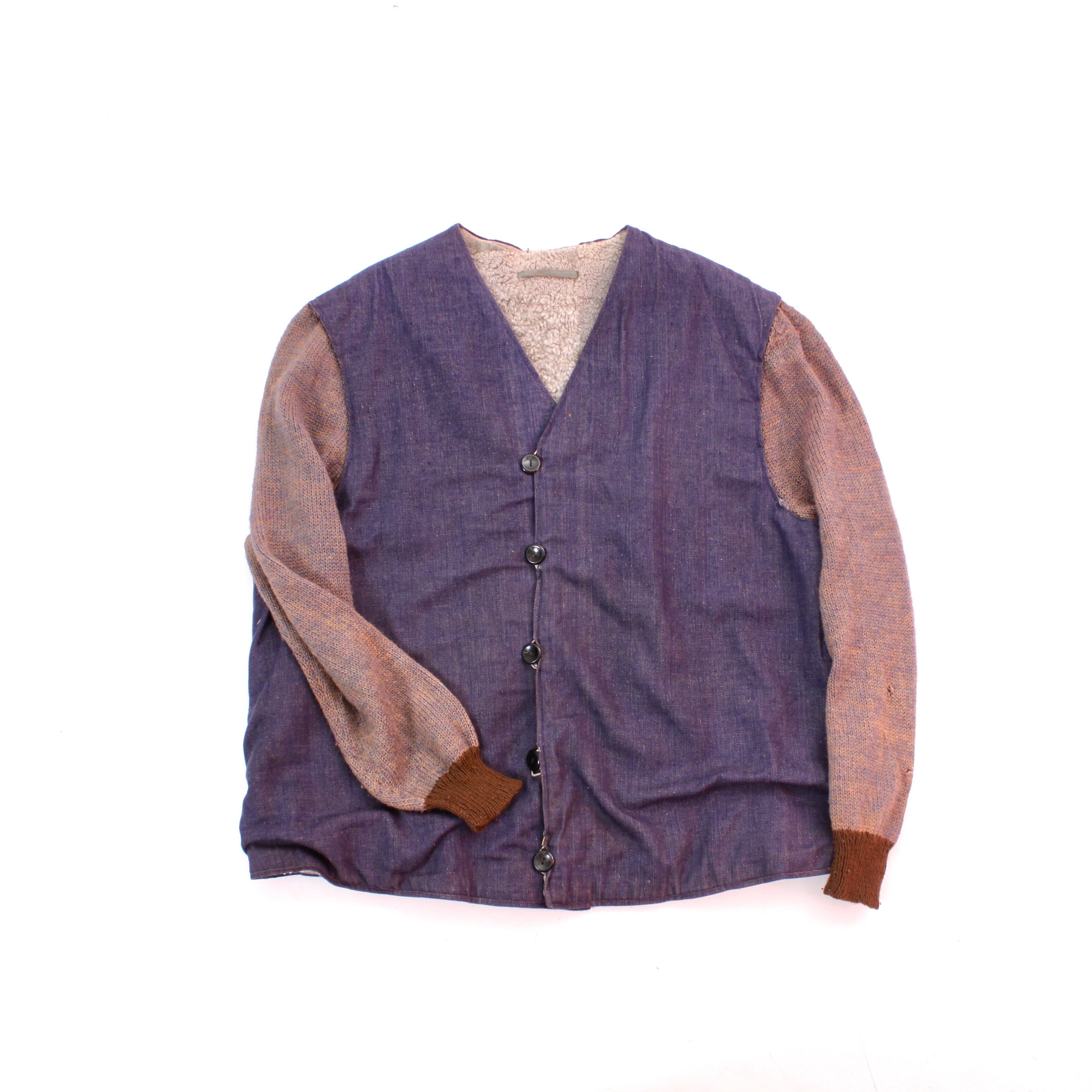 0694. Euro handmade docking jacket denim × knit sweater ハンドメイド ドッキング デニム ニット ユーロワーク ヴィンテージ ユーロ古着 ヨーロッパ古着 古着