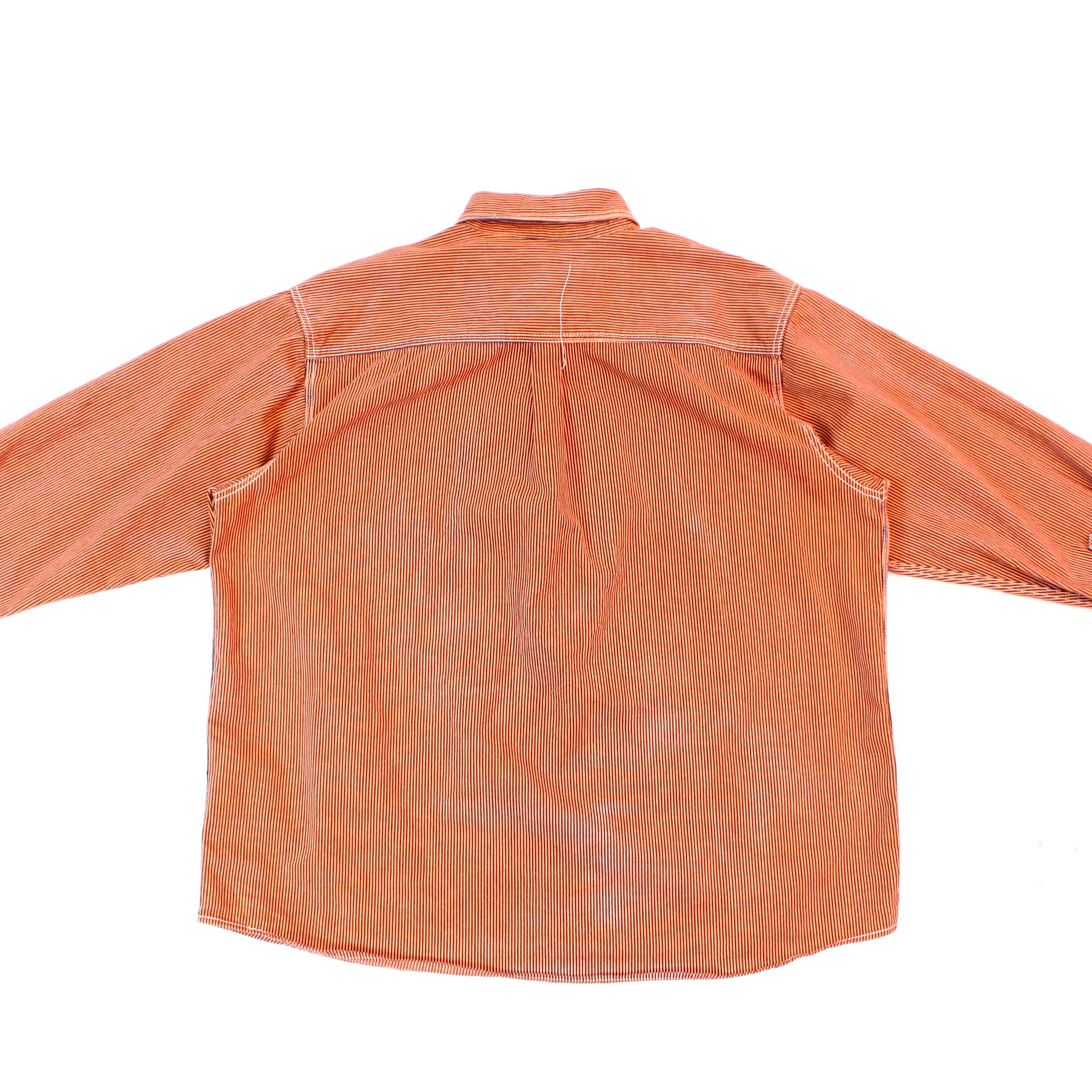 0696. key work shirt オレンジ ヒッコリーストライプ ハーフジップ チンストラップ ワークシャツ 古着 vintage
