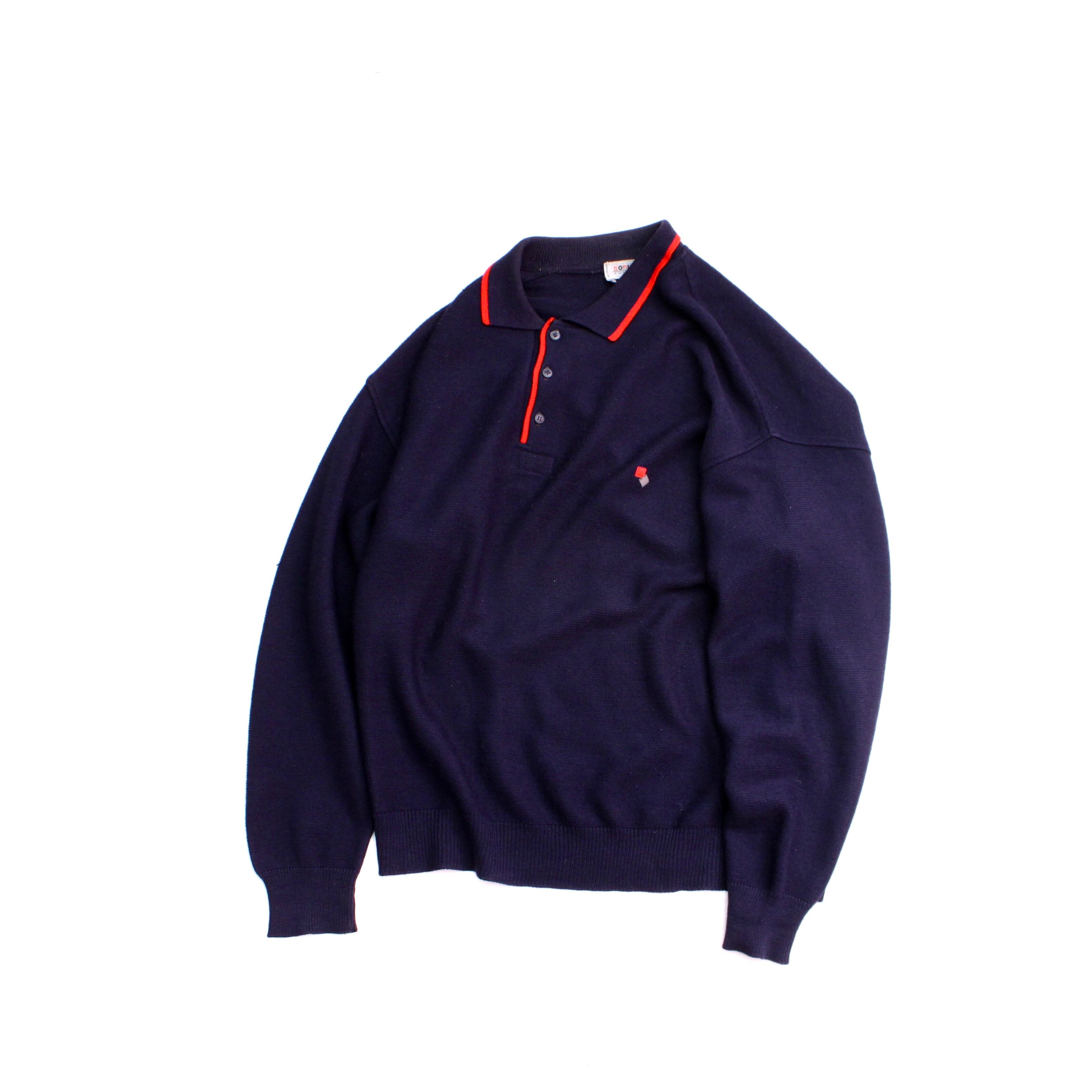 0699. 1970's L/S Knit polo Made in FRANCE 70s 70年代 ニットポロ フランス製 vintage ヴィンテージ ユーロ古着 ヨーロッパ古着 古着