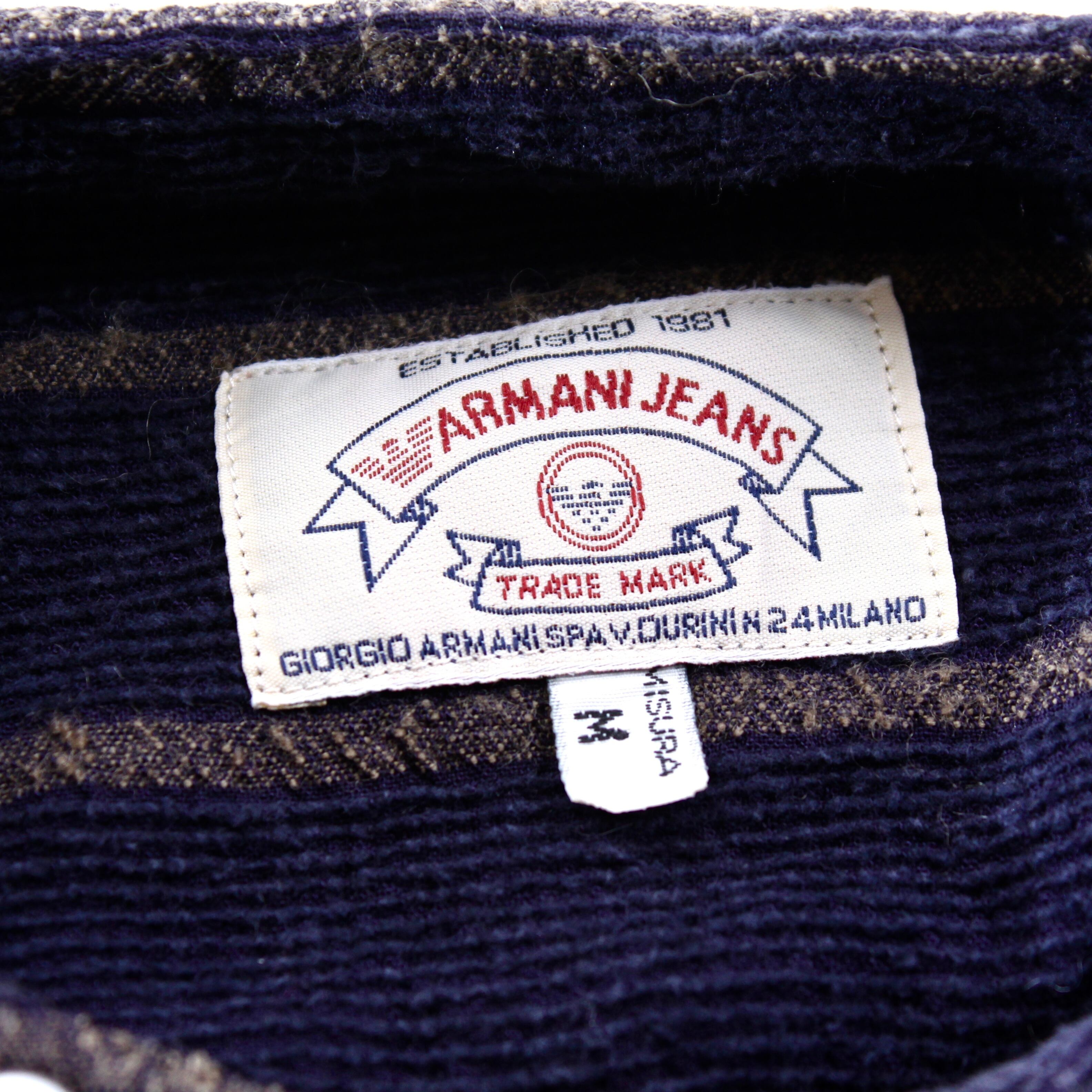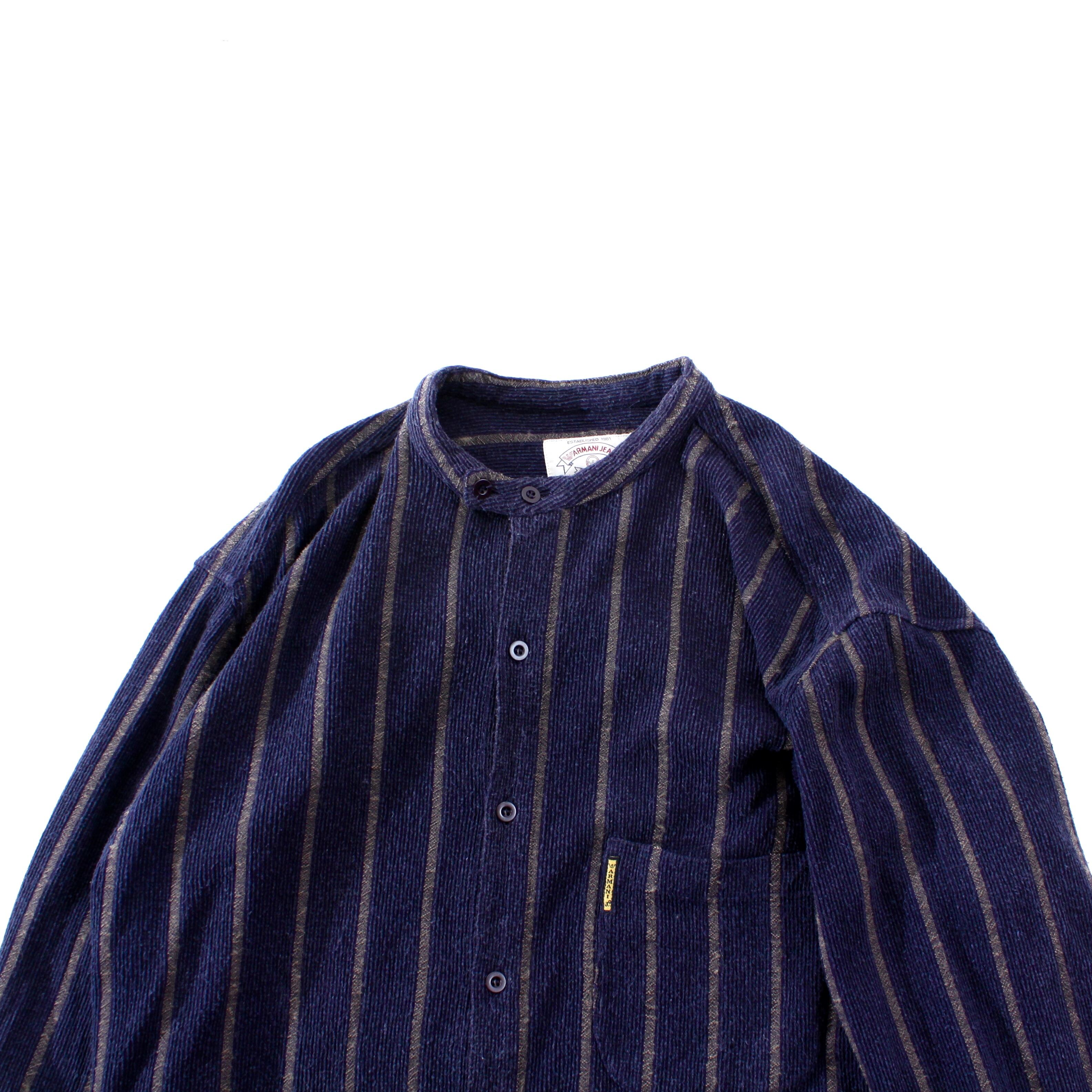 0717. 1980's armani jeans shirt made in Italy ネイビー パイル ストライプ 長袖シャツ チンスト バンドカラー アルマーニジーンズ イタリア製 80s 80年代 euro vintage ユーロ古着