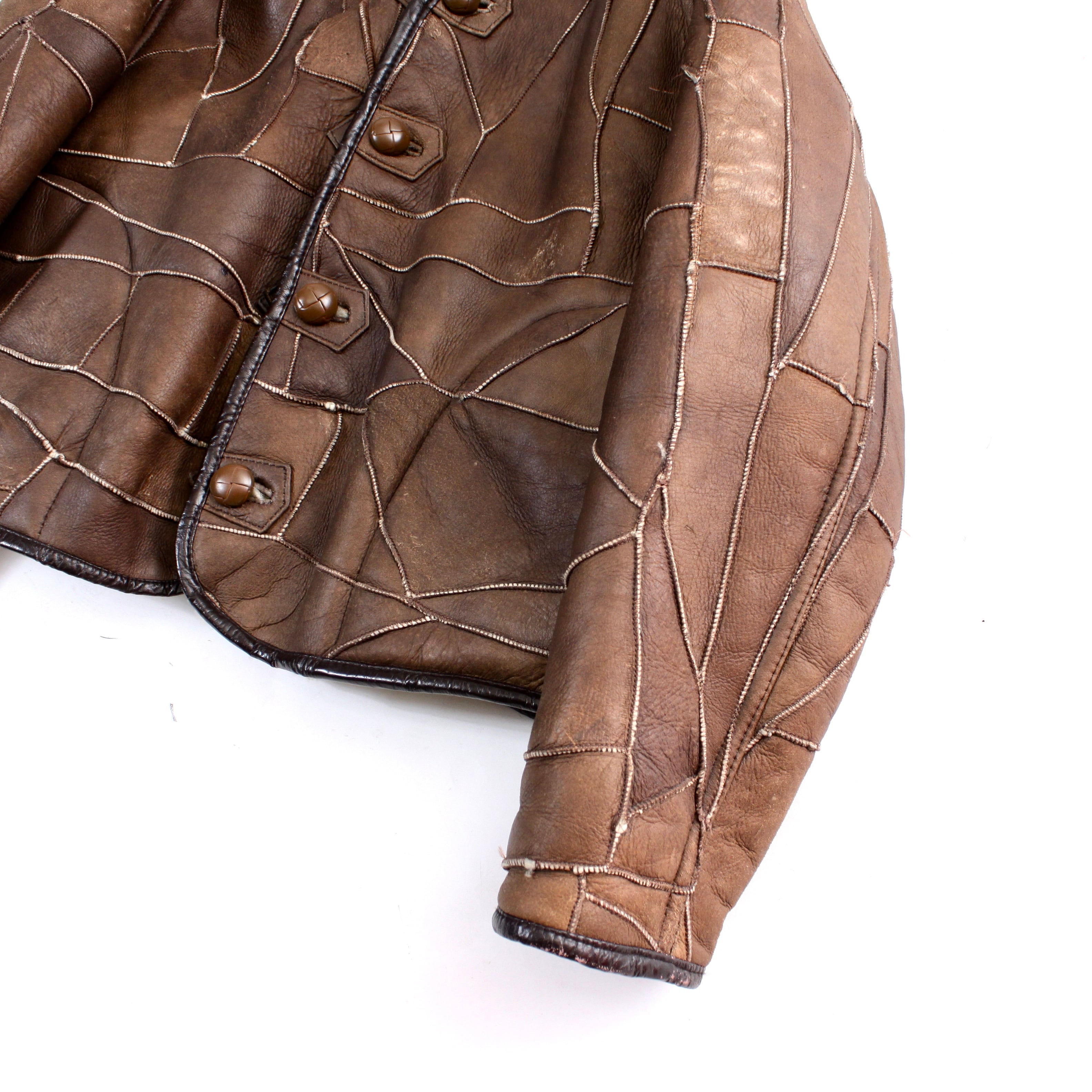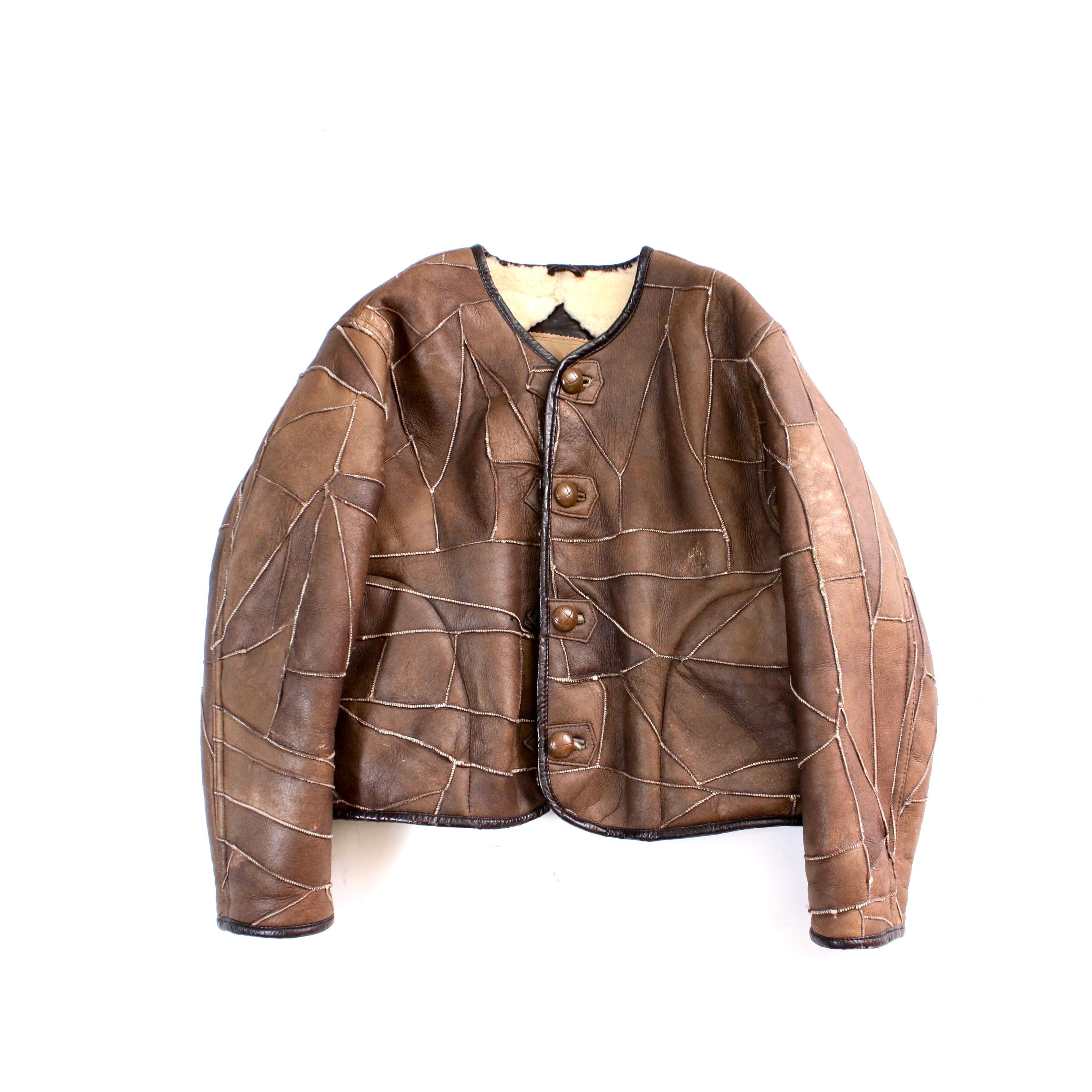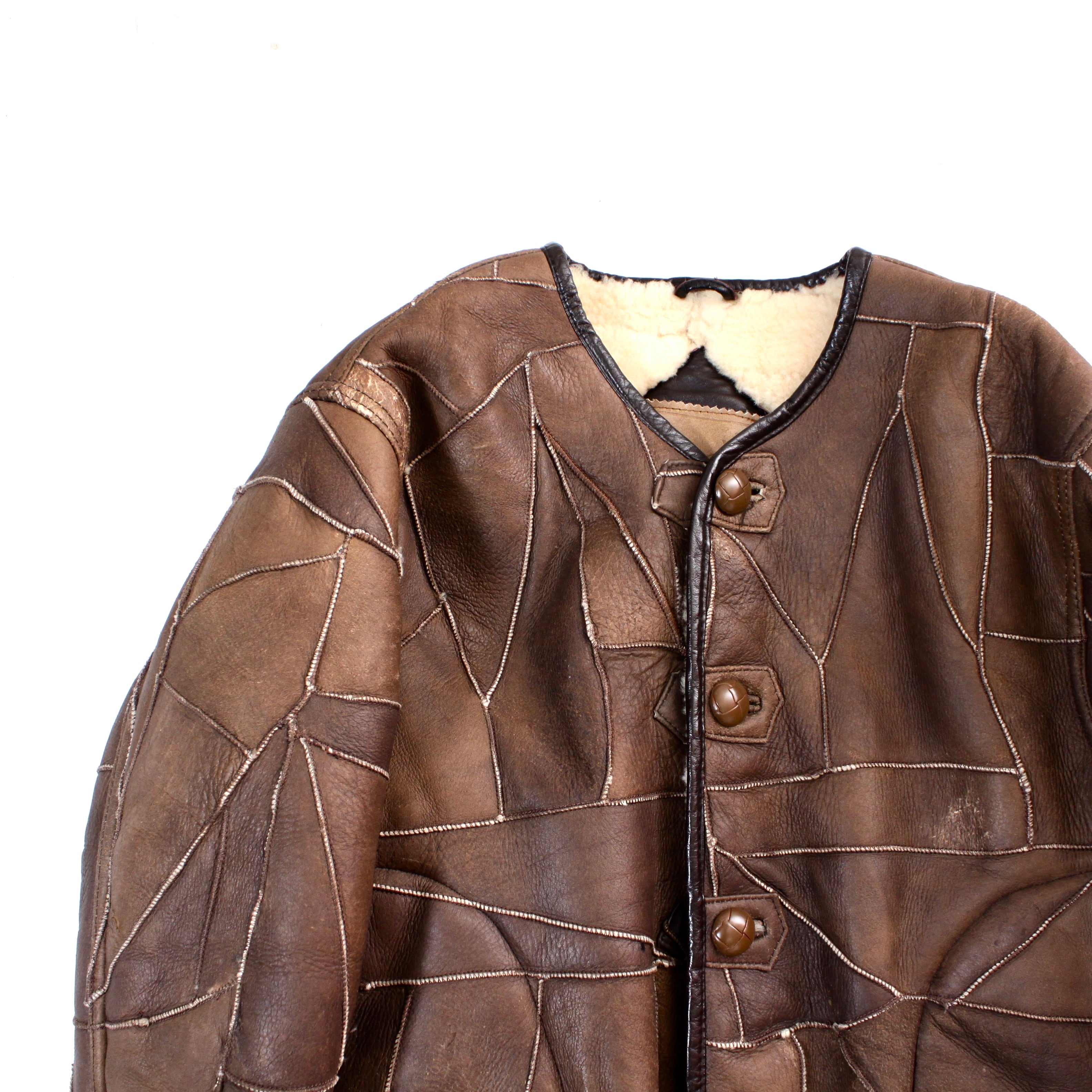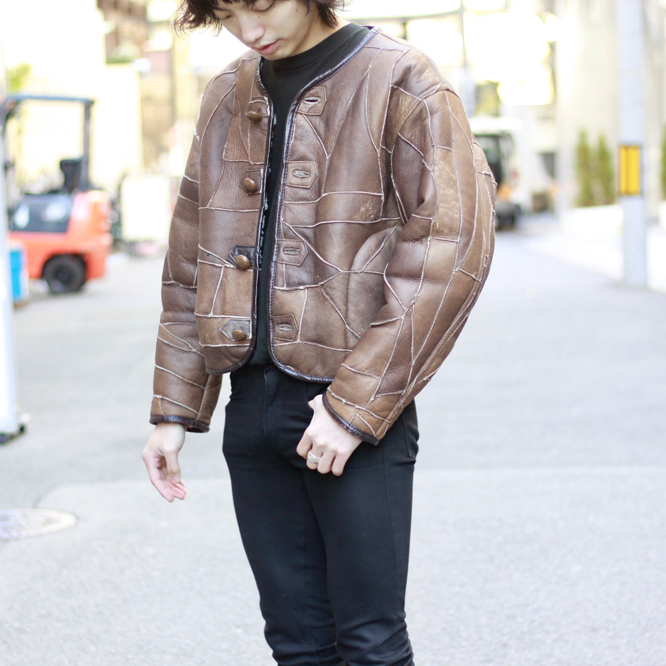 0746. 1980's issey miyake mouton jacket ダークブラウン パッチワーク ムートンジャケット HAI イッセイミヤケ 80s 80年代 vintage デザイナーズ アーカイブ 古着