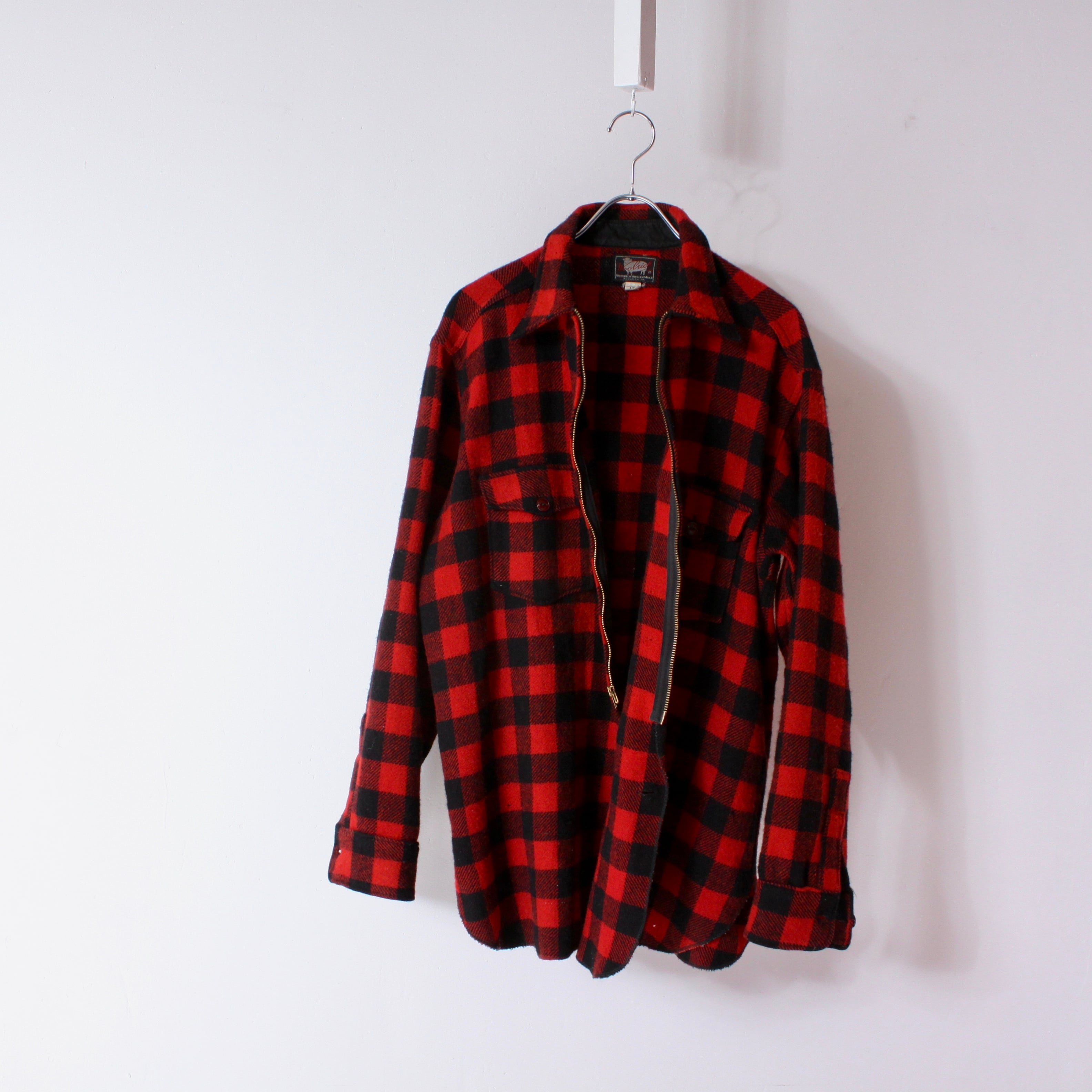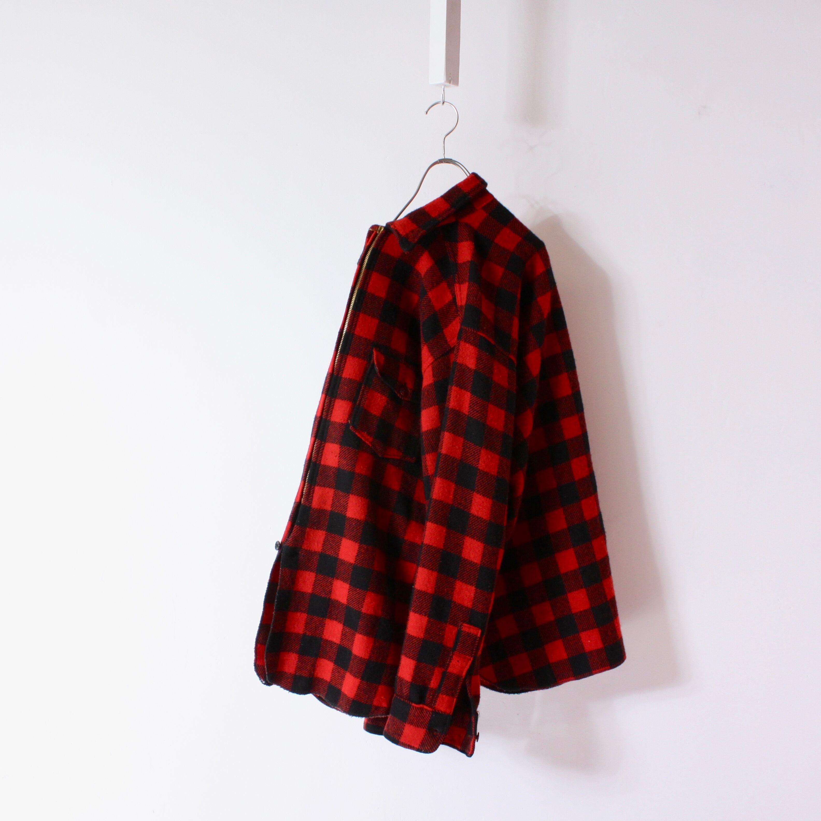 0758. 1950's Woolrich Buffalo check zipup shirt red × black 50s 50年代 ウールリッチ バッファローチェック ジップシャツ vintage ヴィンテージ us古着 古着