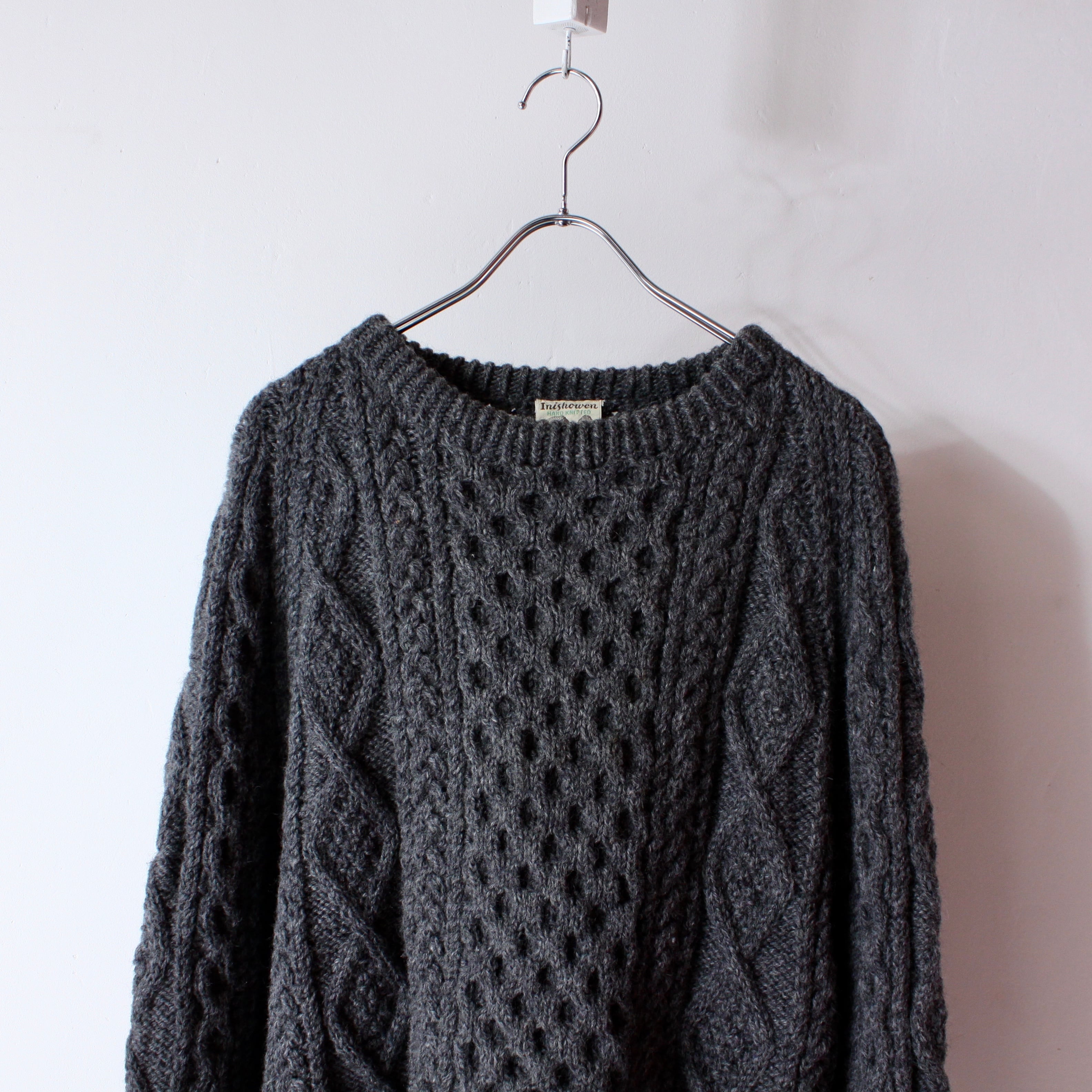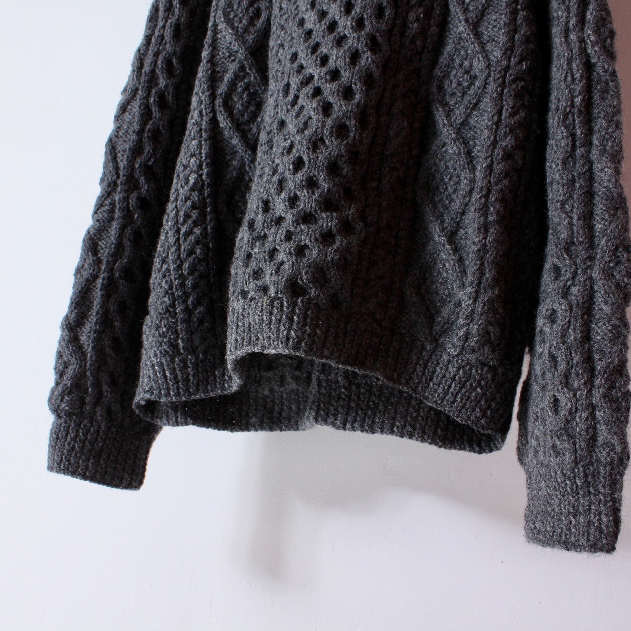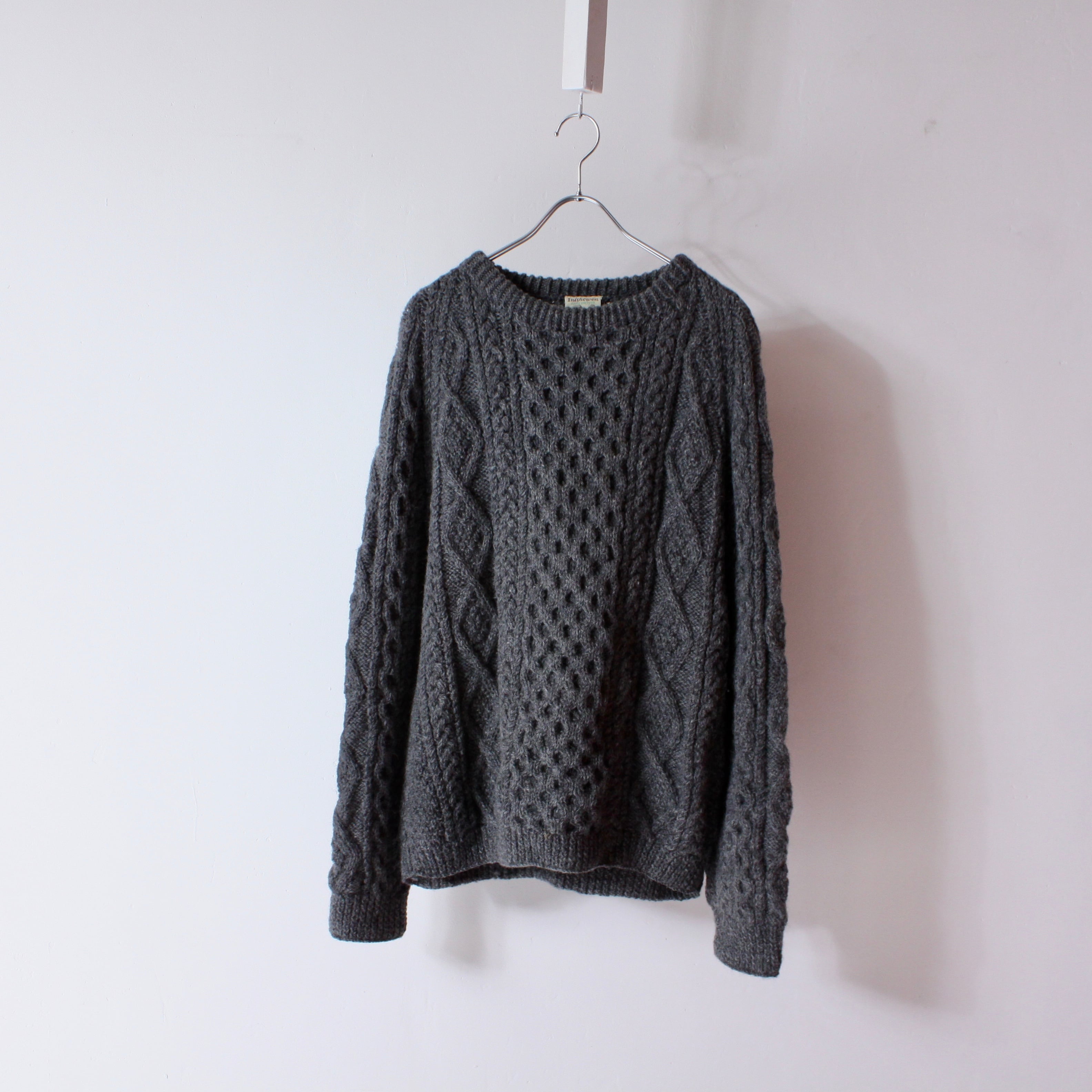 0764. Irish fisherman knit sweater グレー ハンドニット フィッシャーマンニット セーター アランニット アイルランド製 euro vintage ユーロ古着