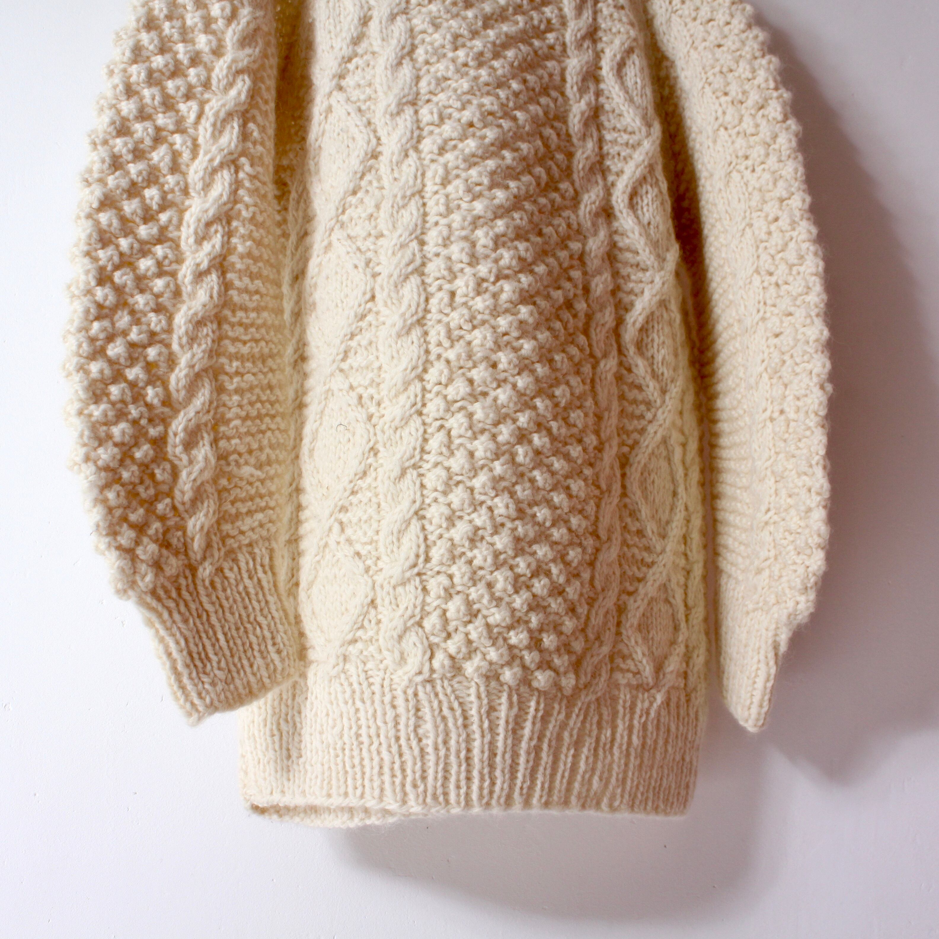 0765. 1980's fisherman knit sweater made in Greece ナチュラル アランニット フィッシャーマン セーター ハンドニット ギリシャ製 80s 80年代 euro vintage ユーロ古着