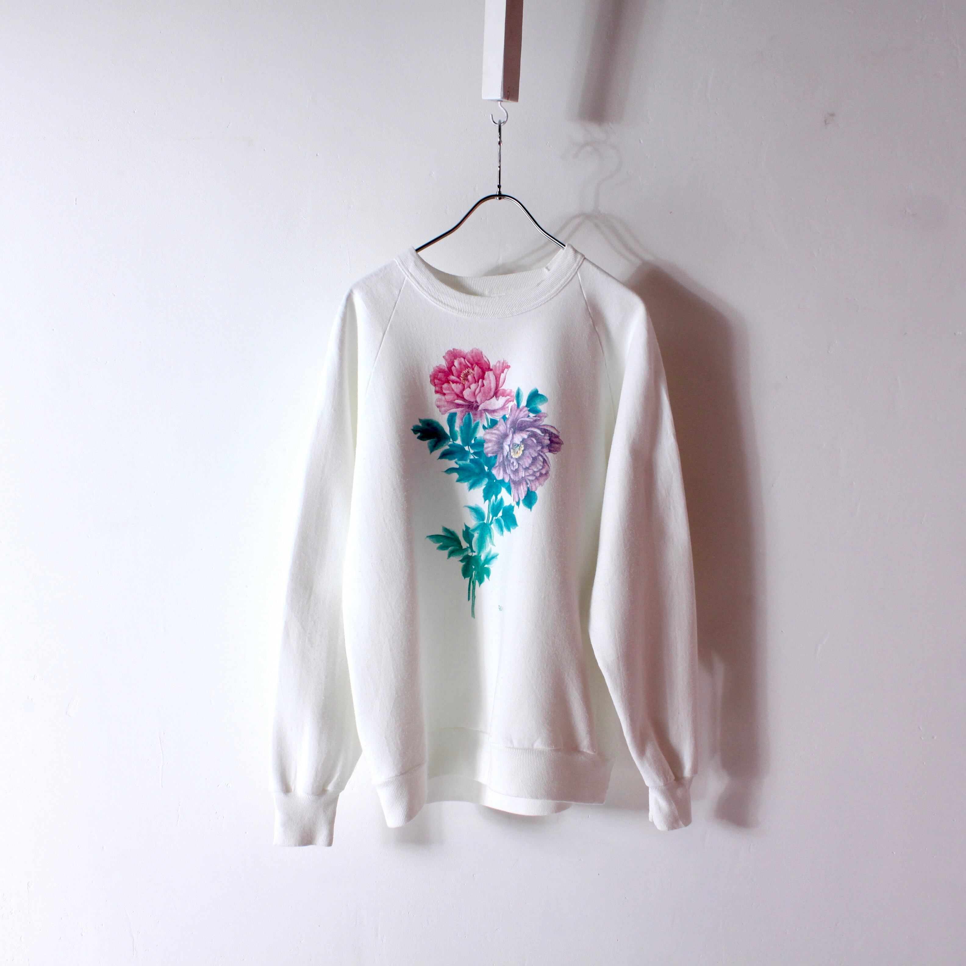 0759. 1990's flower print sweat ホワイト 花 フラワープリント スウェット 90s 90年代 vintage 古着