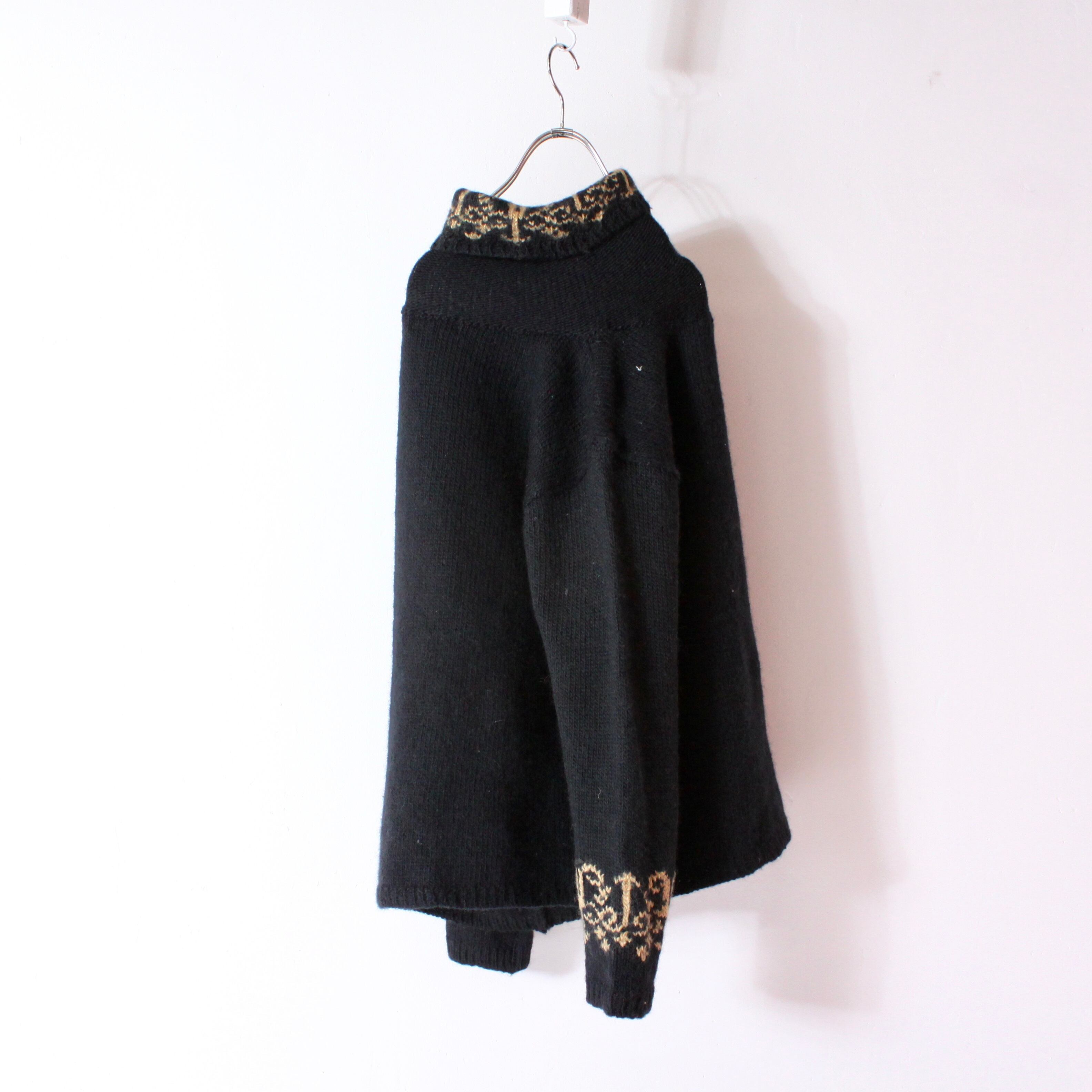 0769. black Nordic turtleneck knit sweater ブラック ノルディック柄 タートルネックニット セーター ユーロ古着 euro vintage