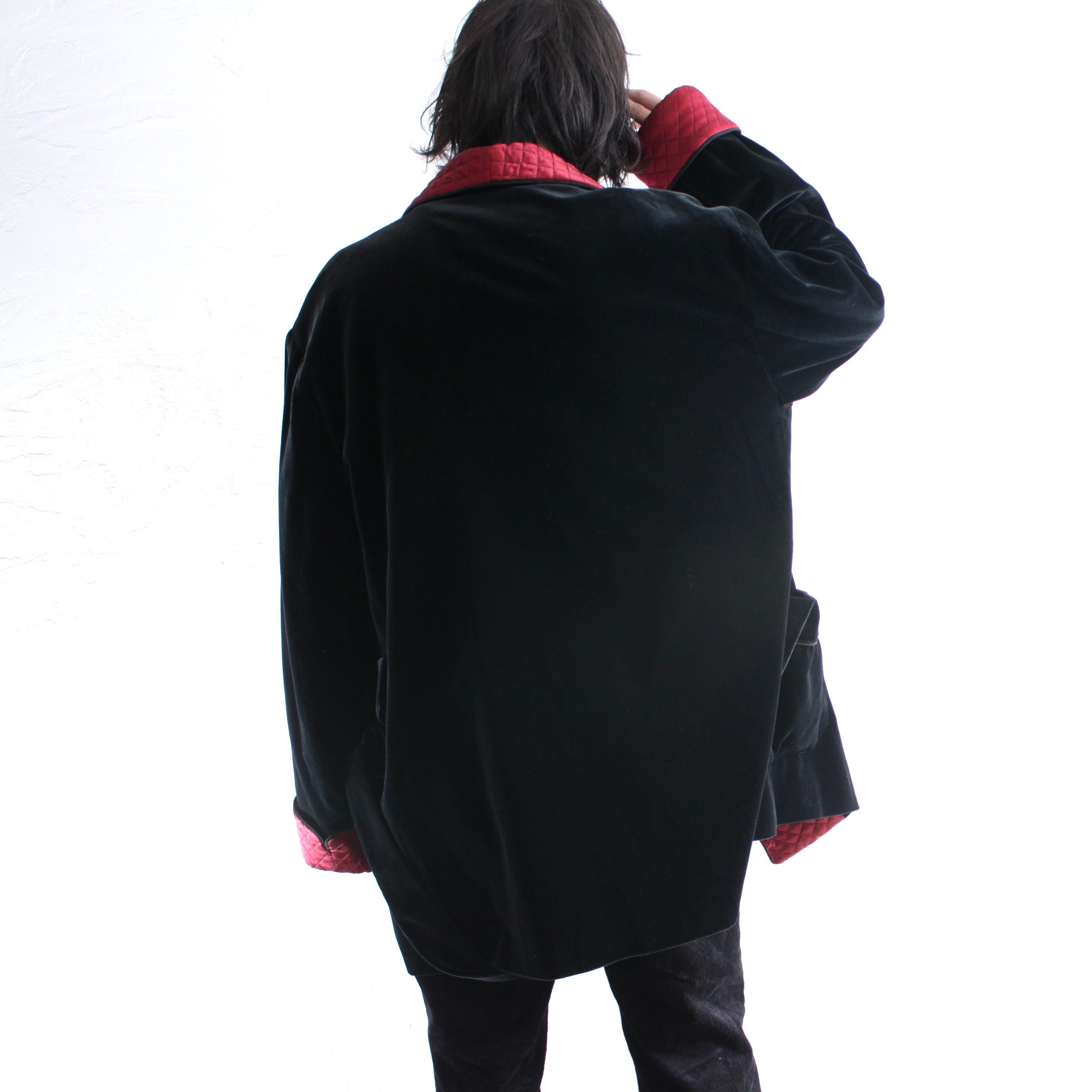 0773. NOS Velours smoking jacket made in Italy ブラック × マルーン スモーキングジャケット ナイトガウン コート イタリア製 euro vintage 古着