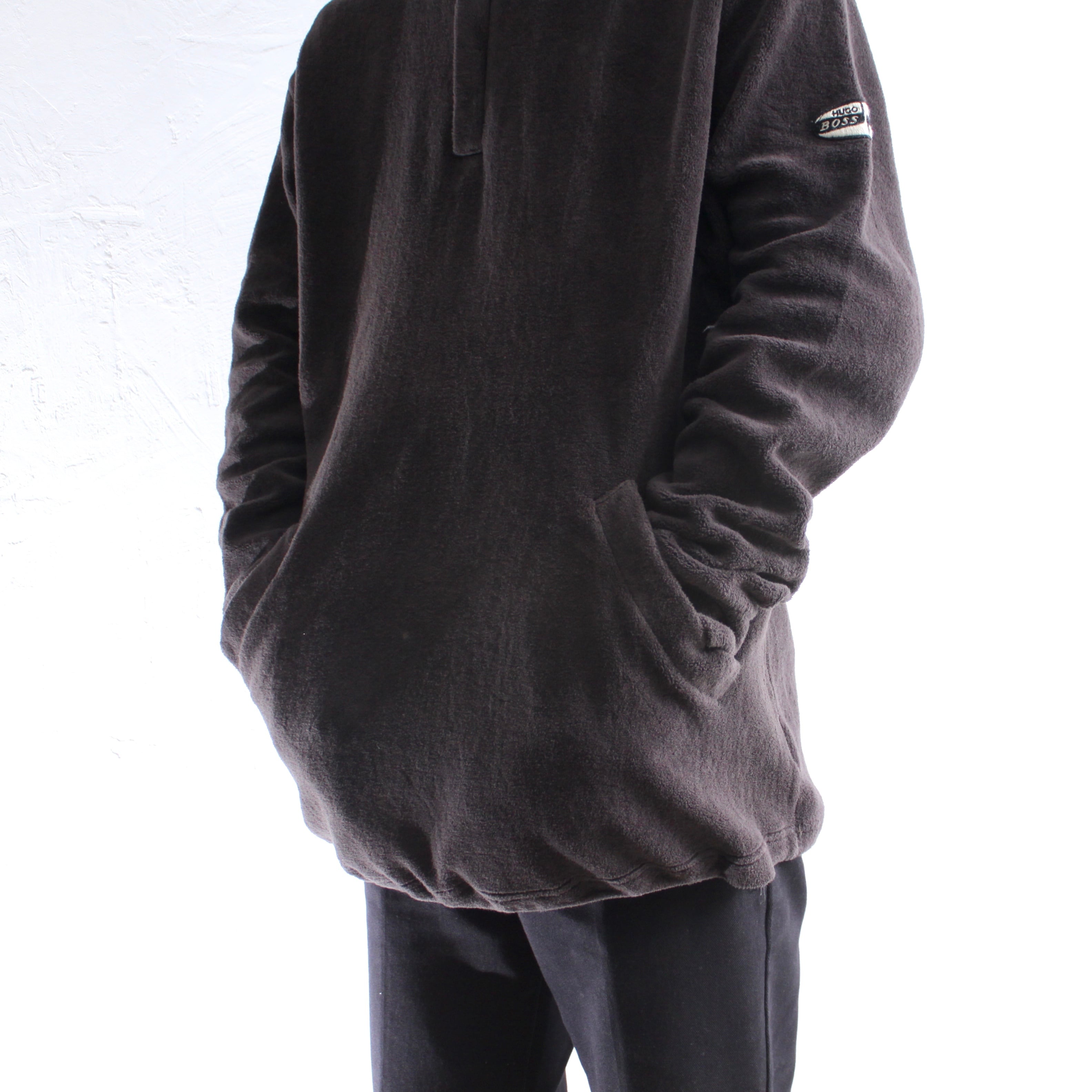 0771. 1990's Hugo Boss Fleece pullover made in Italy チャコールグレー フリースプルオーバー ハーフジップ ジャケット イタリア製 90s 90年代 euro vintage ユーロ古着