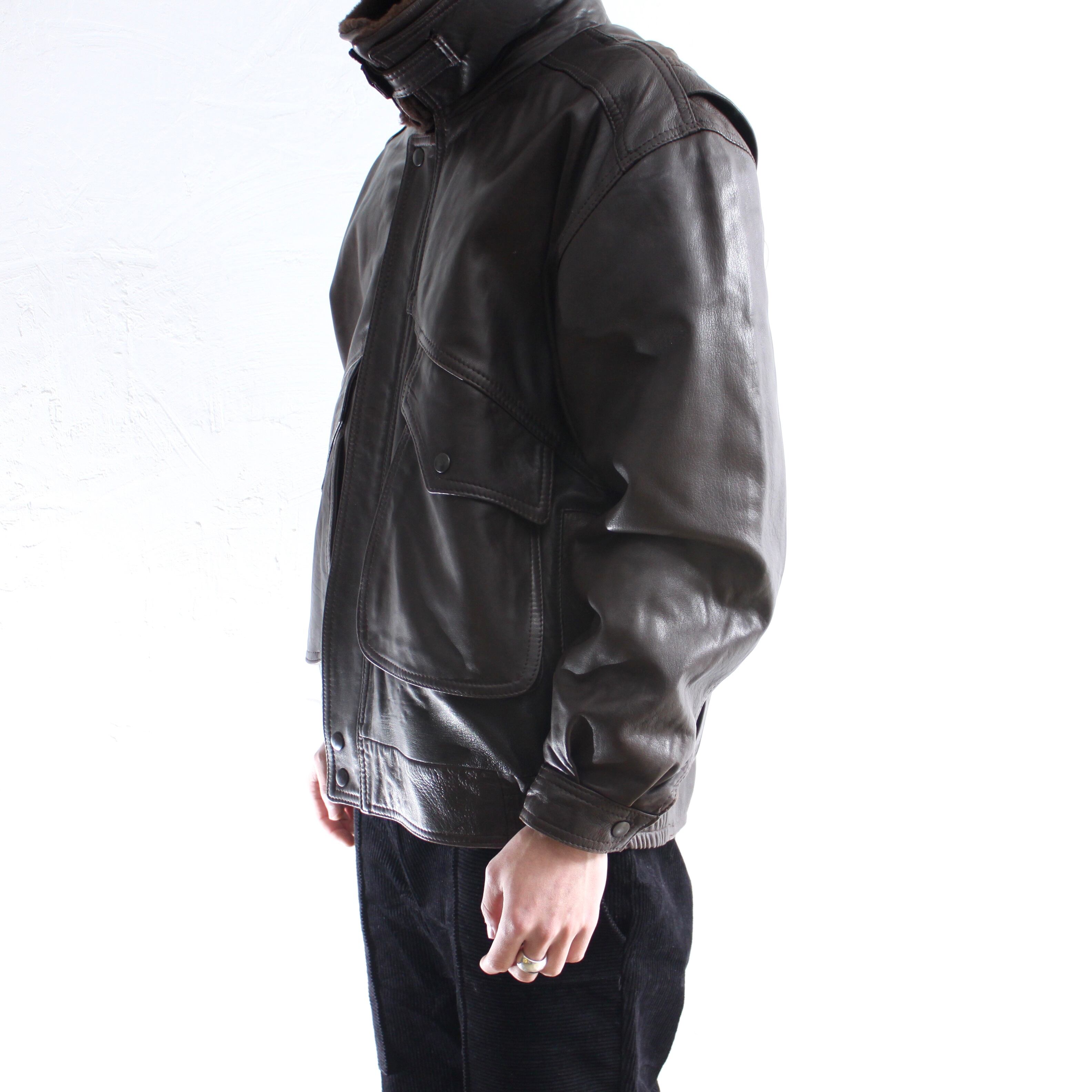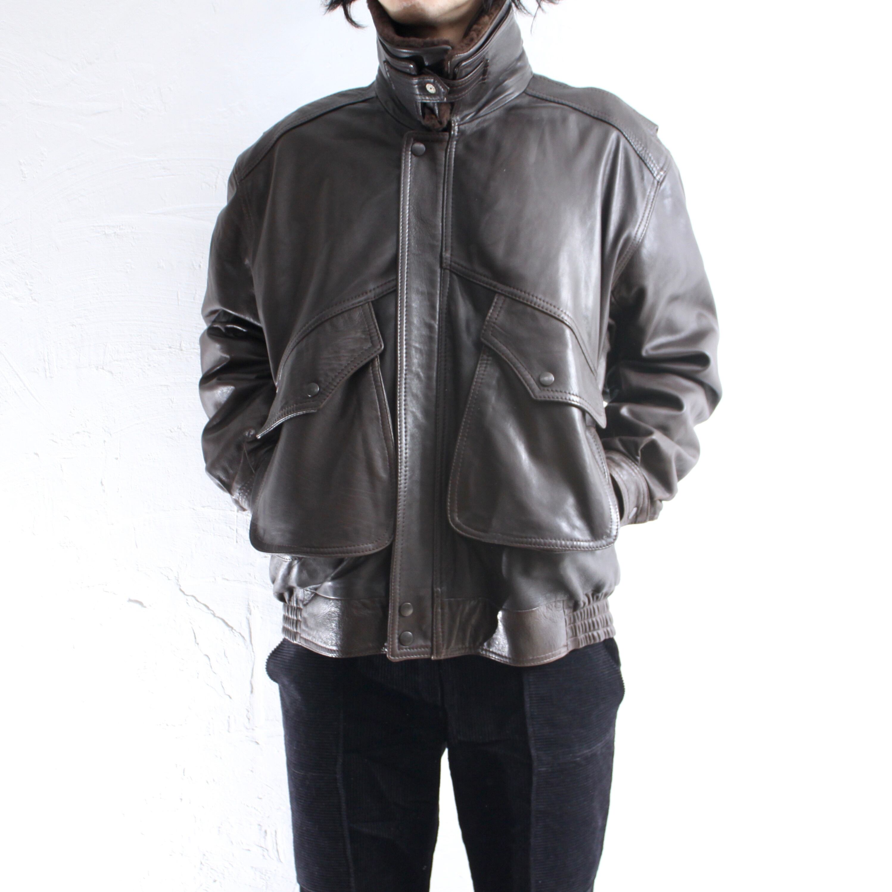 0775. 1980's Lamb leather jacket made in England ブラウン フライトジャケット リアルレザー ボア ブルゾン G-1 羊革 イングランド製 80s 80年代 euro vintage ユーロ古着