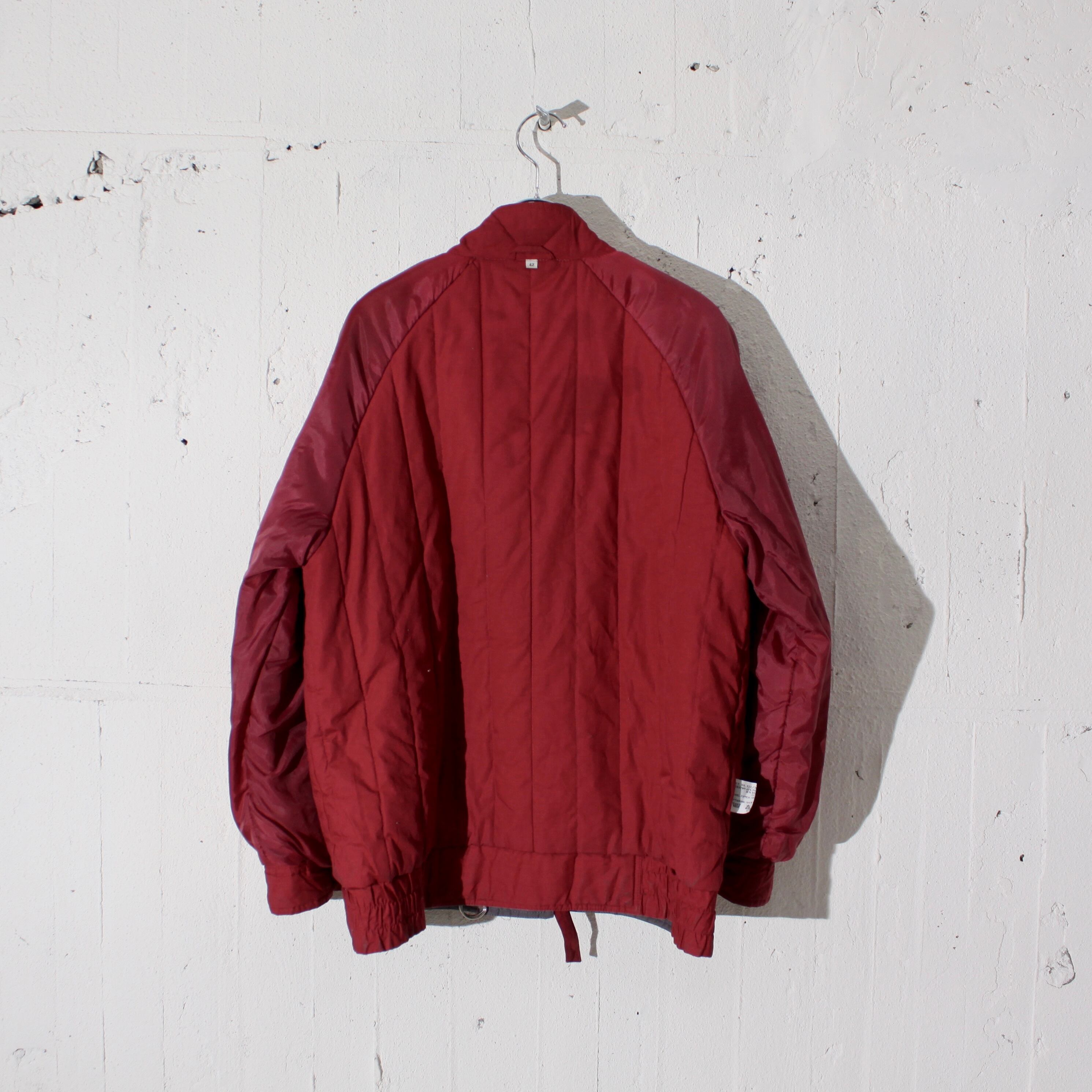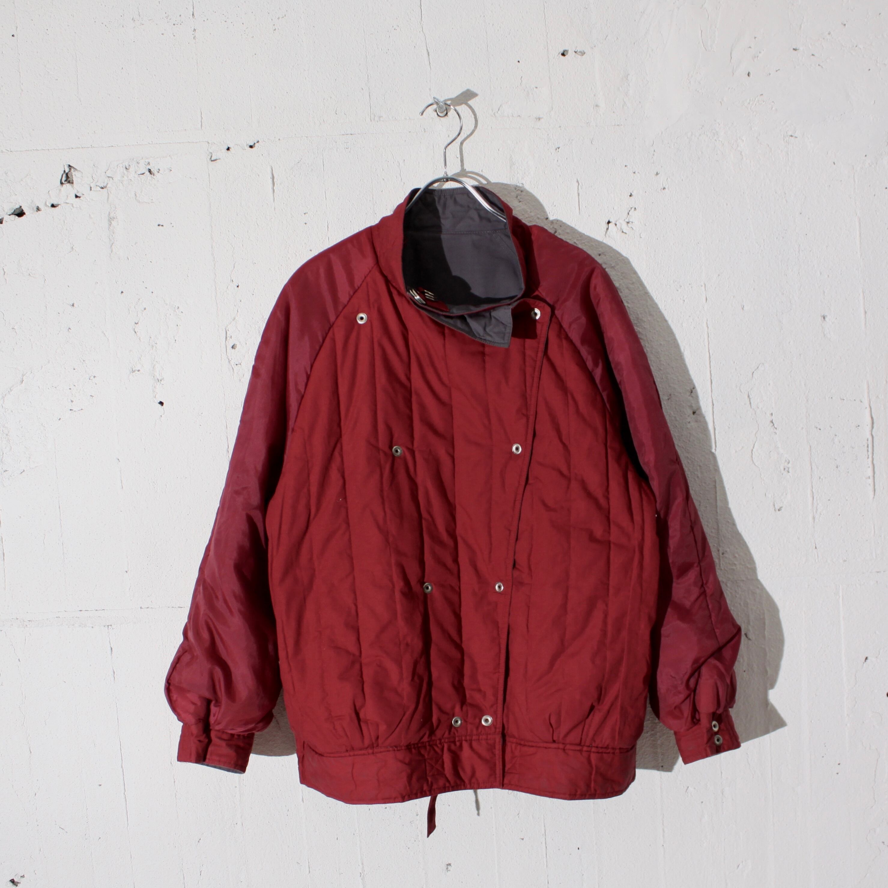 0802. euro padding riders jacket ブルーグレー × マルーン 中綿アウター ジャケット ダブル エルボーパッチ ユーロ古着
