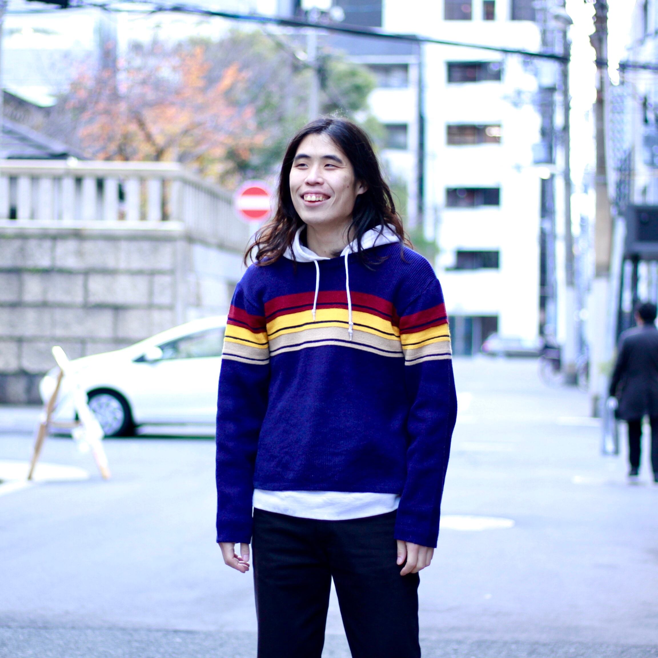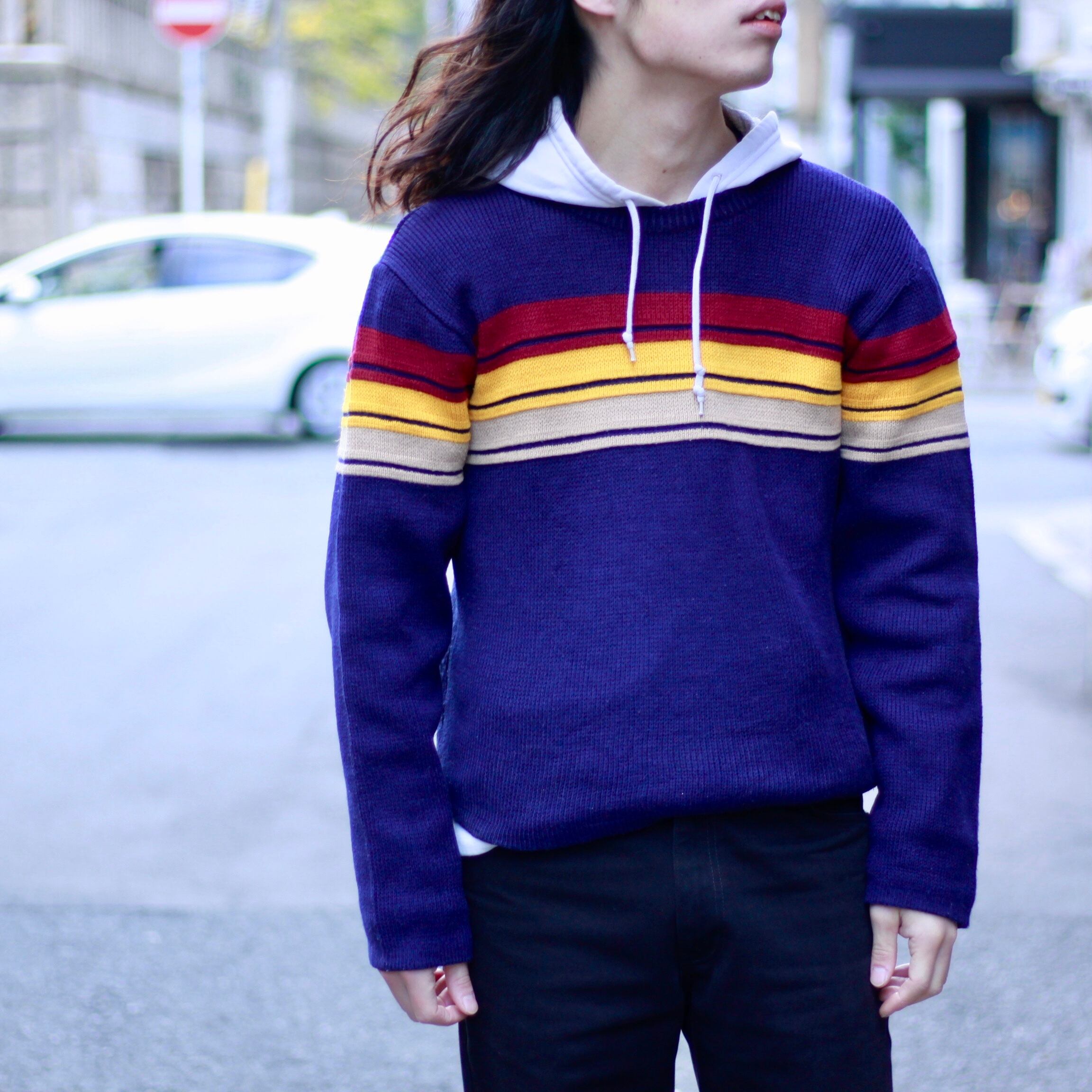 0840. 1970's acrylic knit sweater ネイビー ボーダー アクリルニット セーター モンゴメリーワード 70s 70年代 vintage 古着