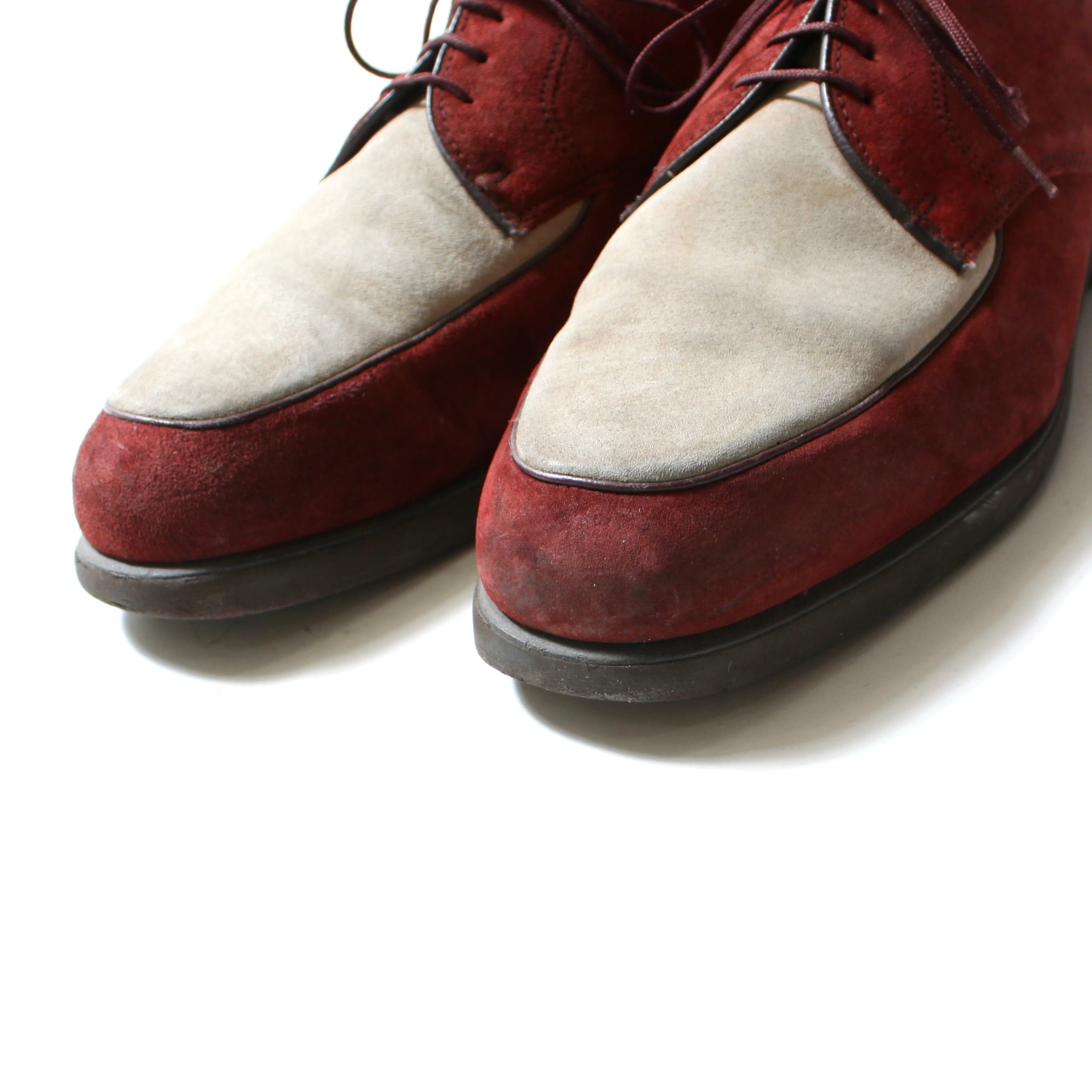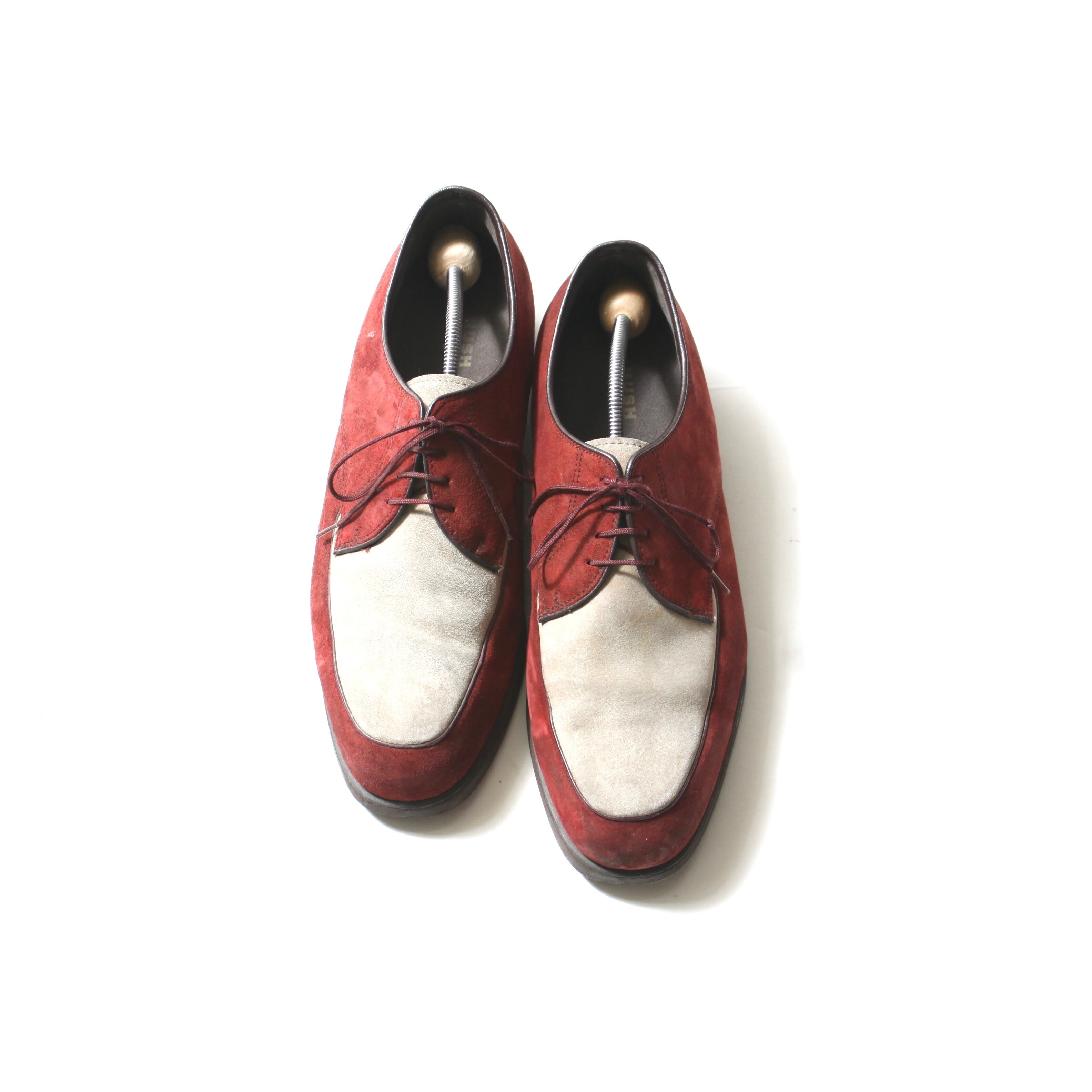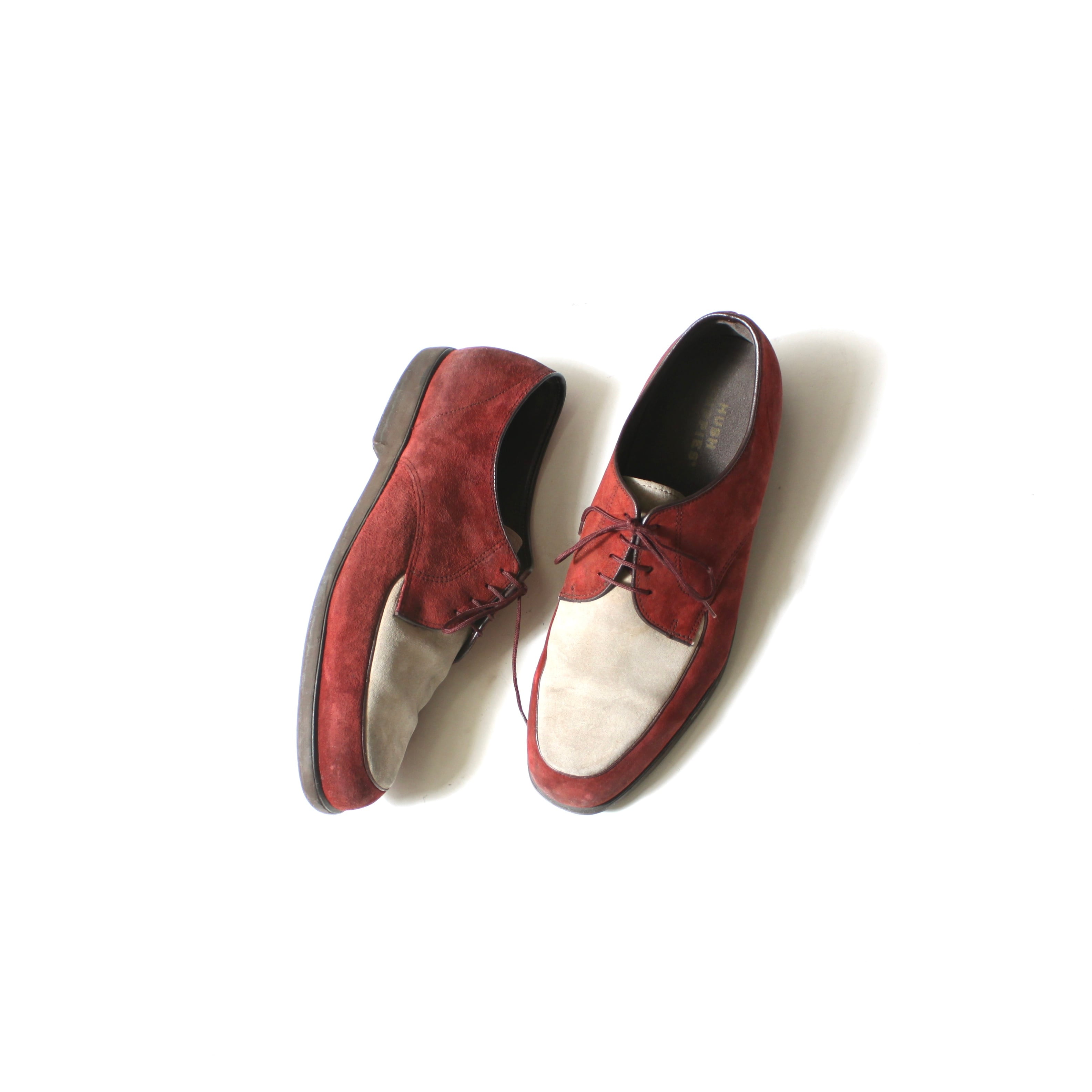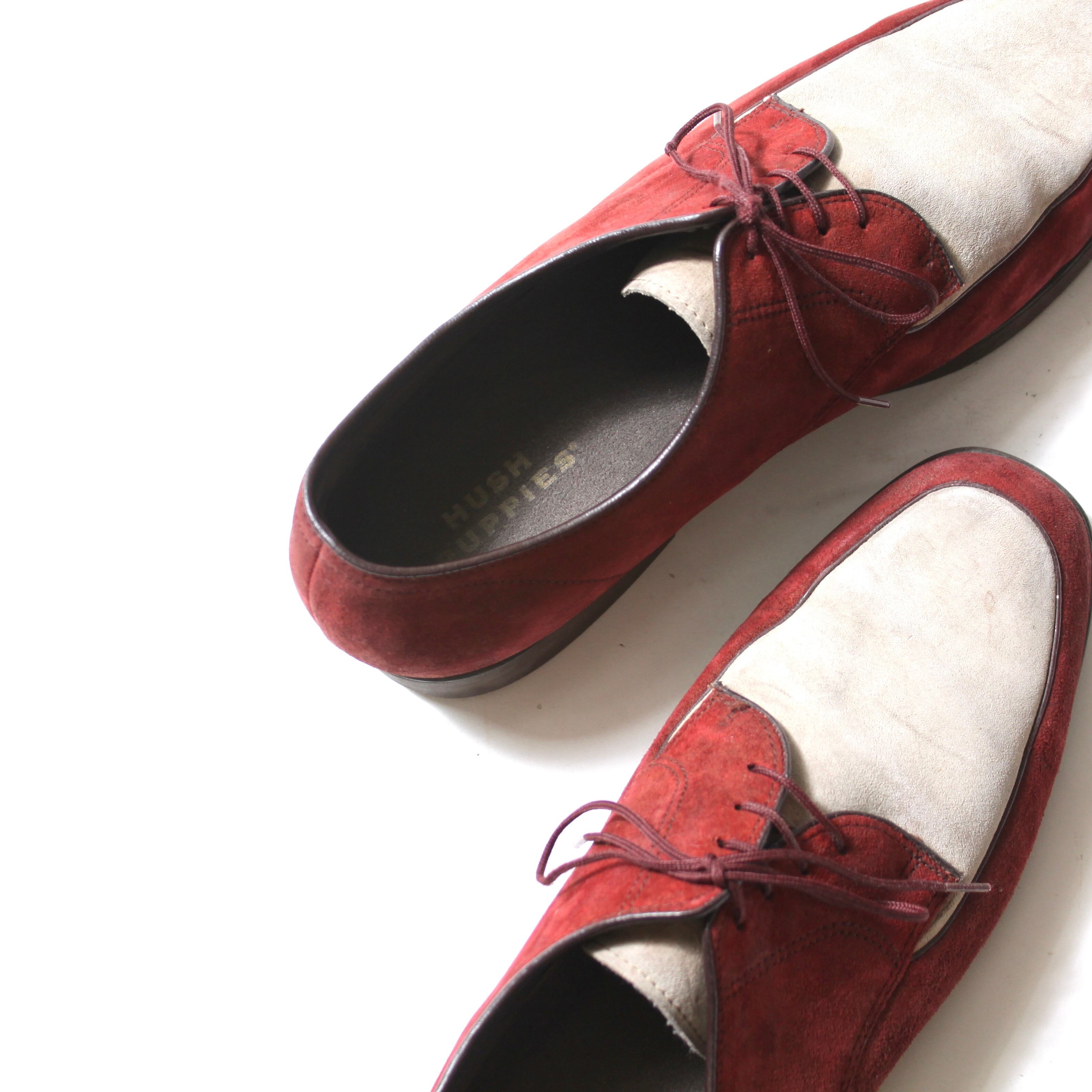 0839. 1990's hush puppies 2 tone shoes レッド × ベージュ 2トーン スエード レザーシューズ モカシン 革靴 ハッシュパピー 90s 90年代 vintage 古着