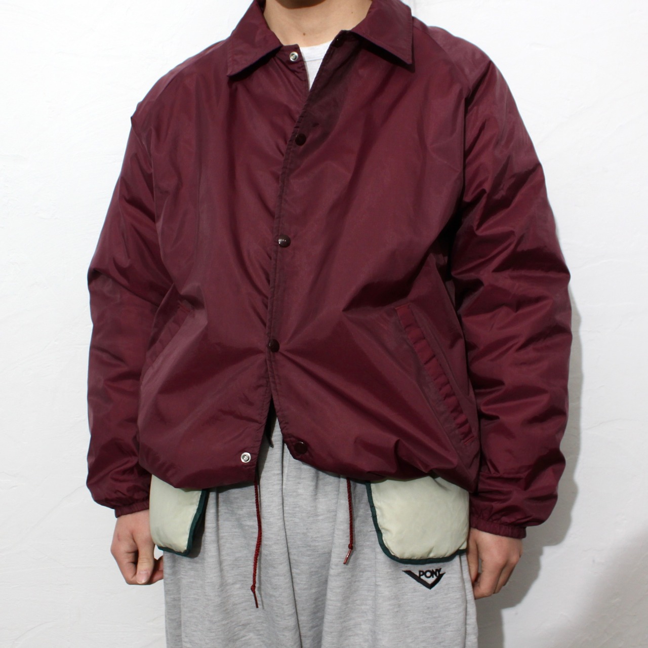 0853. 1990's down coach jacket マルーン × グリーン ナイロン コーチジャケット グースダウン アウター リメイク 90s 90年代 vintage 古着